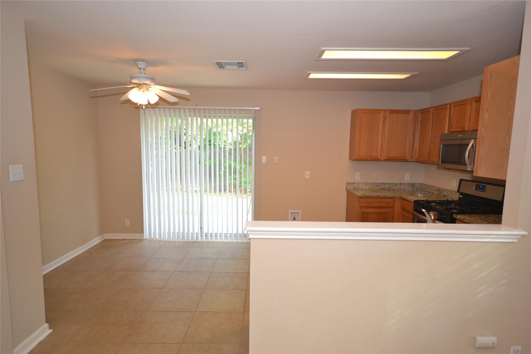 Nice 3-2 single story home. Granite countertops in kitchen. Stainless steel appliances. Extensive ceramic tile in living areas, baths, and kitchen/breakfast area. Faux wood blinds throughout. Walk to community pool and parks. Great value and location