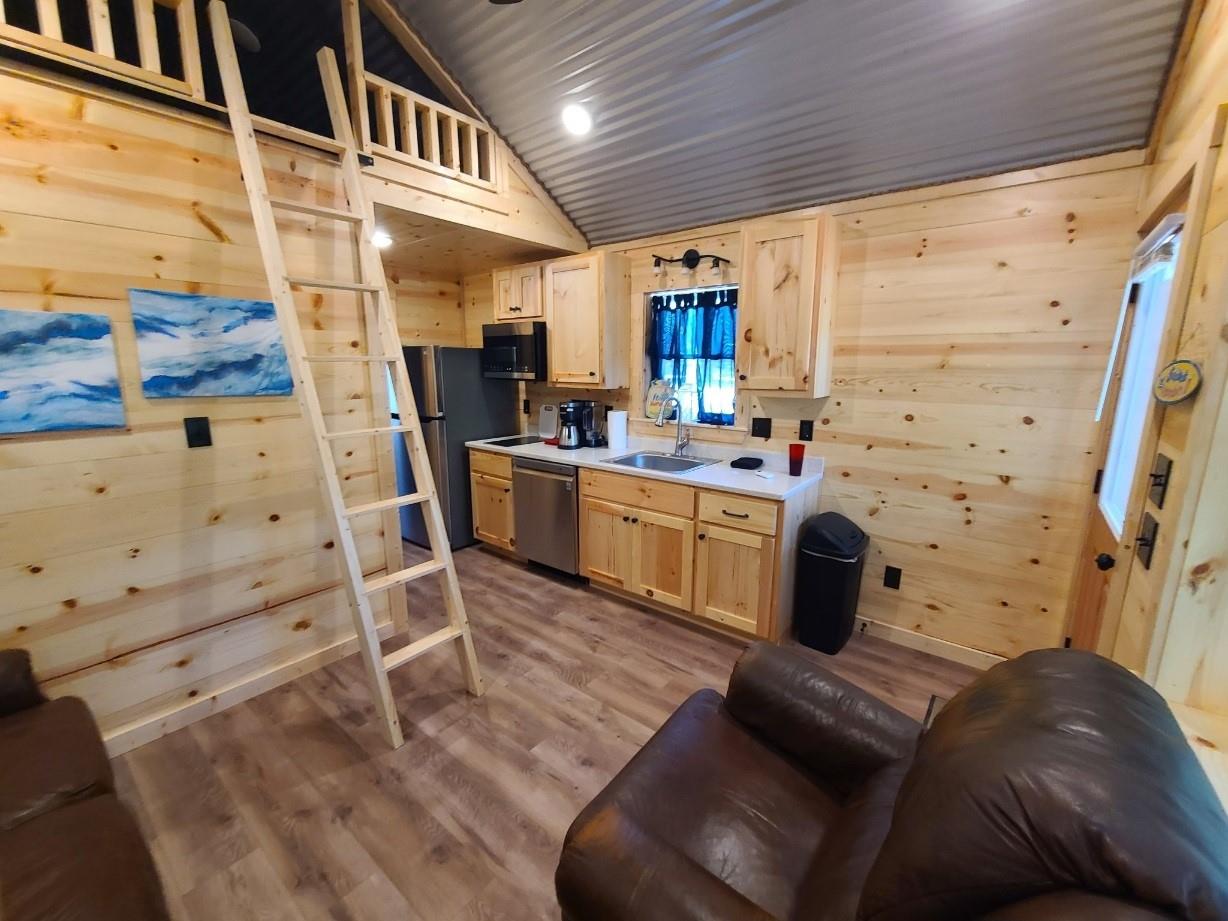 Fully furnished with all bills paid! Short term lease of 4 months or less. One bedroom tiny home at Soggy Dollar Camp. Overlooks Guadalupe River, access to Soggy Dollar activities and amenities. Tiny home has king bed, leather sofa in LR. Kitchen has 2-burner electric burner cooktop, dishwasher, fridge, microwave, coffee maker (NO oven). Cookware and utensils provided.