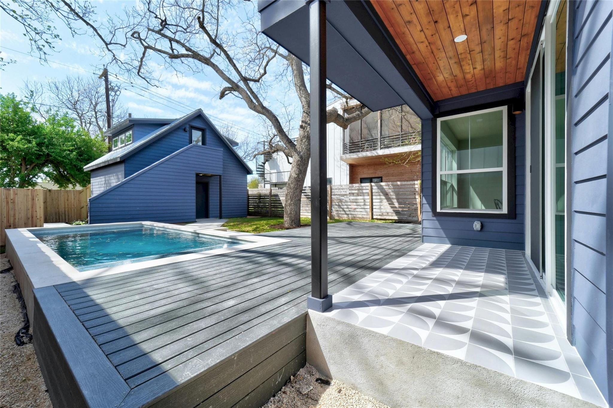 Introducing an extraordinary New Construction craftsman masterpiece in the coveted East Austin Holly neighborhood, just mere steps away from the shimmering Lady Bird Lake. Crafted with precision and elegance by local award-winning SLIC Design and Element 5 Architecture, the interior and exterior of this home exude a flawless fusion of style and practicality. This exceptional residence features a 4-bedroom, 3.5-bathroom main house with a single-car garage. As you enter, you're greeted by a sunlit open floorplan that bathes the home in warmth, inviting you to relax and unwind. Outside, a sprawling deck leads to the pool, setting the stage for memorable outdoor gatherings. A covered patio beckons you to savor backyard BBQs and tranquil evenings. Stroll through the backyard, past the sparkling pool and established Pecan Tree, to discover the charming 1-bedroom, 1-bathroom guest suite above the double-car garage. With its secluded alley entrance, this space offers a private haven for guests or a cozy living area. Complete with a connected 1-car garage and an additional detached 2-car garage at the back, this property offers ample parking and storage space. Nestled just two blocks from Lady Bird Lake, a stone's throw from Rainey St, and a short stroll from Cesar Chavez, this home boasts a prime Austin location that promises a lifestyle of ease and exhilaration. Seize the chance to claim this remarkable property as your own and embrace the essence of vibrant East Austin living.