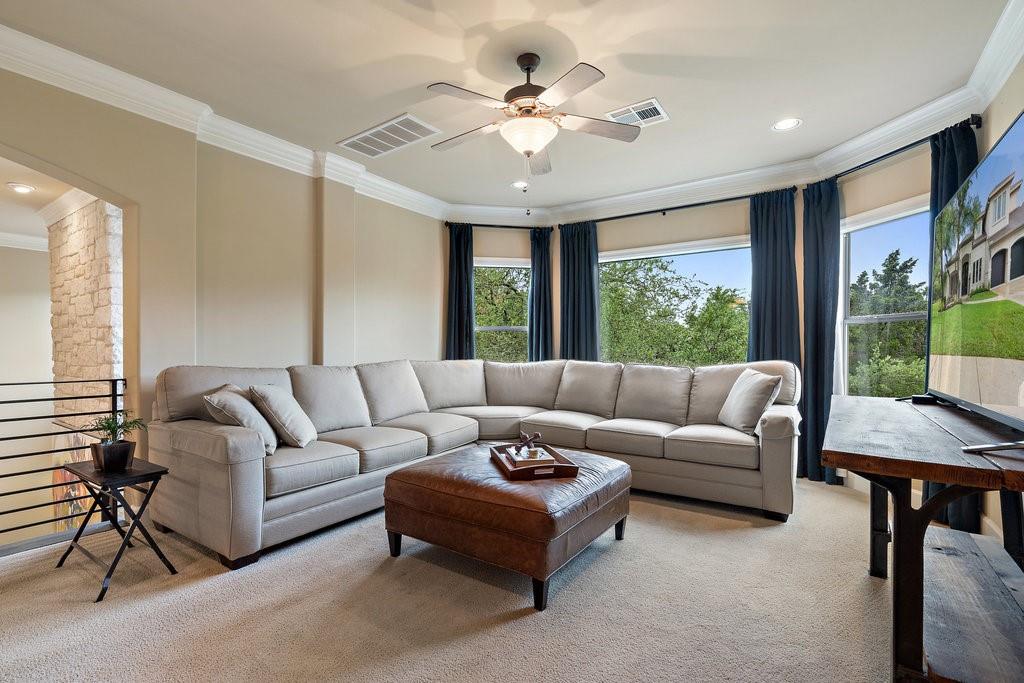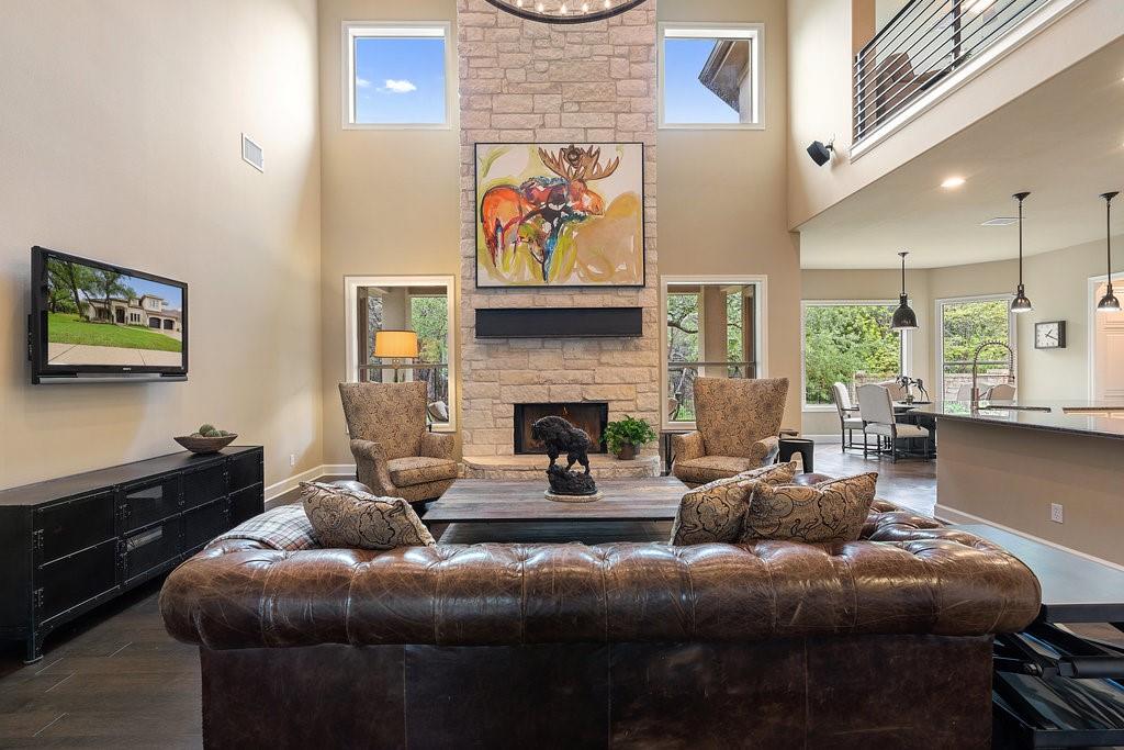 Welcome to 7808 West Rim nestled in the Canyon Rim section of Northwest Hills! It boasts a grand entry, massive 20 foot tall rock fireplace and great room, and an open and airy floorplan with 10-foot ceilings throughout. This home features 5 bedrooms (primary and guest on the main floor) and 4.5 bathrooms, a dedicated office, and 2 living areas. The big kitchen is open to the living area and features a gas cooktop, double oven and warmer and abundant cabinet and storage space. In addition, there is a bonus room upstairs that could be a 6th bedroom, a fun kid’s space under the stairway, and an oversized two-car garage with extra storage space. The home also has a new roof, exterior paint, and carpet. You’ll love the friendly neighbors in this community. The established landscaping and HOA owned lot adjacent to the home with mature oak trees add to the curb appeal outside. Gorgeous windows provide natural light throughout the day. Enjoy the backyard swing and large oak trees with rock wall privacy fencing. Adjacent to the Barrow Nature Preserve and HOA owned lots, this property offers the perfect escape for nature lovers, yet close to all that the city has to offer. Located minutes from Mopac and 360 which gives you easy access to Downtown, the Domain and Arboretum.This property is zoned for the highly sought-after Doss Elementary School, Murchison Middle School, and Anderson High School. Don’t miss the opportunity to make this one yours!