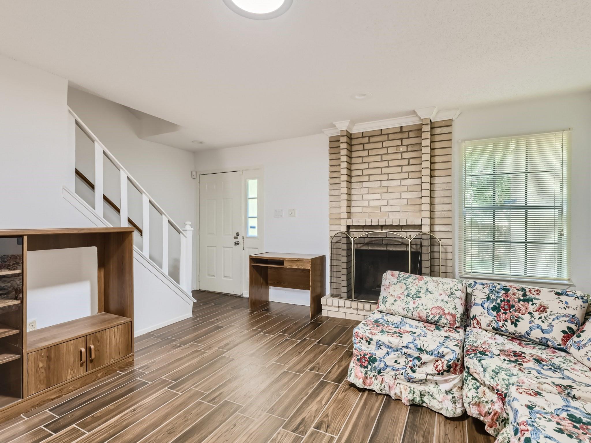 Beautiful two story, 1.5 bath Condo in a gated community with easy access to 183/Mo-Pac/360/I-35. Hardwood floor in bedrooms. Refrigerator and microwave are provided. The open concept design allows for seamless flow between the living, dining, and kitchen areas, creating a warm and inviting atmosphere. The Condo is equipped with ceiling fan in Master. Utility room has storage and washer/dryer in separate room off fenced patio. Two car Carport plus other parking. Landscaped patio. No smoking. Furniture in pictures can stay or we will remove. Front door faces walkway/no other homes. This unit is in the back of the property so there is less traffic!
