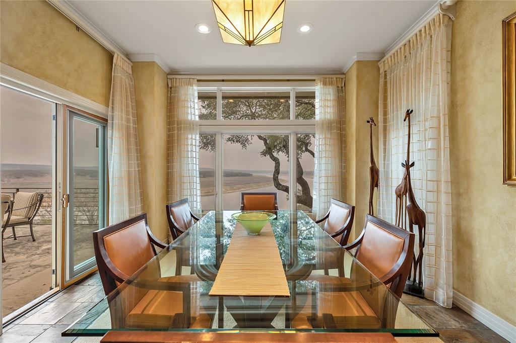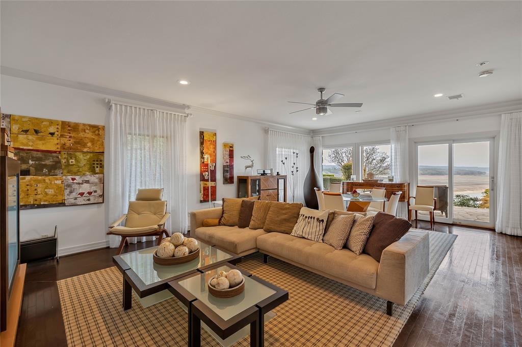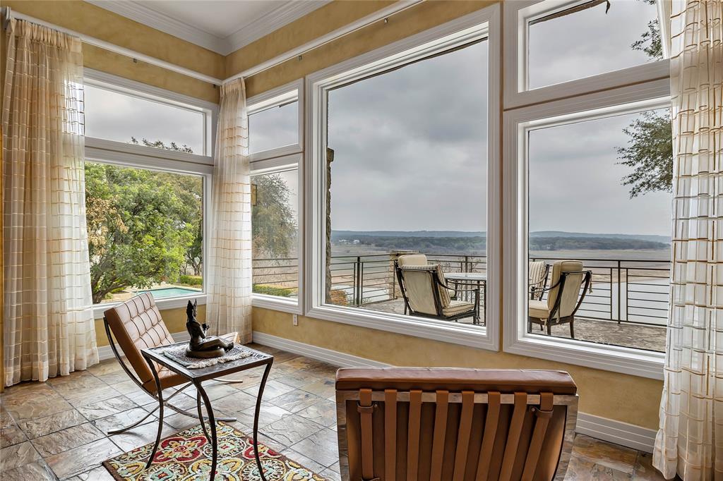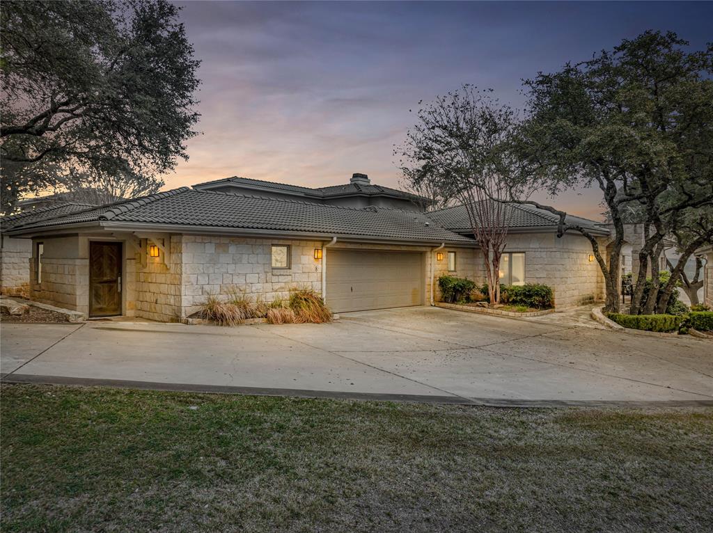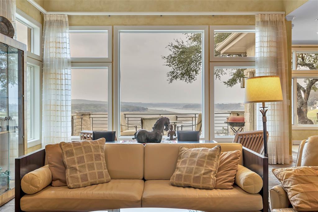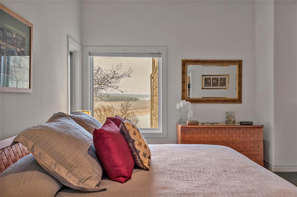 Take in the panoramic views of Lake Travis from your peninsula villa designed by renowned architect, Dick Clark. This beautifully designed home features breathtaking views from 2 separate living areas and 2 primary suites. Also included is a guest suite off the garage with a private entrance. Located lakeside that includes a boat slip with a lift in the prestigious private country club community of Barton Creek Lakeside. Available to residents is an Arnold Palmer golf course, fitness center, pool, tennis courts, and dining, all behind a 24-hour manned security gate. Included in the quarterly dues is all ground maintenance, trash pick-up, window and gutter cleaning, irrigation water, potable water, and pest control. One of only 9 villas in the community that is move-in ready and is the perfect lock-n-leave.