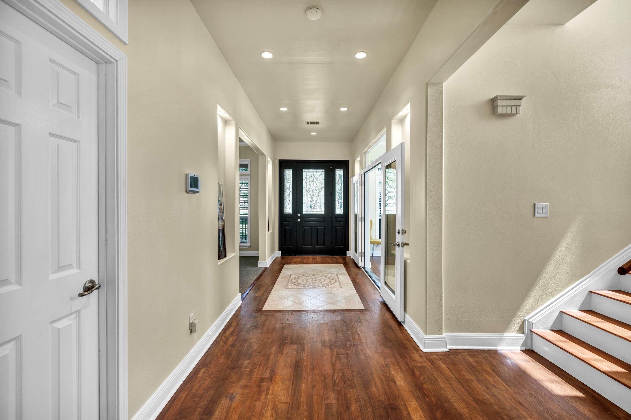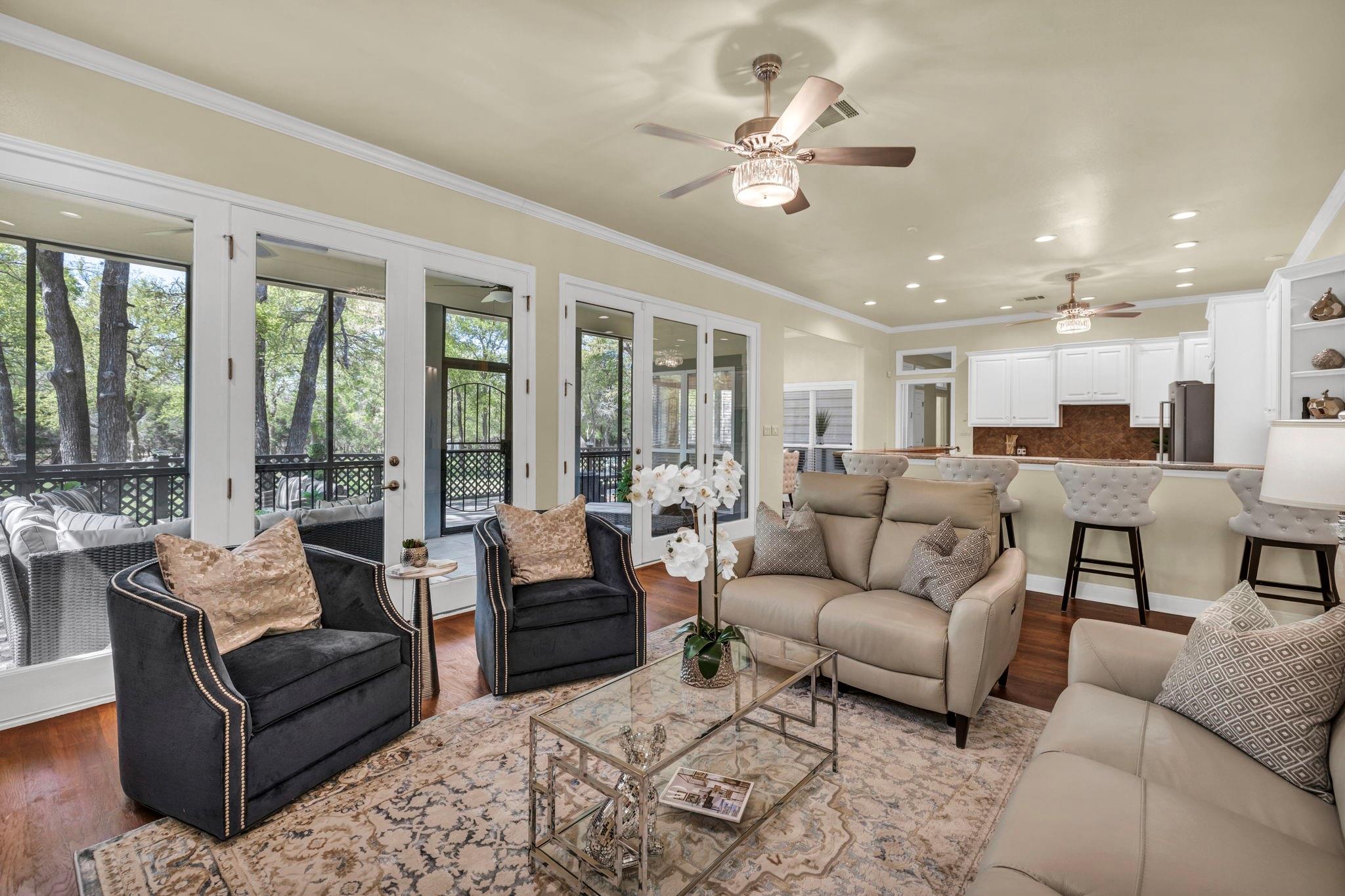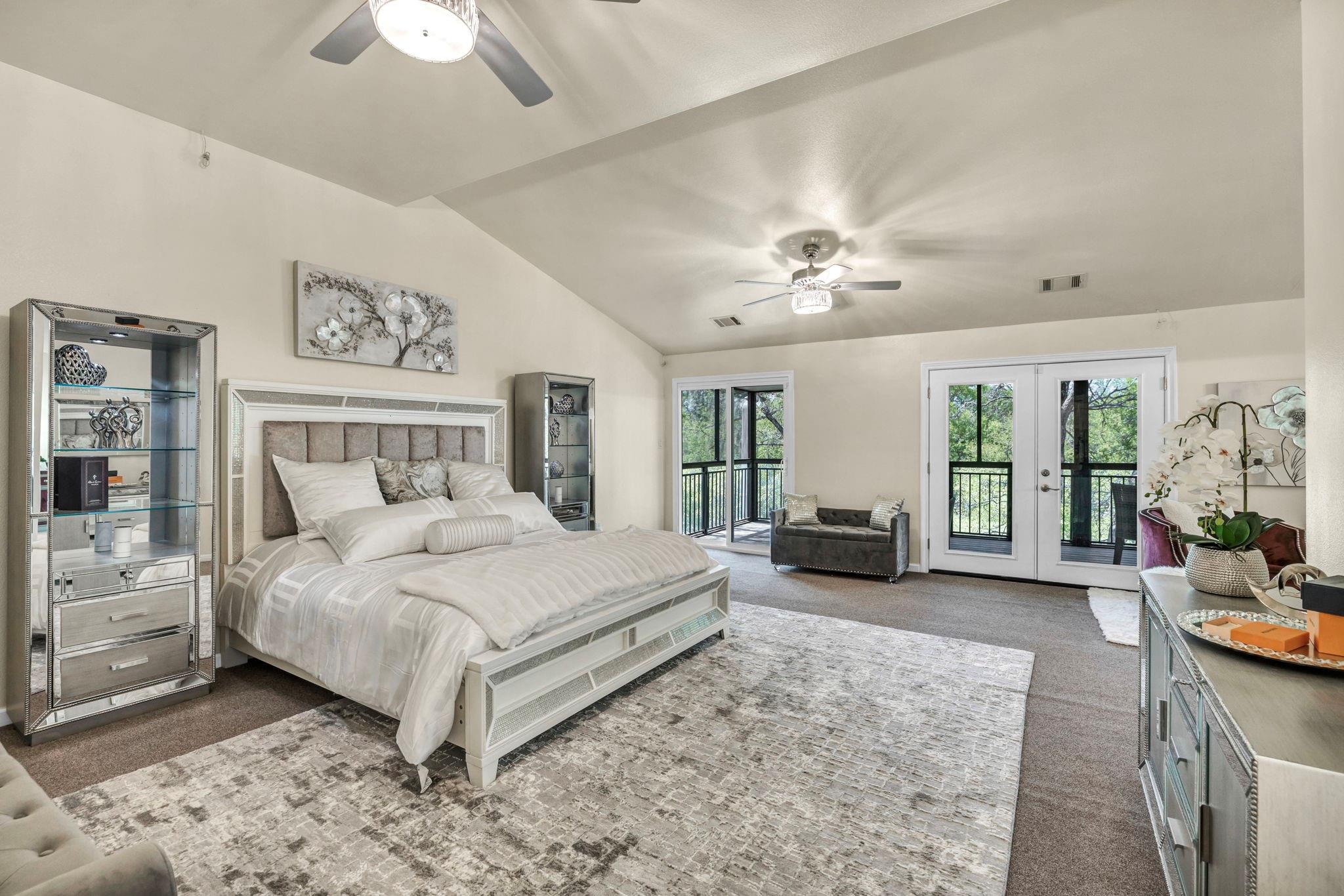 This custom Ruby Ranch home, updated in 2023, sits in a gated community just 23 miles from Austin, TX on over 4 acres. It boasts a traditional Texas vibe with a welcoming front porch, spacious living areas, and open floor plan. With 7 bedrooms, including one on the main level, and luxurious amenities like a primary suite with hill country views, this home offers elegance and functionality. Notable features include upgraded HVAC, smart security systems, 3 car garage and multiple outdoor spaces for relaxation. Updates in 2023 include an entertainment deck, bidets in all toilets, & chandeliers. Enjoy the serenity of the property with cleared paths for walking or ATV rides. Management contracts are in place for HVAC, pest control, and security. Located in Buda, TX, just south of Austin, it offers residents the best of both worlds: close proximity to the vibrant culture and opportunities of the state capital while maintaining its own unique charm. Buda maintains a warm small-town ambiance, even as it continues to gain popularity and grow. This is evident through the friendly neighbors, local businesses, and community-focused events that contribute to its welcoming atmosphere. With numerous parks, trails, and green spaces, outdoor enthusiasts can explore nature and enjoy recreational activities right in their backyard. Buda has an abundance of outdoor attractions to enjoy. In fact, Buda has such a high percentage of parkland that it was named “The Outdoor Capital of Texas” by the Texas State Legislature. In total, Buda has 13 parks across 268 acres of public parkland. Buda’s economy is on the rise, fueled by a diverse range of industries contributing to job growth and economic stability. Yet, amidst this growth, the community spirit remains strong. Residents actively participate in local events, festivals, and volunteer opportunities. Buda offers a desirable blend of convenience, outdoor recreation, and community spirit that makes it an ideal place to call home.