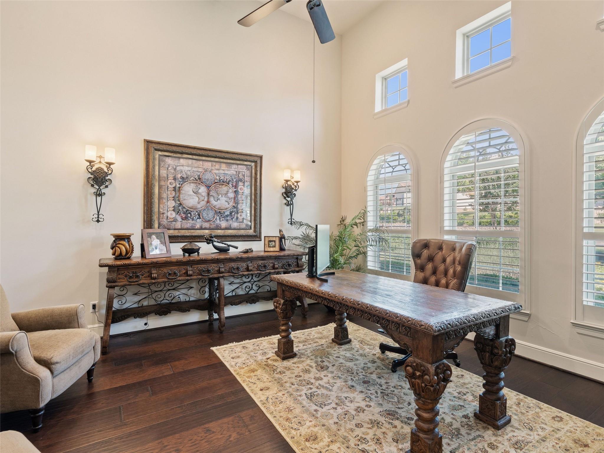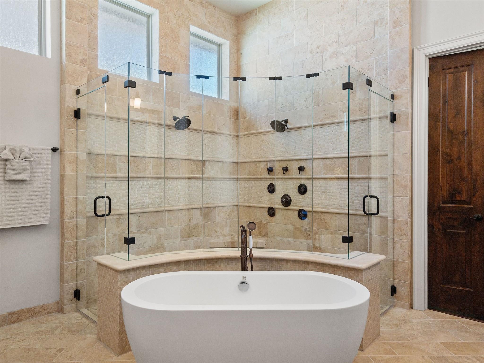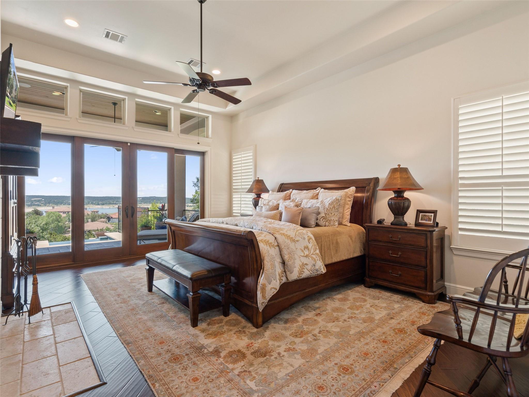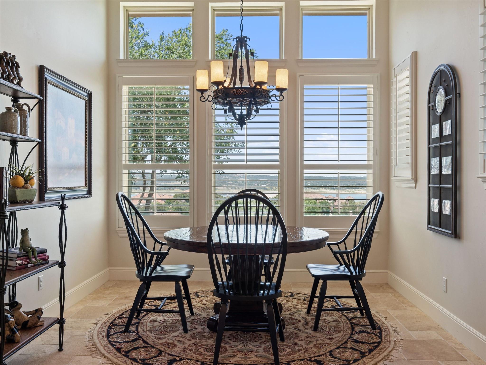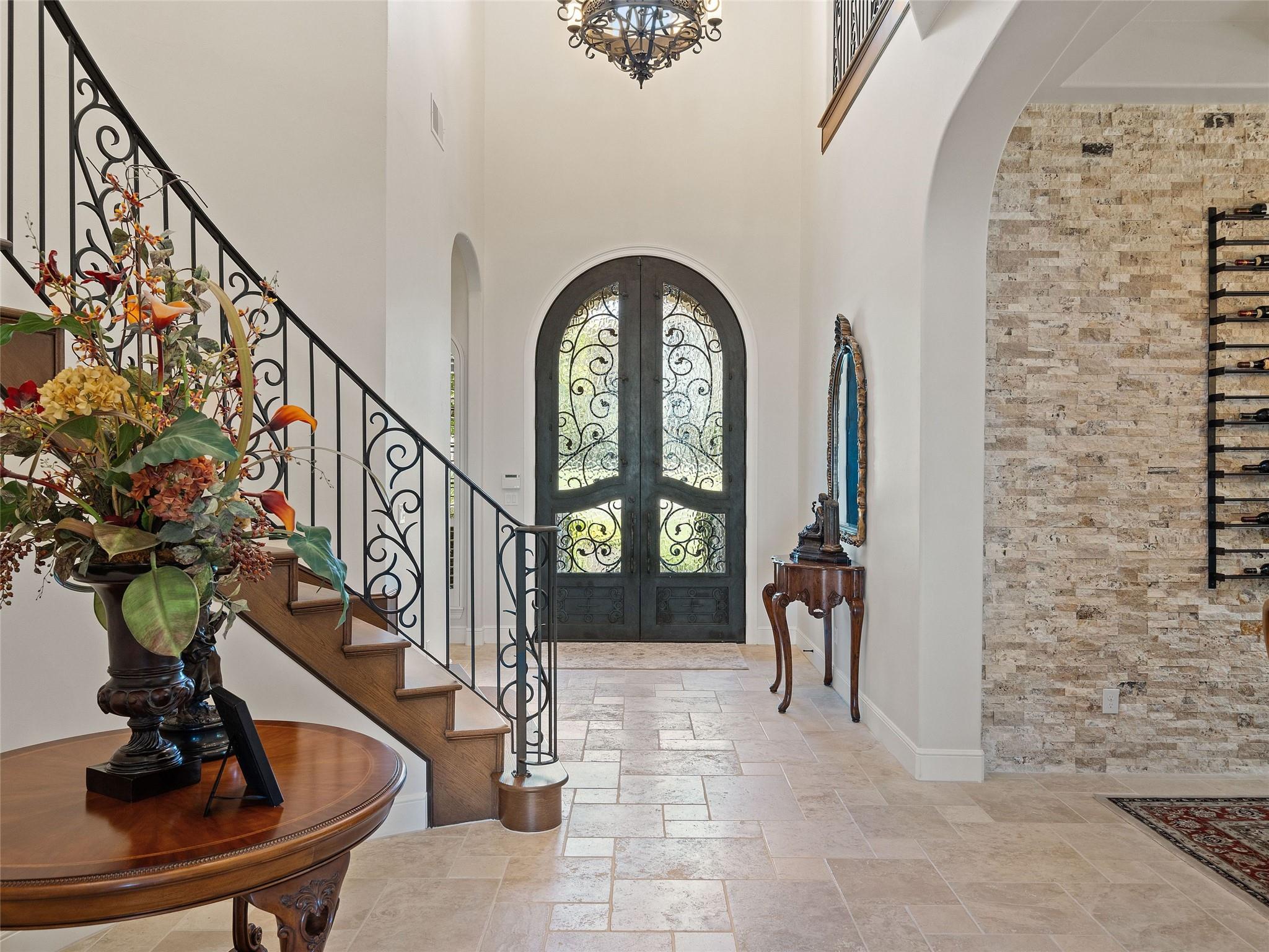 Welcome to your own slice of luxury lake view living in the exclusive gated neighborhood of the Enclave at Rough Hollow overlooking Lago Vista on Lake Travis. This stunning 5,158 square foot home boasts timeless elegance at every turn. Thoughtfully situated on one of the largest lots in Rough Hollow, (1.679 acres), the wooded back yard and lake views are stunning. The gorgeous gas lanterns and massive Cantera door entry invite you and your guests into this beautiful home with a 2-story foyer and sweeping staircase. The residence features 4 beds, 4 full baths, 2 half baths, media room, separate dining room with an amazing custom stone wine display, 2 spacious living areas, gourmet kitchen, and a private office. The flooring is hardwood and tile throughout, with only the media room being carpeted. This immaculate home is filled with natural light, an abundance of storage, an oversized 3-car garage, and a full bar upstairs for entertaining. The single garage was specifically built for boat storage. The sunset views of Lake Travis over the resort style infinity pool are extraordinary. The inviting firepit below the pool area and the full outdoor kitchen provides a peaceful place for family and friends to gather. Enjoy wildlife and greenbelt/lake views all from the serene setting of your own personal sanctuary. There is even a fenced yard for your favorite pet. The location is great, approximately 35 minutes to AUS airport, close to HEB, shopping/dining and in top-rated school district of Lake Travis ISD. The HOA amenities offered are incredible, yacht club/marina, lazy river/pool, hiking trails, fitness center, complimentary kayak/standup paddleboards, community events and Canyon Grille for delicious dining with a view! You may dock your boat at the marina or Freedom Boat club offers valet boating for a fabulous day on the lake.