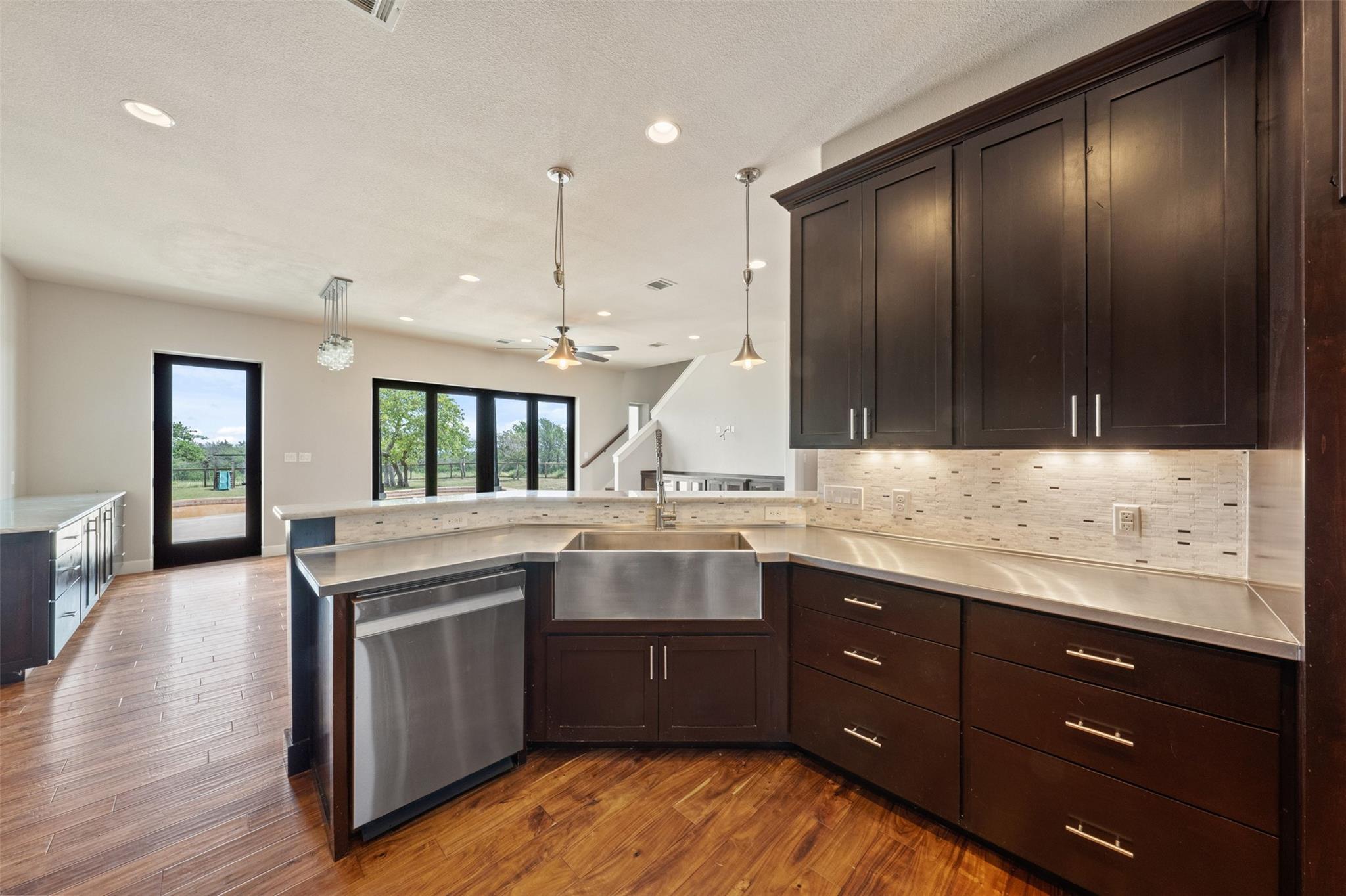 Welcome to your own slice of paradise nestled in the heart of Burnet County, in Briggs, Texas. This sprawling ranch is 123.07+/-acres of rolling hills, offering a blend of wooded areas and open land, great for the wildlife. Explore the ranch of fenced and cross-fenced terrain, complete with three ponds. This contemporary style home has entertaining in mind. 3 bedrooms 3 full baths, open concept living with built-ins, large kitchen with all the storage and prep space you could ever need, room for multiple people to work in the kitchen at the same time. Large master bath, walk in closet. There are extensive windows and slider doors to the exterior, bringing the outside light in. Take your ATV and tour the outdoors. Set on the back porch and entertain and enjoy BBQs by the swimming pool. Take in the wildlife and enjoy dramatic sunsets across the hills.