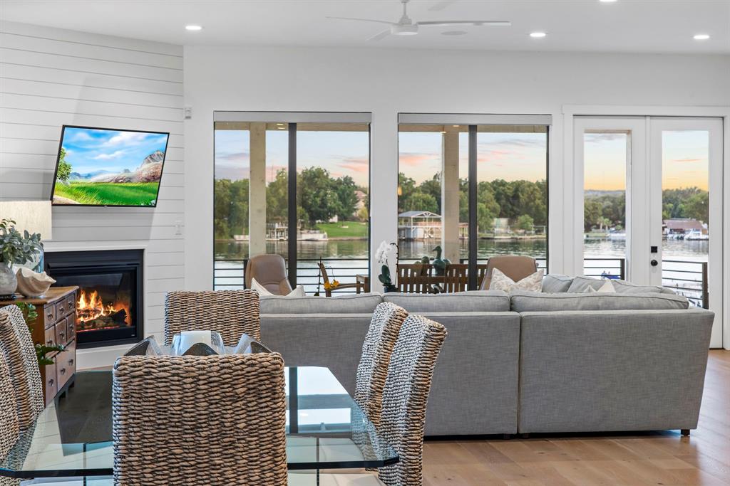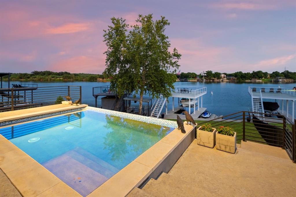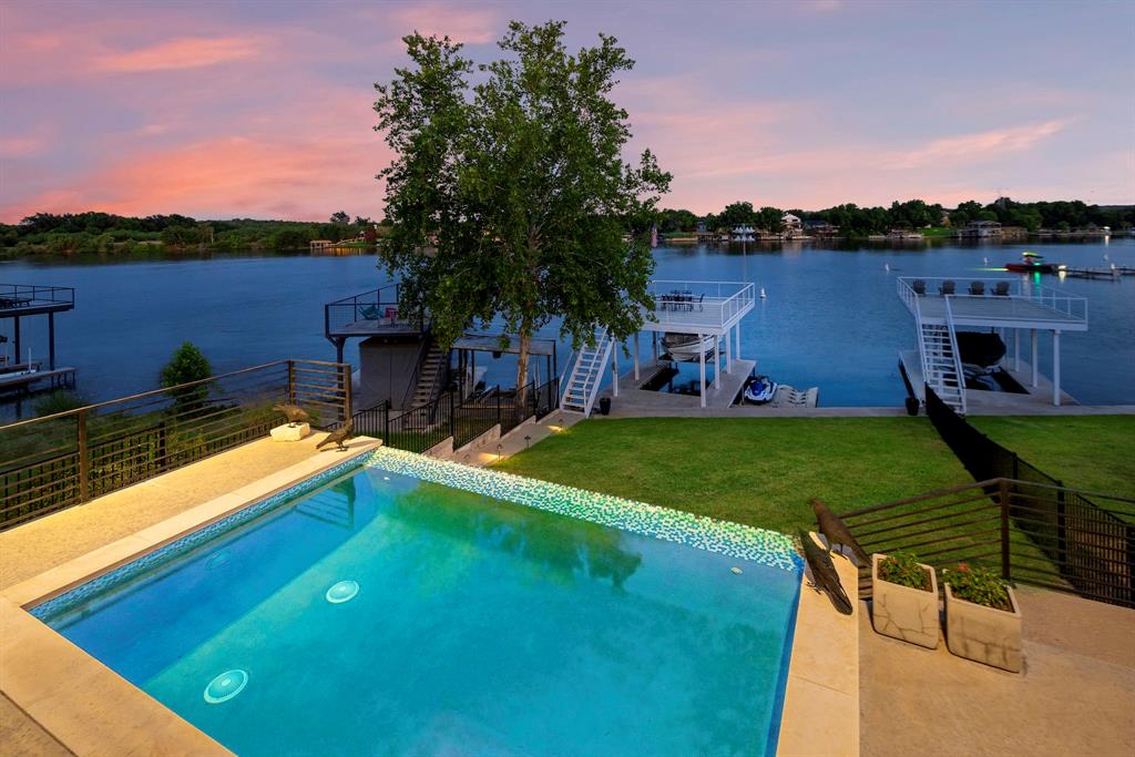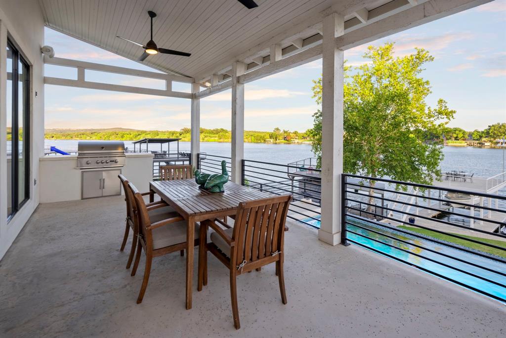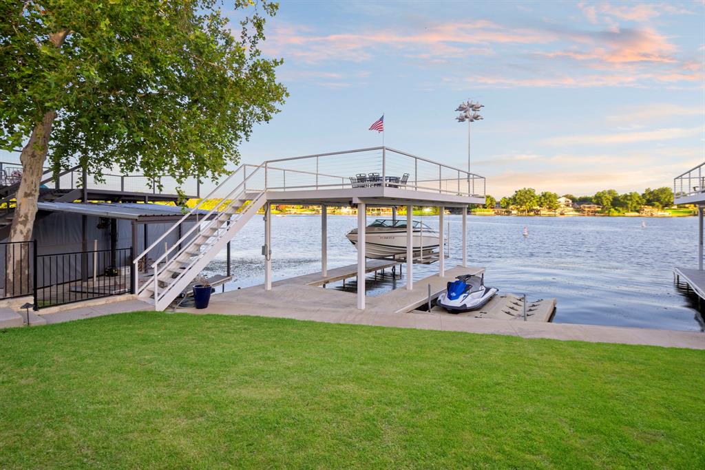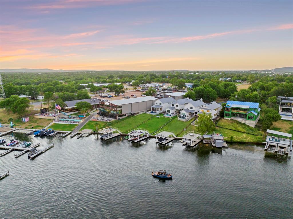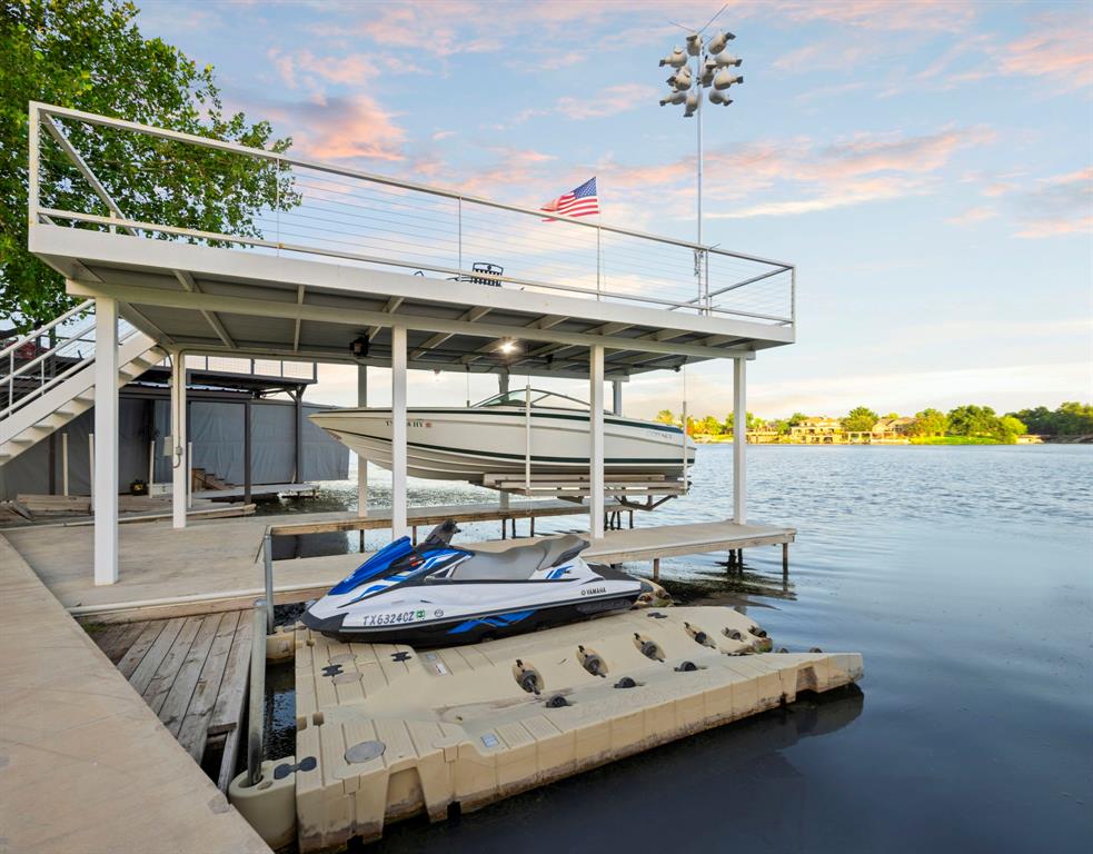 At 1322 Euel Moore, you'll find a stunning lakefront property situated on the beautiful shores of Lake LBJ. With its prime location on open water, this home offers sweeping views as you enjoy the refreshing southern breeze and the tranquility of the water. This property includes a universal boat cradle, two personal water craft slips, and a party deck above the dock, creating the perfect setting for entertaining or simply unwinding. As you step inside, you'll be greeted by soaring ceilings and charming shiplap accents that infuse the home with a warm and inviting atmosphere. The first floor primary suite ensures a private, relaxing retreat. Upstairs, you'll find three additional bedrooms, as well as a spacious family/bunk room, and three full bathrooms. The open living, dining, and kitchen provide a seamless flow, making it easy to enjoy time with loved ones while taking in the scenic lake views through the large windows. Throughout you'll find thoughtful upgrades that add both style and functionality to this already delightful lakefront abode. With a perfect location, desirable amenities, walking distance to Boat Town, plus an excellent short term rental opportunity, you can embrace the lake house you've always wanted.
