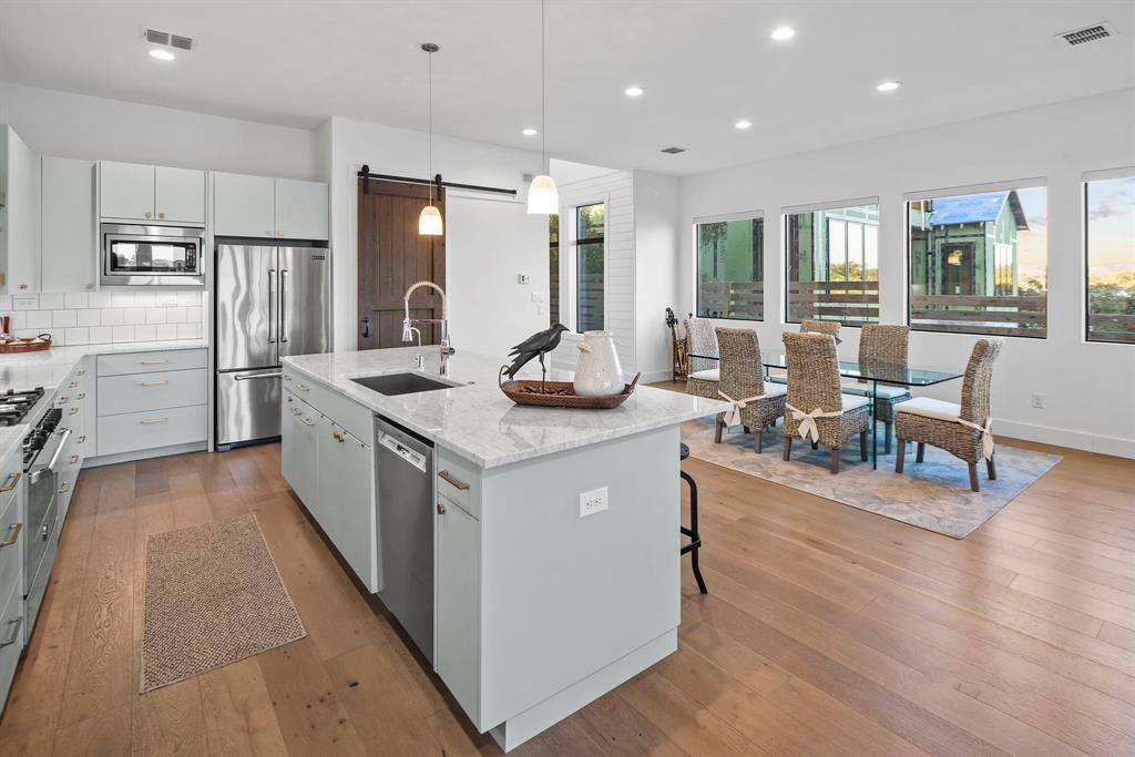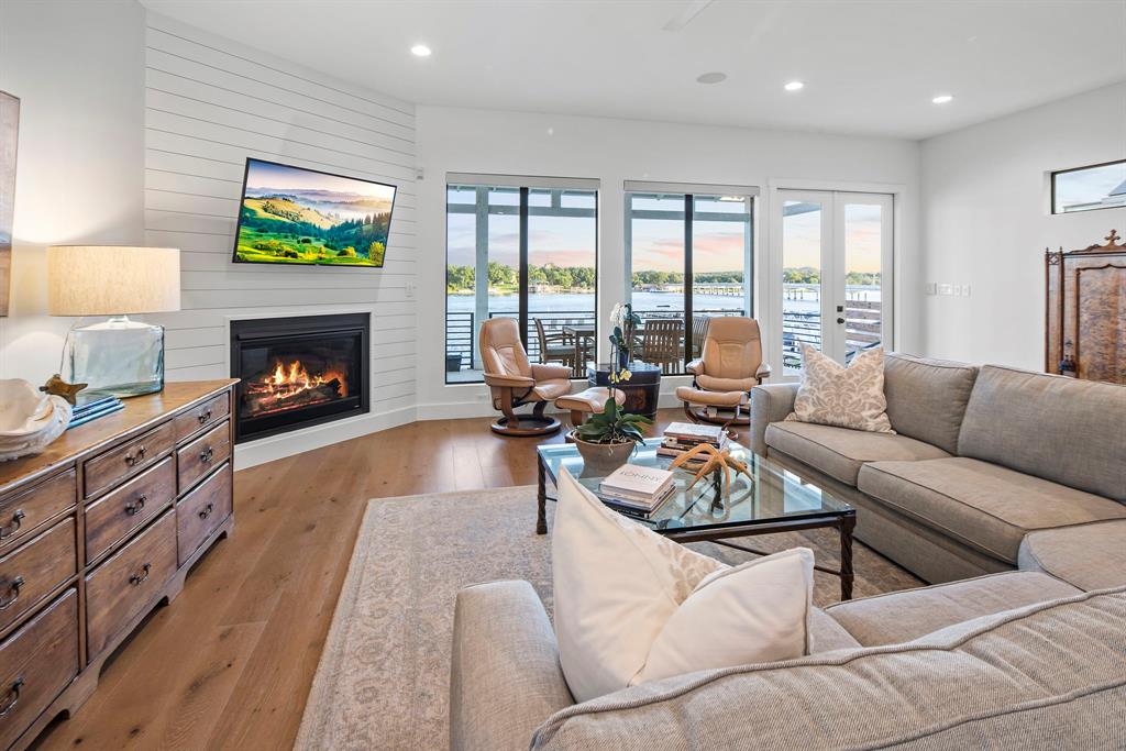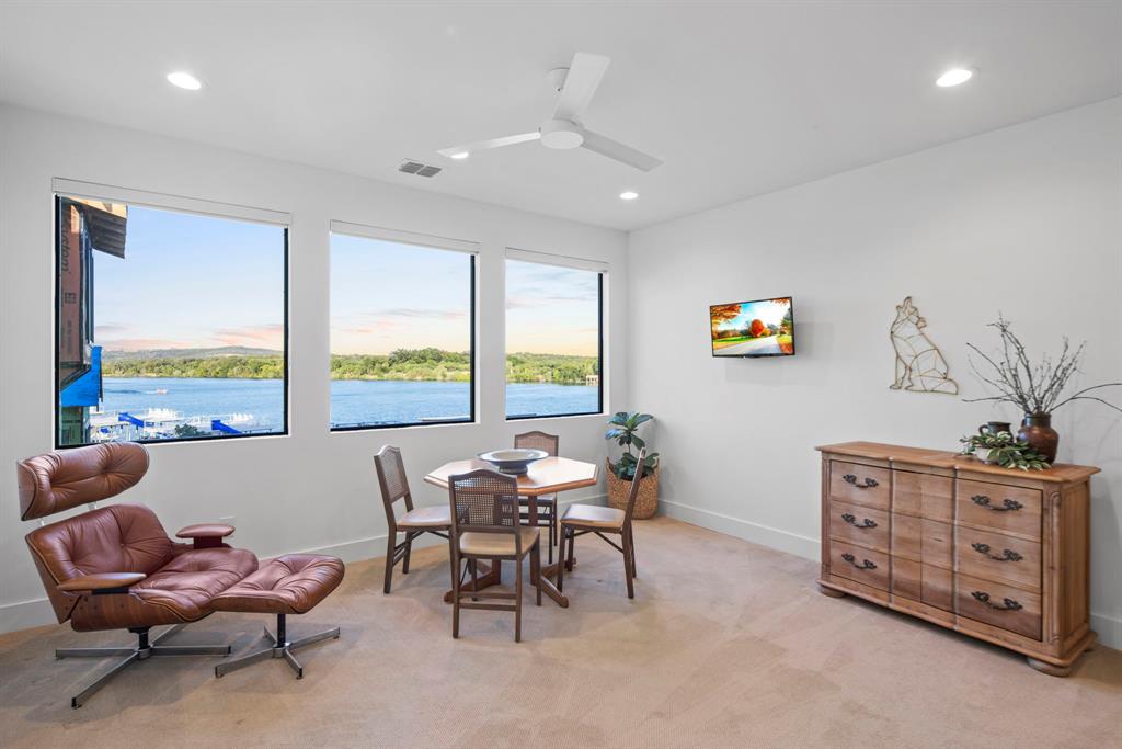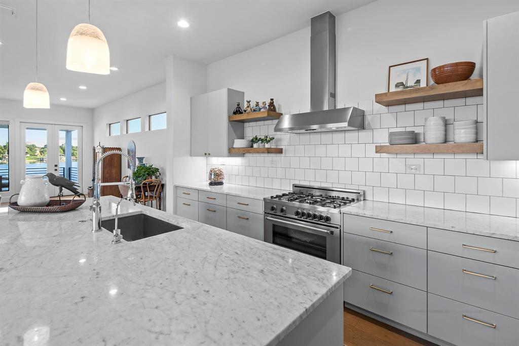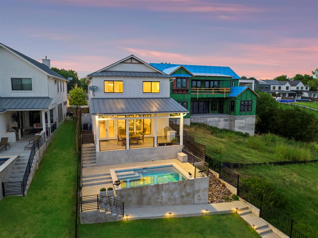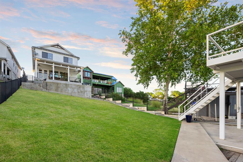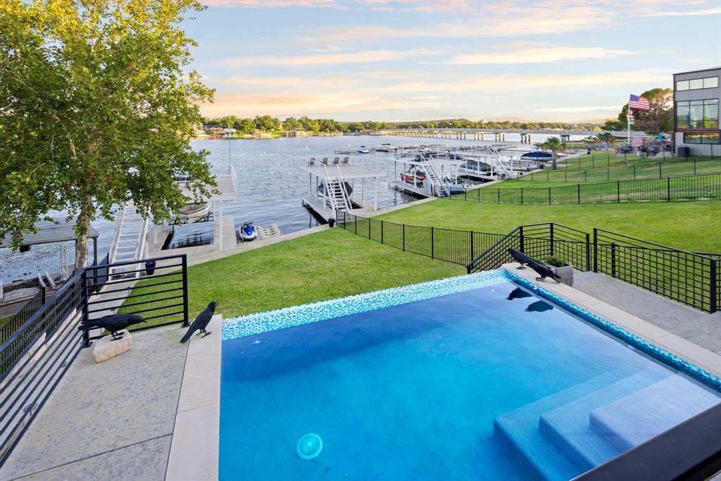 At 1322 Euel Moore, you'll find a stunning lakefront property situated on the beautiful shores of Lake LBJ. With its prime location on open water, this home offers sweeping views as you enjoy the refreshing southern breeze and the tranquility of the water. This property includes a universal boat cradle, two personal water craft slips, and a party deck above the dock, creating the perfect setting for entertaining or simply unwinding. As you step inside, you'll be greeted by soaring ceilings and charming shiplap accents that infuse the home with a warm and inviting atmosphere. The first floor primary suite ensures a private, relaxing retreat. Upstairs, you'll find three additional bedrooms, as well as a spacious family/bunk room, and three full bathrooms. The open living, dining, and kitchen provide a seamless flow, making it easy to enjoy time with loved ones while taking in the scenic lake views through the large windows. Throughout you'll find thoughtful upgrades that add both style and functionality to this already delightful lakefront abode. With a perfect location, desirable amenities, walking distance to Boat Town, plus an excellent short term rental opportunity, you can embrace the lake house you've always wanted.