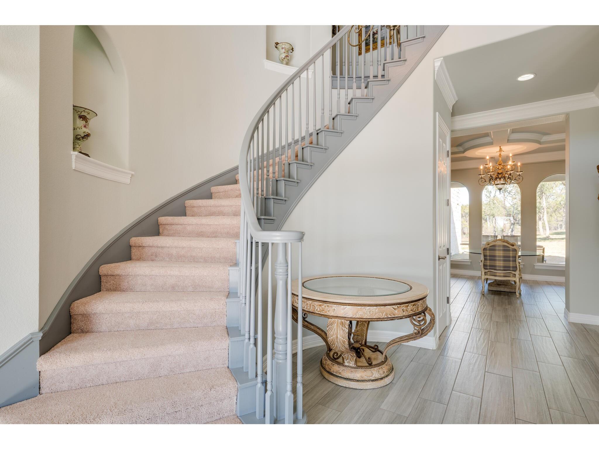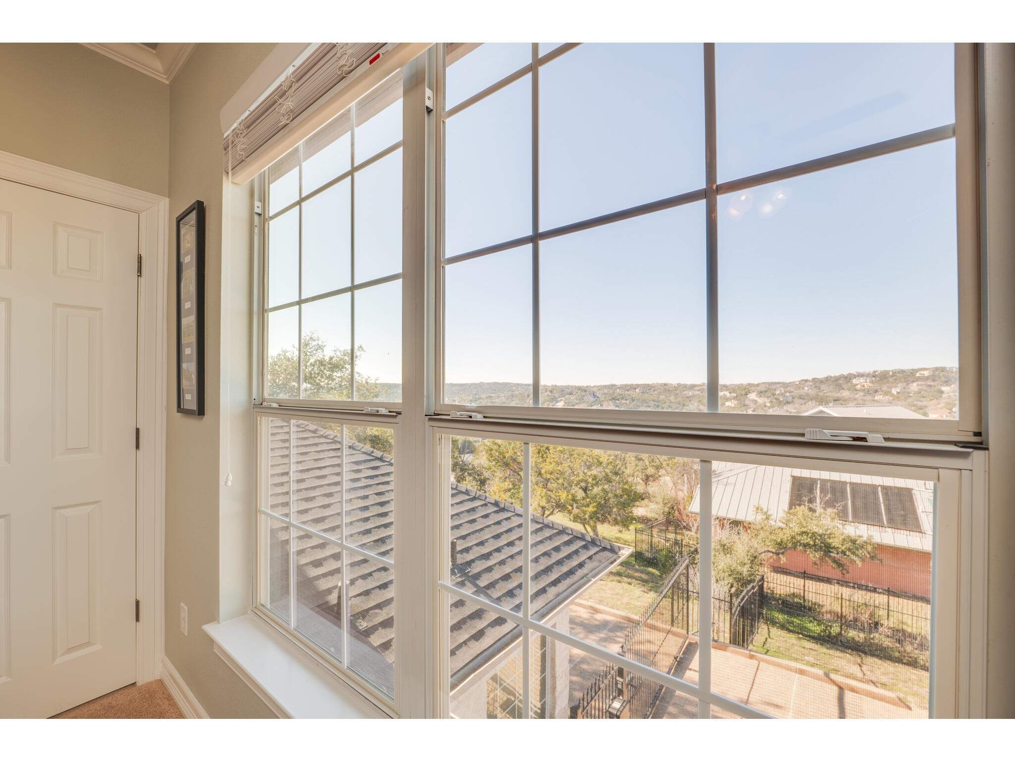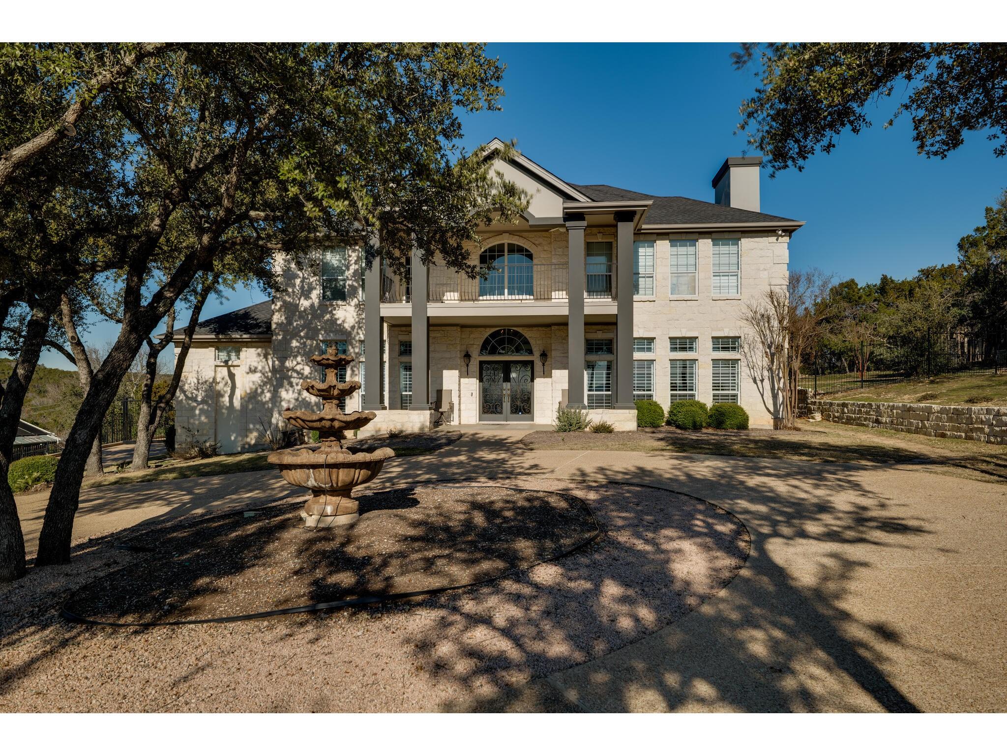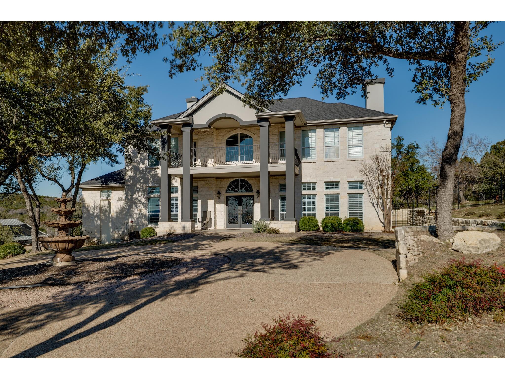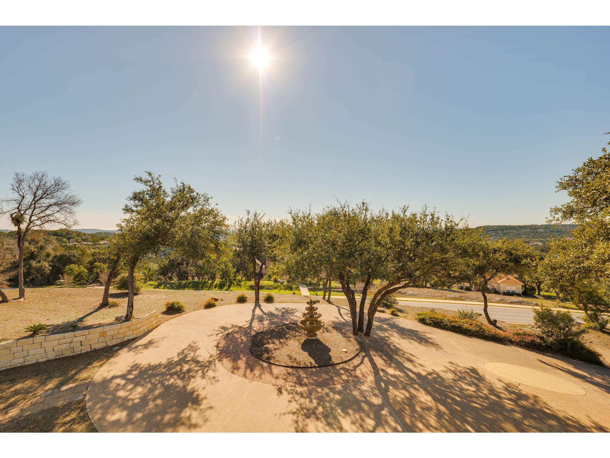 Gorgeous Hill Country views from most rooms. Circular drive & 3 car side entry garage, fire pit. Wonderful private yard and grounds. Soaring 2 story ceilings w/ beautiful detail. Front door opens into impressive sweeping curved staircase. Natural light from walls of windows showcasing views. Beautifully updated master suite, raised ceiling, frameless shower, gorgeous granite countertops. Upstirs also has an enormous second master suite. Back yard is enormous and has several locations for a massive pool.
