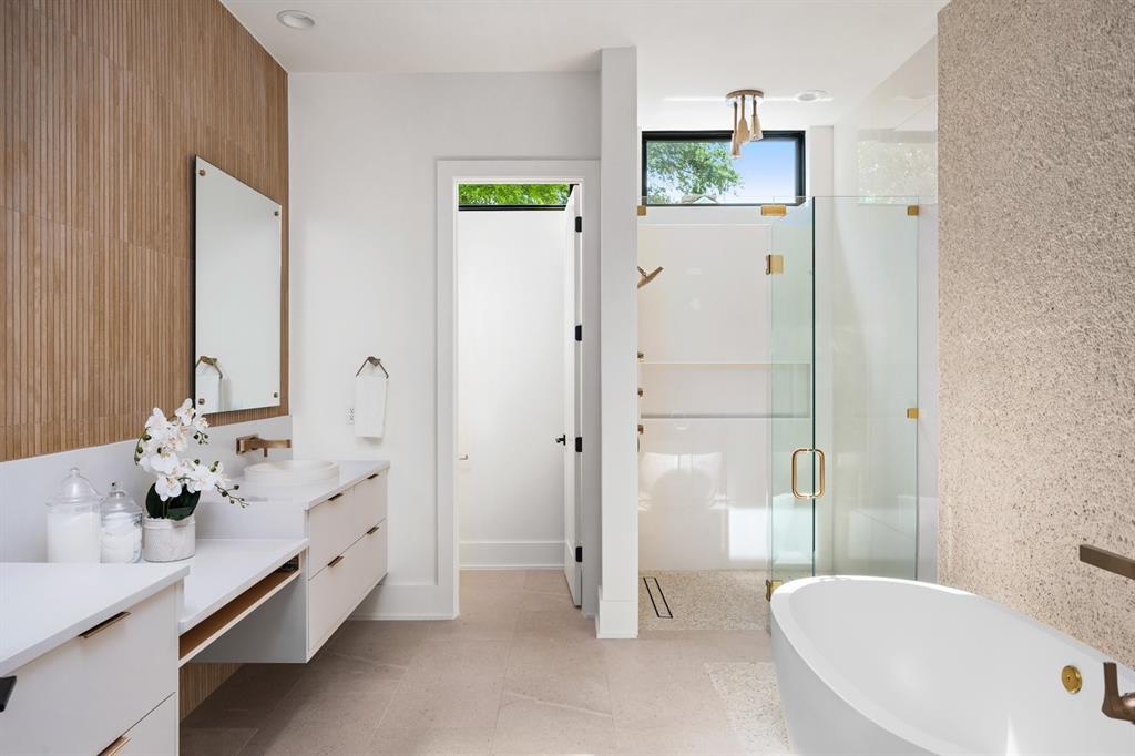 Paradisa Homes is excited to bring to market an unparalleled and exquisite ultra-luxury property with unobstructed downtown views, located in the heart of Zilker. This stunning property features a private gated entrance, offering a sense of exclusivity and security. Upon entering, the magnificent living space boasts an open floor plan that perfectly blends indoor and outdoor living. The expansive outdoor area features a full bathroom, a lavish cabana with a built-in kitchen, perfect for lounging, and entertaining, artificial turf, a large, heated pool, and a spa with a waterfall edge. Adjacent to the cabana is a cozy firepit, ideal for gatherings with friends and family. Head upstairs to enjoy the media room which is the ultimate space for movie nights or catching up on your favorite shows, complete with a wet bar to enjoy your favorite drinks. Retreat to the rooftop terrace where you’ll have front-row views of the iconic downtown Austin skyline. The interior of the property is equally impressive, with a gourmet chef’s kitchen and a thoughtfully designed butler pantry with a separate vegetable fridge, ice maker, dishwasher, and wine fridge that adds to the property's luxurious feel, perfect for hosting lavish dinner parties. Not to be outdone by the rest of the home, the private primary suite has its own private access to the outdoor living with a gorgeous view of the pool’s waterfall. As you would expect, the primary bath rivals most resorts is flanked with calming design selections while creating a functional space. Full intelligent home automation, pre-wired for surround sound, exterior security cameras, Cat6 ethernet wiring, and security. Built to maximize the home's efficiency with foam insulation in the exterior walls, garage, and batt insulation in all interior walls. Other green features include a highly efficient HVAC system with Aprilaie (fresh air intake), tankless hot water, automatic irrigation with a bubbler for plants, and a complete gutter system.