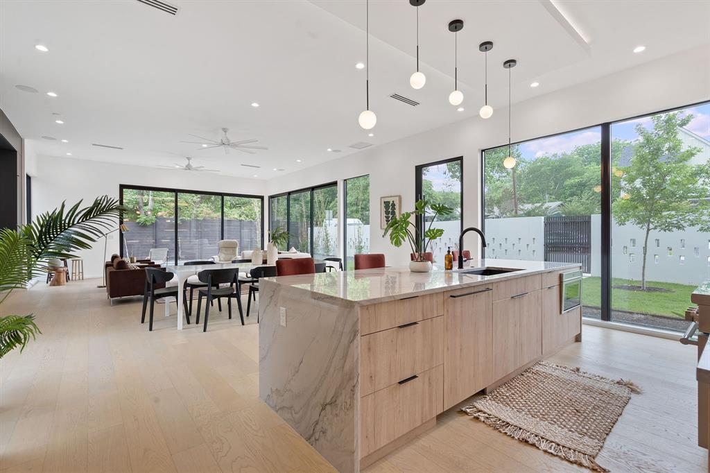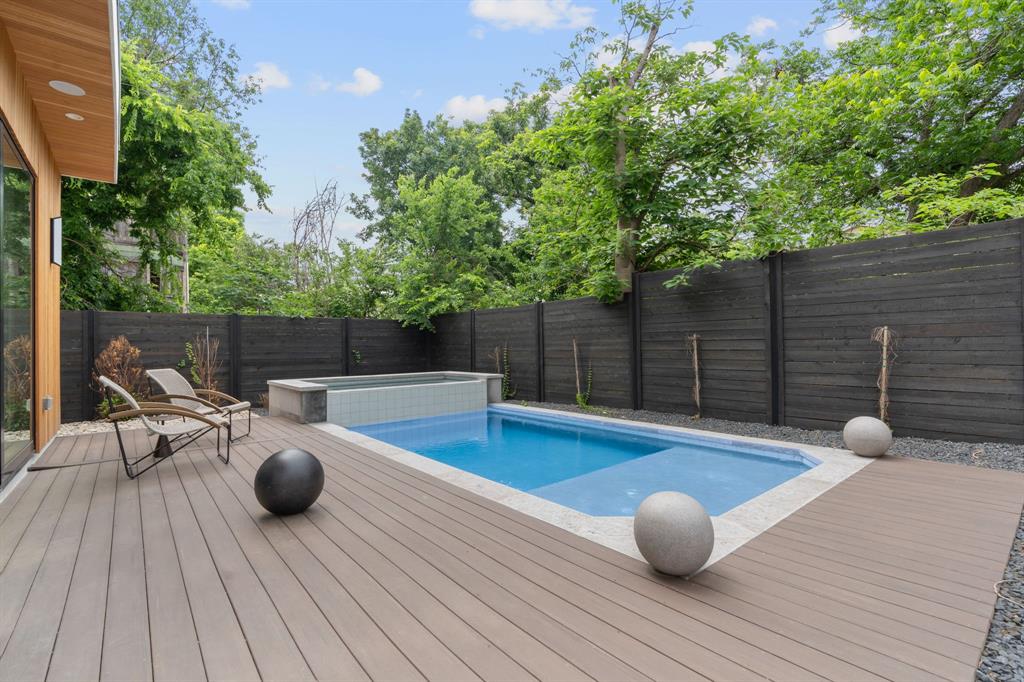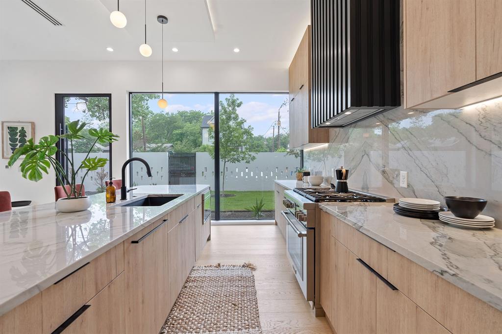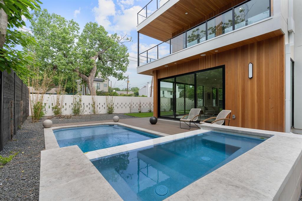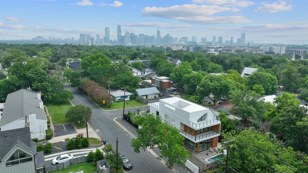 Welcome to a modern oasis in the heart of the sought-after Zilker neighborhood. Highline Homes presents to you a breathtaking 3-story new construction home that boasts impeccable craftsmanship and sweeping skyline views. As you approach, the striking combination of hemlock wood siding, clean stucco, and big aluminum windows instantly captivates. The five walk-out external balconies allow you to take in stunning views and fresh air from multiple vantage points. Upon entering, you're greeted with spectacular floor-to-ceiling windows that fill the home with natural light. The open-concept design effortlessly flows between the kitchen, dining, and living area. Luxury abounds with bespoke finishes throughout. The kitchen is a chef's dream with floor-to-ceiling storage, a sizable center island, Thermador appliances, and marble countertops. Retractable aluminum sliding doors in the living area create a seamless indoor-outdoor living experience, enhancing the atmosphere and making it perfect for entertaining. Opening up to the outdoor space, the oasis-like backyard features a spacious yard, pool, and spa, leaving nothing more to be desired. The main level features a mudroom with built-ins and a large half bath off the kitchen for convenience. Just up the staircase to the second level, the primary bedroom awaits, complete with a private balcony offering stunning city views. The en-suite bathroom boasts a marble walk-in shower, Brizo plumbing, and a spacious walk-in closet. Two additional bedrooms share a balcony with views of the backyard and outdoor areas. The third level is a versatile space that can be used as an extra entertaining space, guest quarters, or a stunning home office. With access to a huge patio with the best views of downtown, storage closets, and a full bathroom, this level has everything you need. This home is the epitome of urban living, situated just moments away from Downtown, Lady Bird Lake, Zilker Park, and the South Congress district.