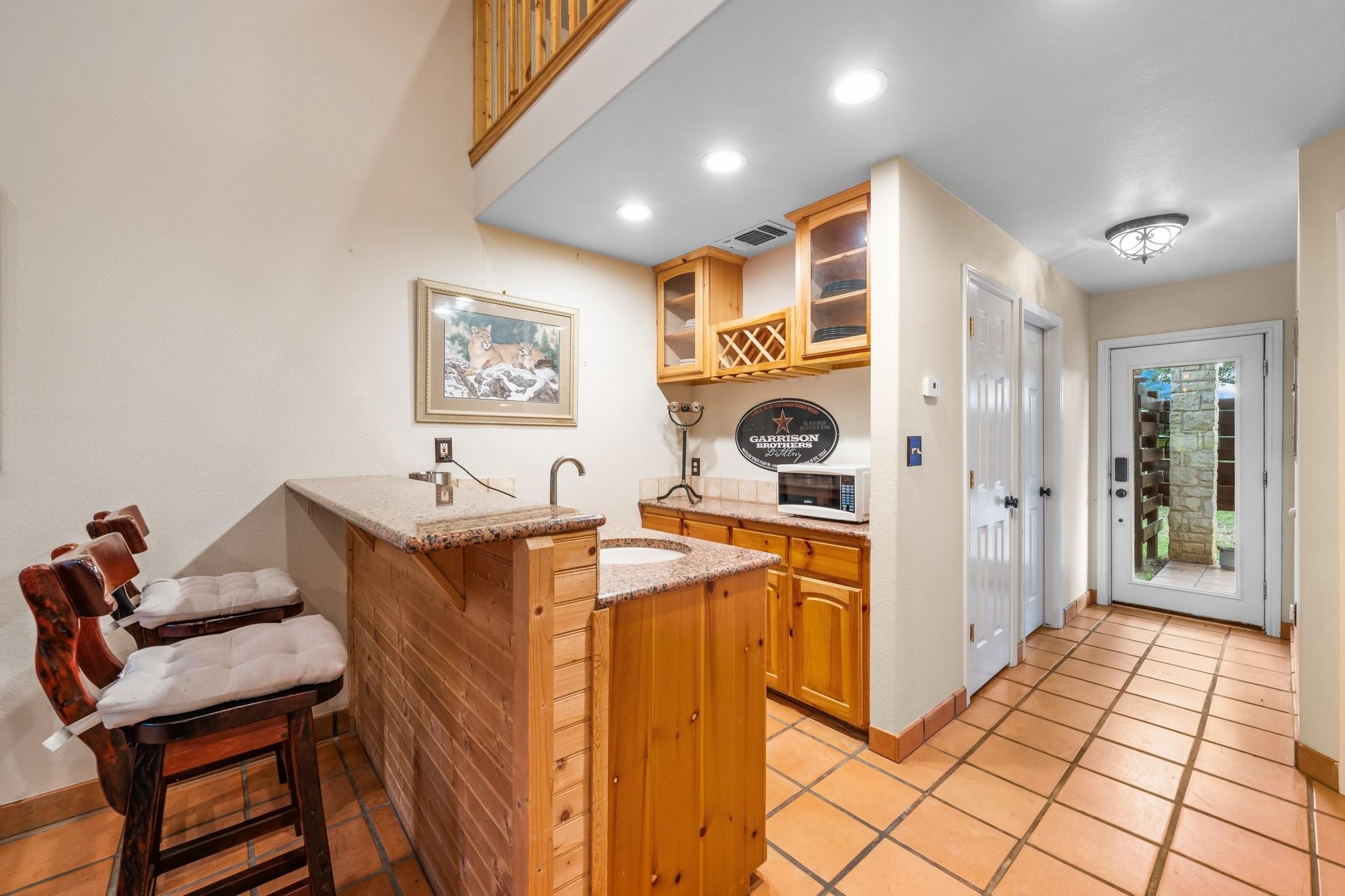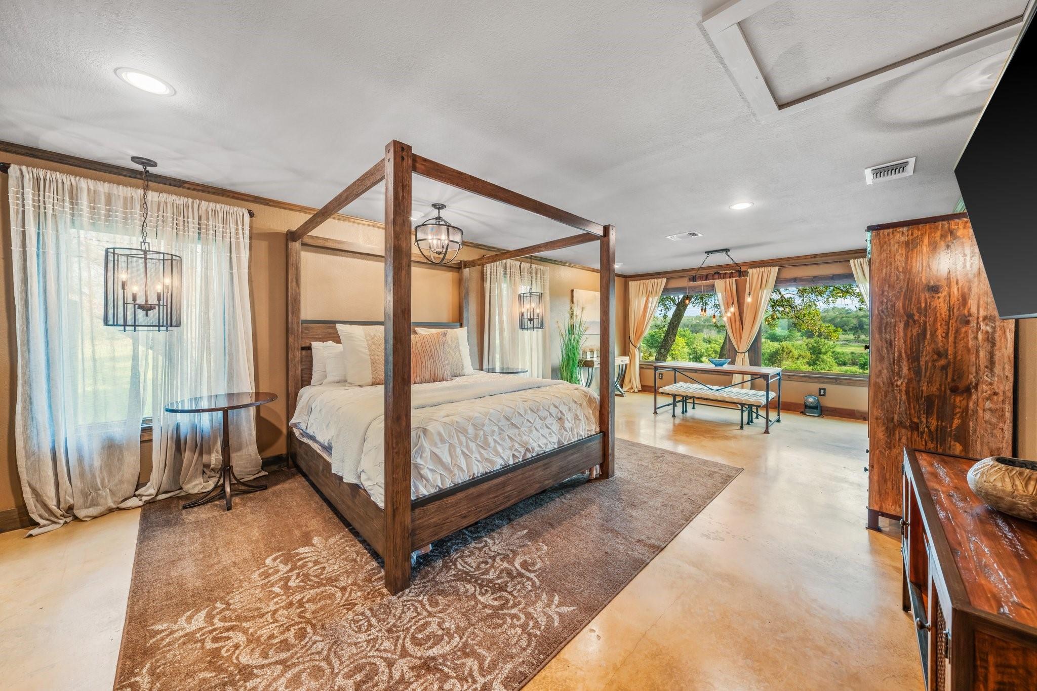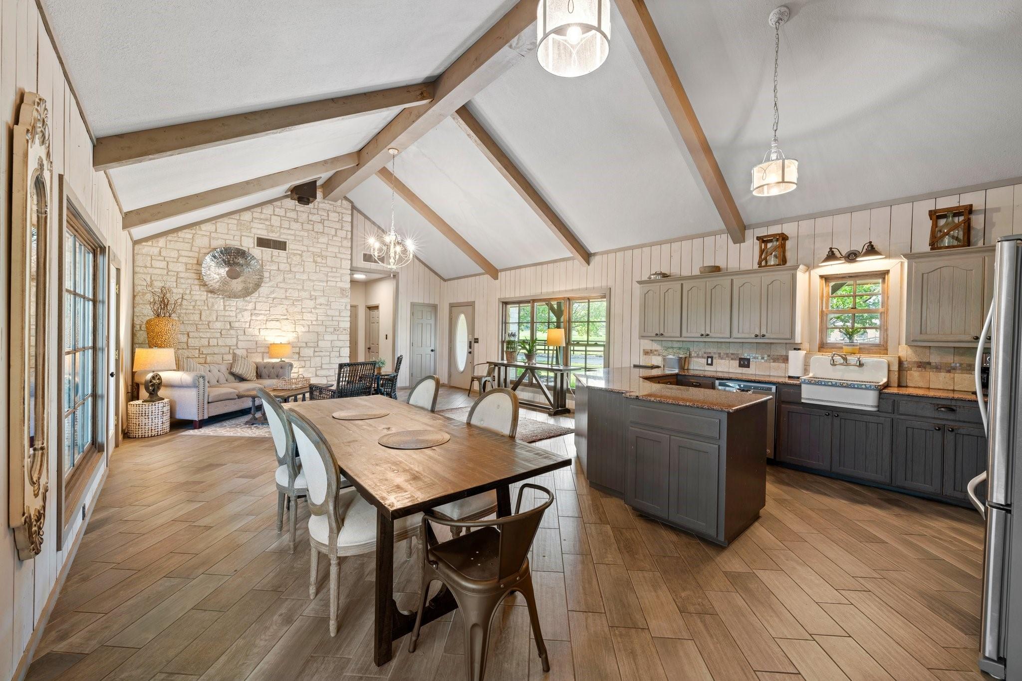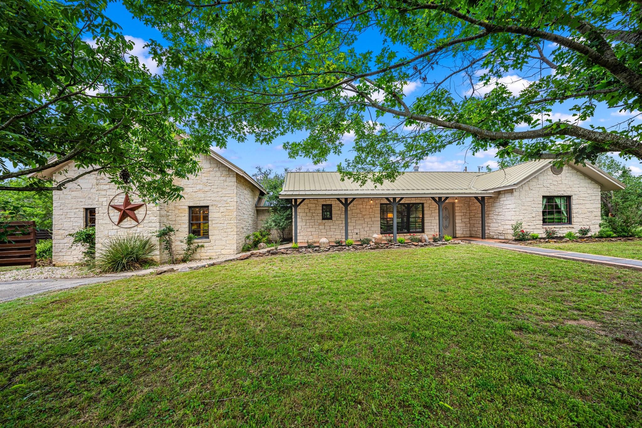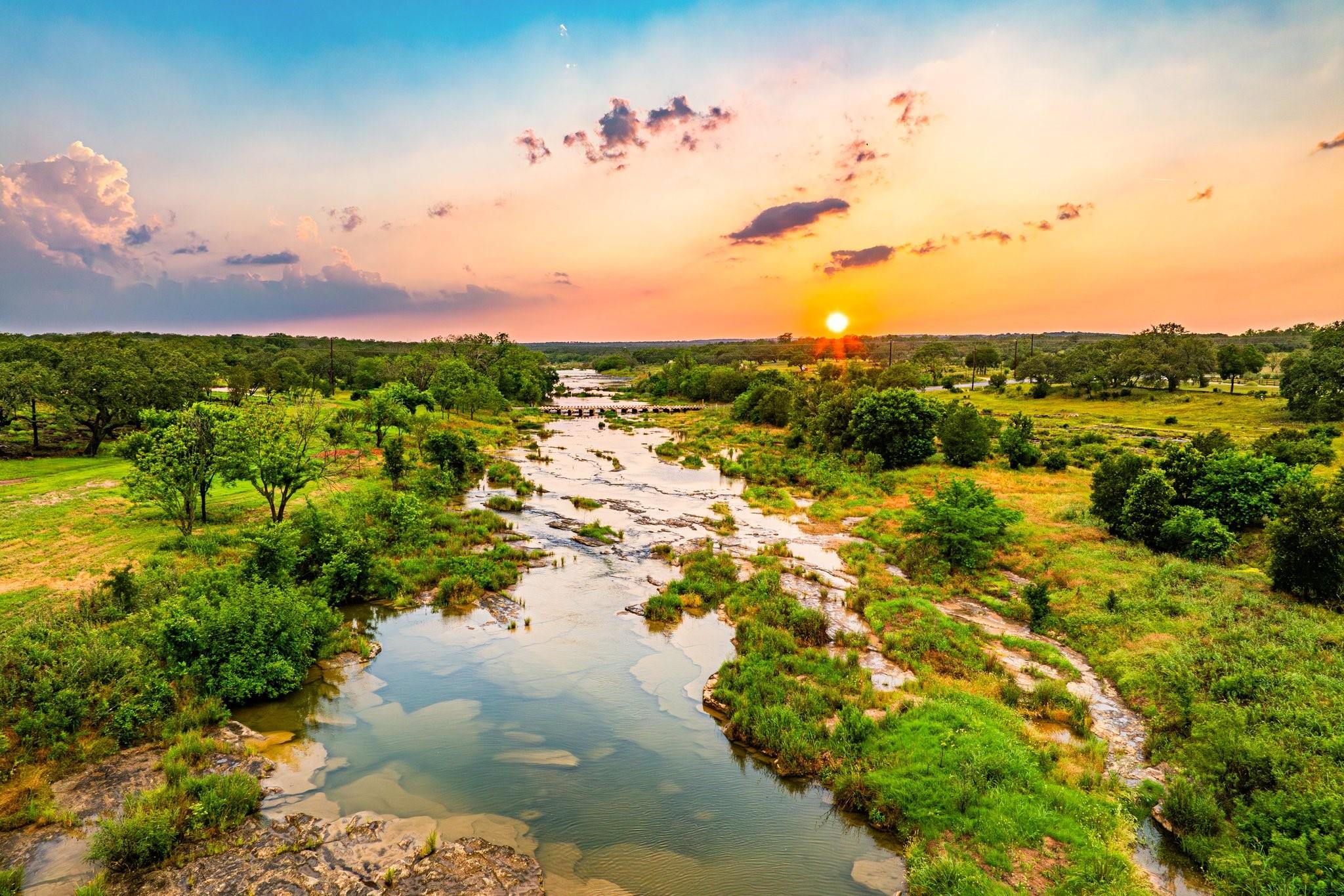 The King River Ranch is a 25-acre one-of-a-kind sanctuary with endless potential. With approximately 1,100ft of Pedernales river frontage in the Heart of Wine Country, it makes an ideal location for various businesses including a wedding venue, winery, short-term rental, or dream waterfront ranch. Previously operating as a 5-star world class wedding venue, it was selected as one of the 'Hottest New Venues in The World' by the Venue Report. Located 20 minutes from Fredericksburg and 1 hour from Austin or San Antonio. Multiple homes and structures encompass the estate, as well as a 2,600 sqft flagstone terrace on the banks of the river, and a 2,500 sqft flower/working barn. The 4 BD/3 BA main house features 3,175 sqft with 2 living areas, wet bar, fireplace, and screened-in porch overlooking the river. Guest quarters include a detached bridal suite with kitchenette, full bath, salon, and dressing area. The 4,000 sqft fully insulated/climate-controlled pine barn sits on a 1/2-acre pond, includes a caterer's prep kitchen, open cocktail terrace, and 2 public bathrooms for guests. With its unrivaled beauty and abundant opportunities, The King River Ranch stands a canvas upon which dreams are realized.