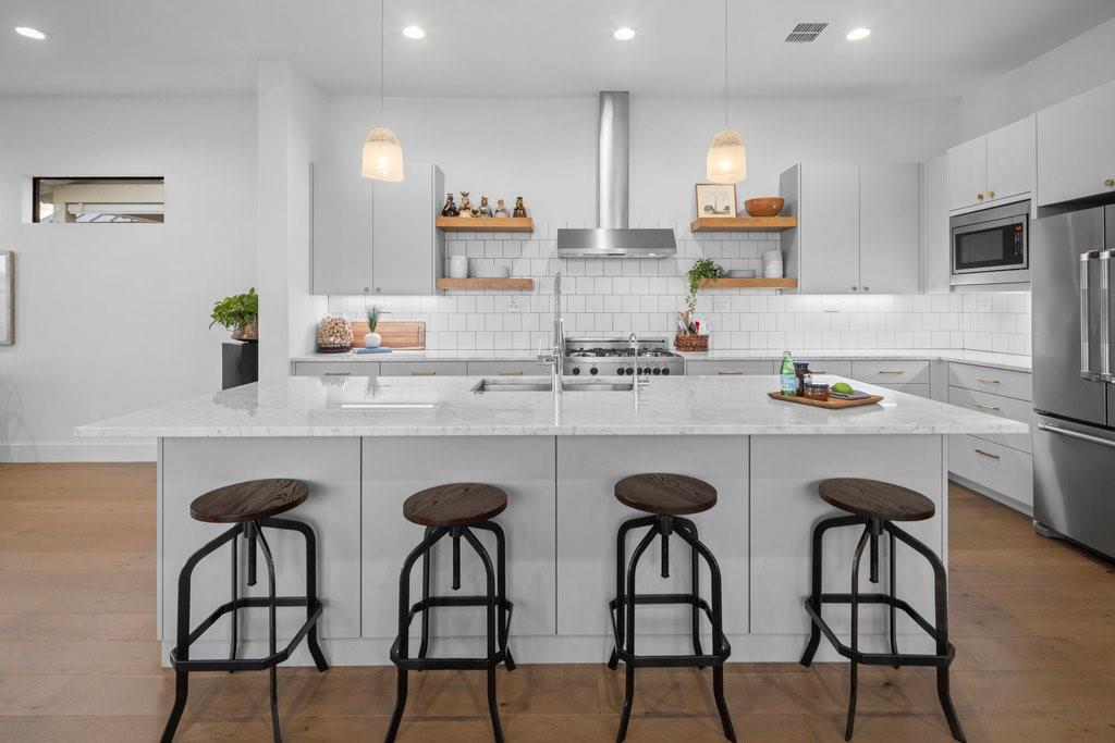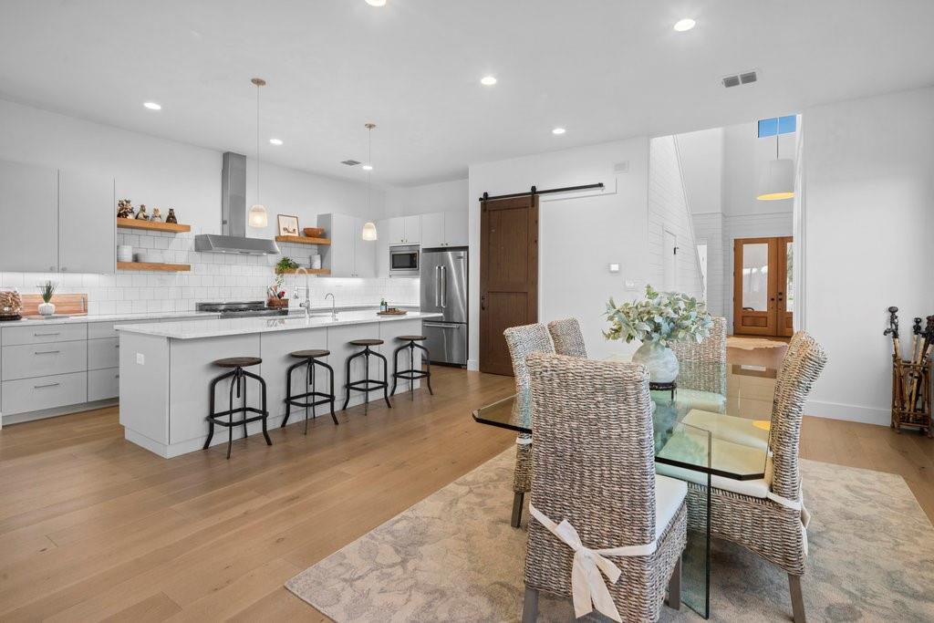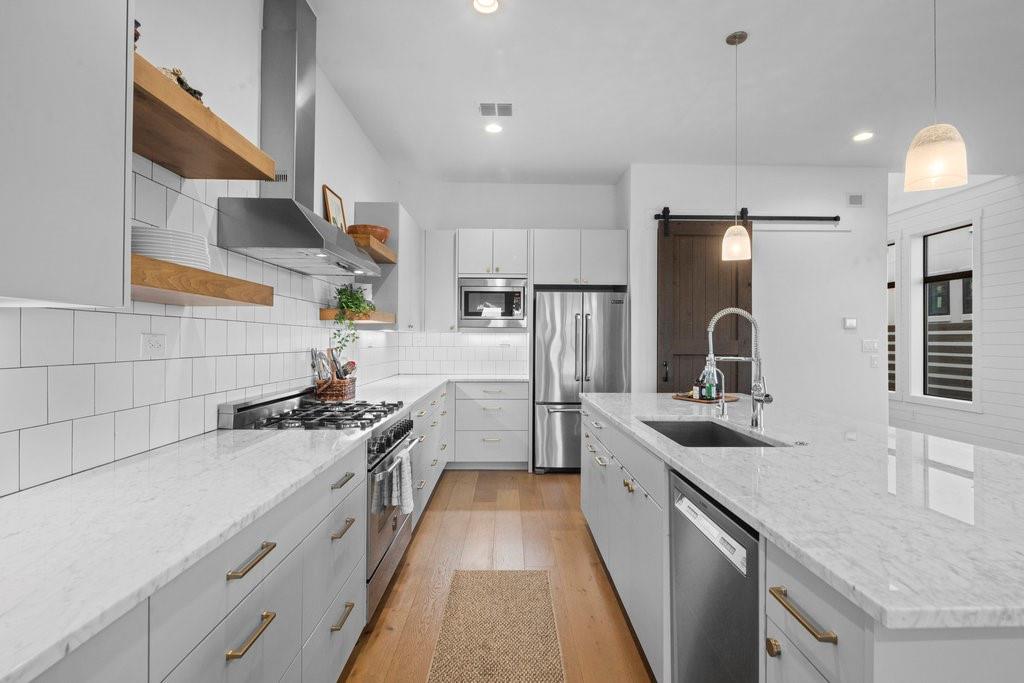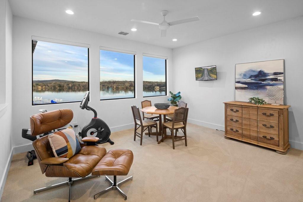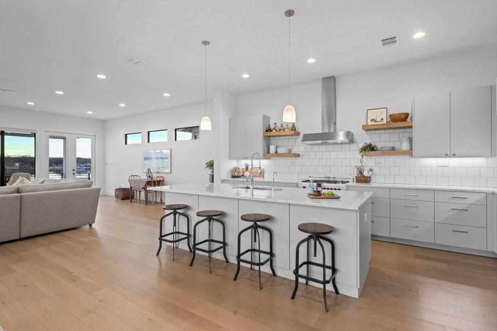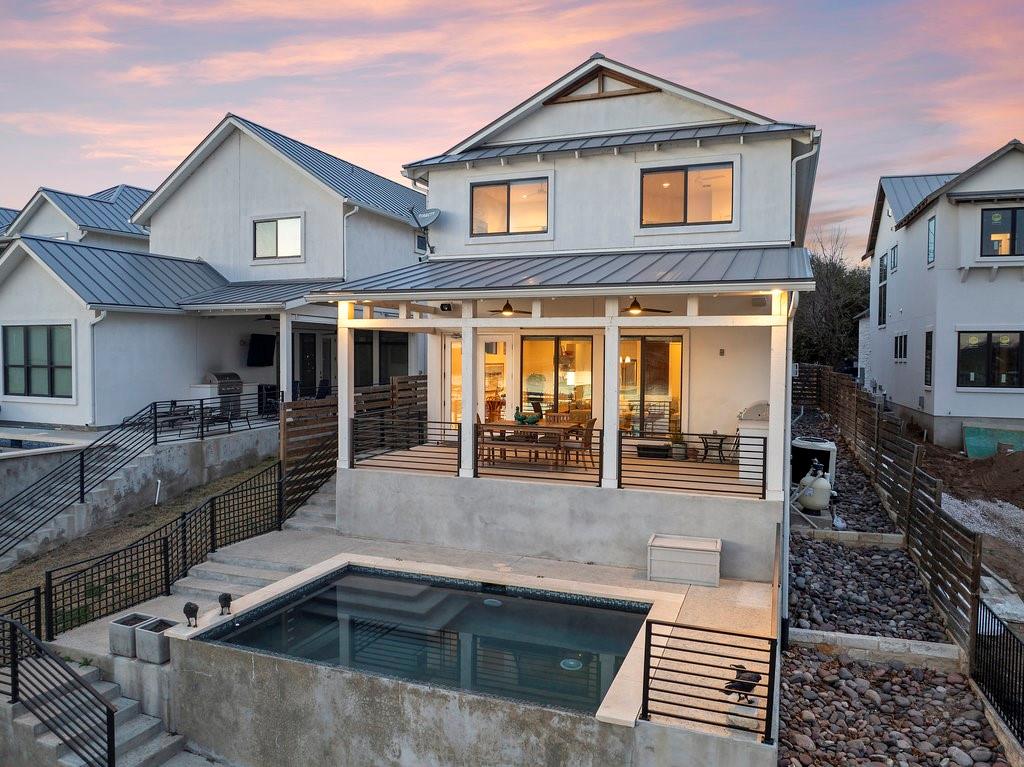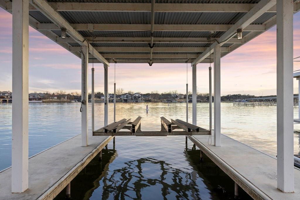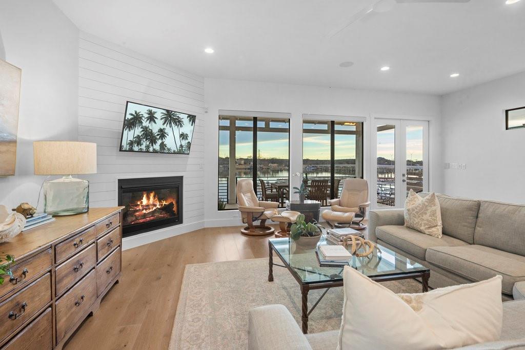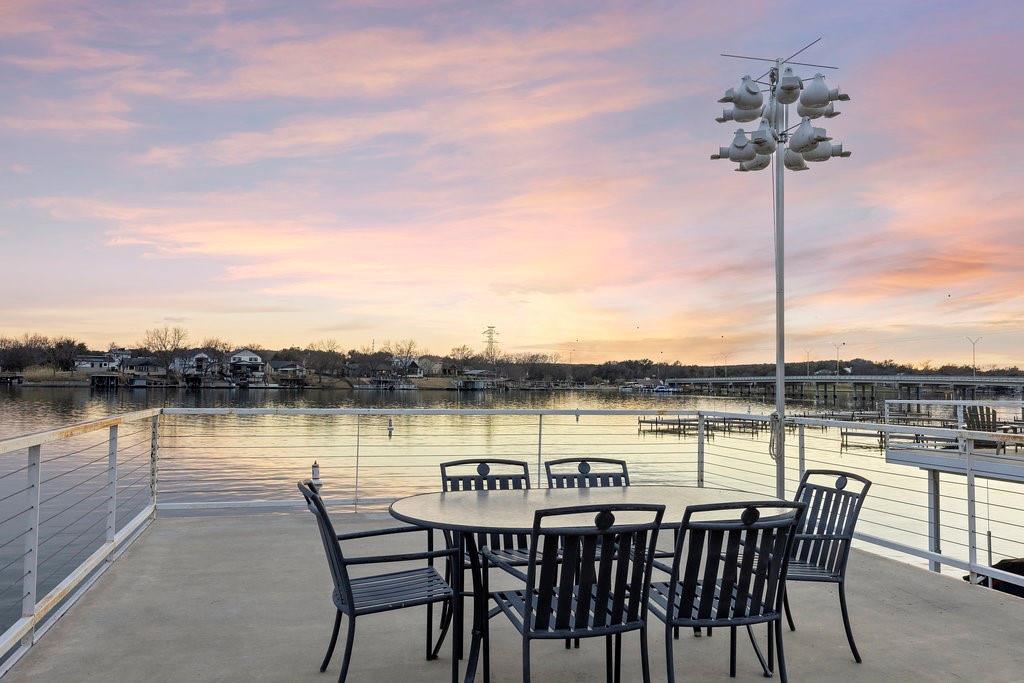 At 1322 Euel Moore, you'll find a stunning lakefront property situated on the beautiful shores of Lake LBJ. With its prime location on open water, this home offers sweeping views as you enjoy the south facing orientation. Bring your boat, because this property includes a universal boat cradle with the ability to fit a wide range of boats; anything from a V hull to a pontoon. Outside, the boat dock, patio above the dock, two personal watercraft slips, covered deck, grill, and in-ground heated pool creates the perfect setting for entertaining or simply unwinding. As you step inside, you'll be greeted by soaring ceilings and charming shiplap accents that infuse the home with a warm and inviting atmosphere. The first floor primary suite ensures a private, relaxing retreat. Upstairs are the three additional bedrooms, three full bathrooms, as well as a spacious family/bunk area. Sleeps 12 comfortably. The open living, dining, and kitchen provide a seamless flow, making it easy to enjoy time with loved ones while taking in the scenic lake views through the large windows. Throughout you'll find thoughtful upgrades that add both style and functionality. With a perfect location on the water, desirable amenities, walking distance to Boat Town Burger Bar, and a 2 min drive to HEB, plus an excellent short term rental opportunity, you can embrace the lake house you've always wanted.