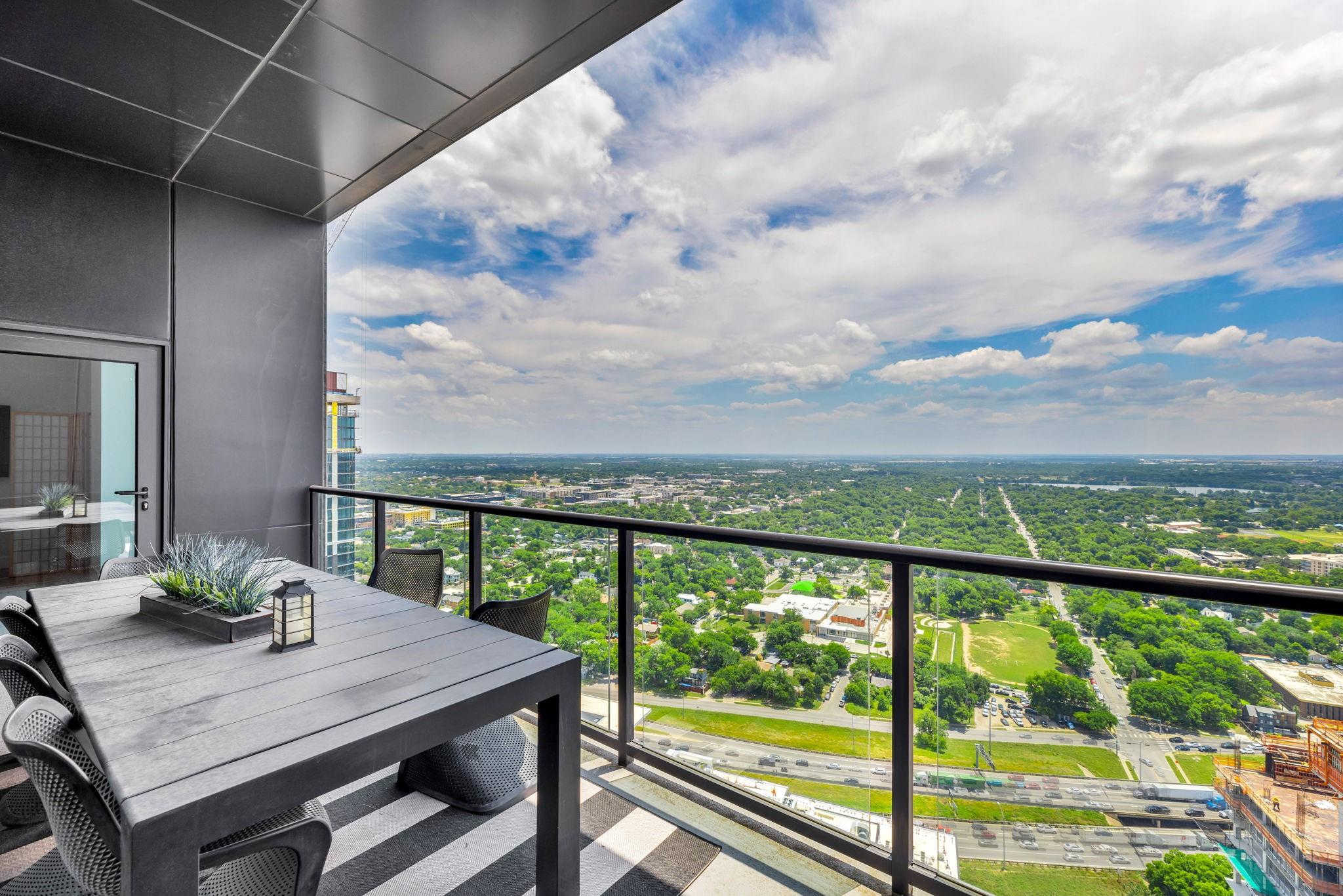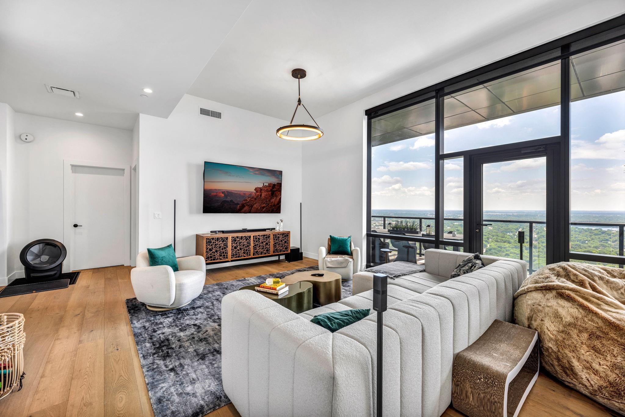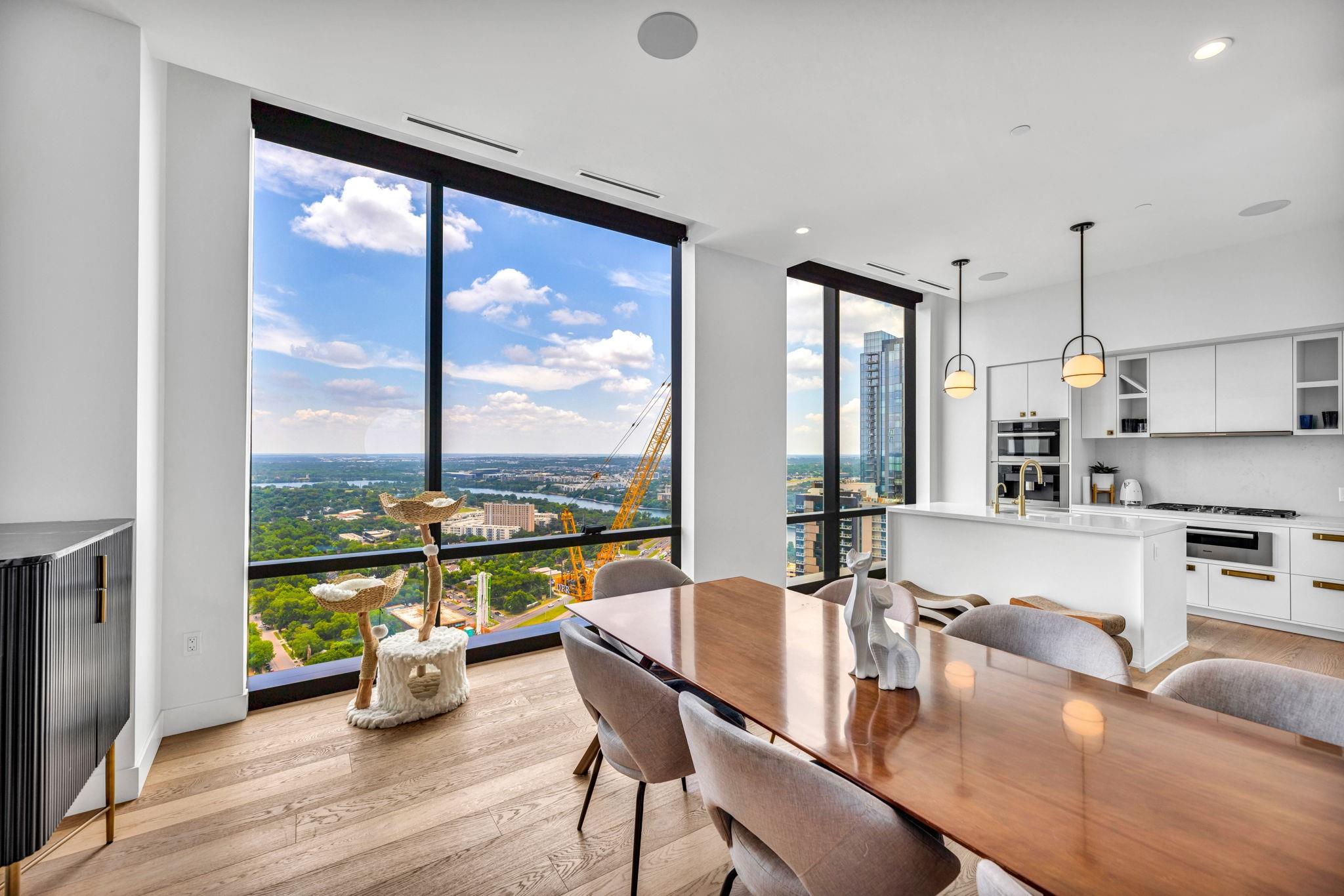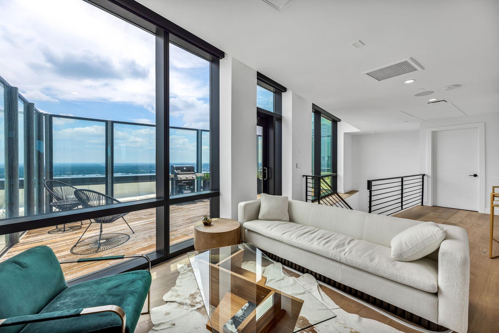 Penthouses rarely come onto the market, let alone something so impeccably maintained as this three story masterpiece. It truly is an entertainer's dream come true. Express your lifestyle to the fullest on the main floor with its open feel living, dining, and kitchen. Take the party outside and dine alfresco on the main level outdoor space. Need a more intimate space for conversation and frivolity? Head upstairs to the lounge area which is fully kitted with refrigerator, sink, and other bar amenities, including a half bath for guests. While up there, why don't you step outside onto the glass enclosed upper deck for expansive views of the city, including views of Ladybird Lake and the Colorado River... you might even notice the new Tesla building on the Eastern horizon. When it is time to retire for the evening, head down to the lower level for your primary bedroom quarters with marble adorned ensuite master bath. With wide plank light oak hardwoods throughout, the owner can decide on modern, traditional, transitional, or even comtemporary decor. This is a space fit for a minimalist OR a maximalist, judgement free. The unit grants ownership of three (3) parking spaces as well for the owner. Perfect for any car collector to live without compromise. (P.S. Can you find the cat in the photos?)