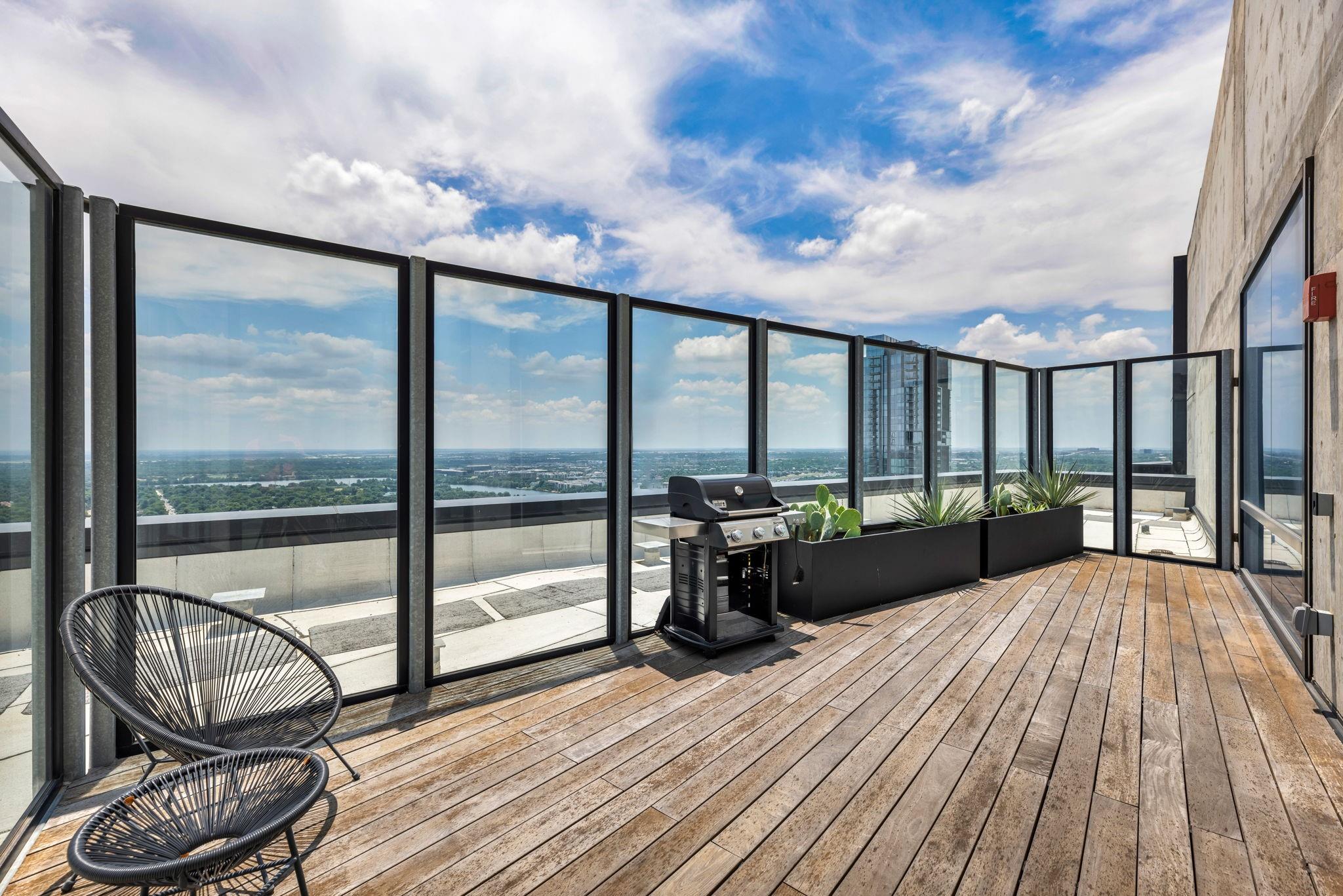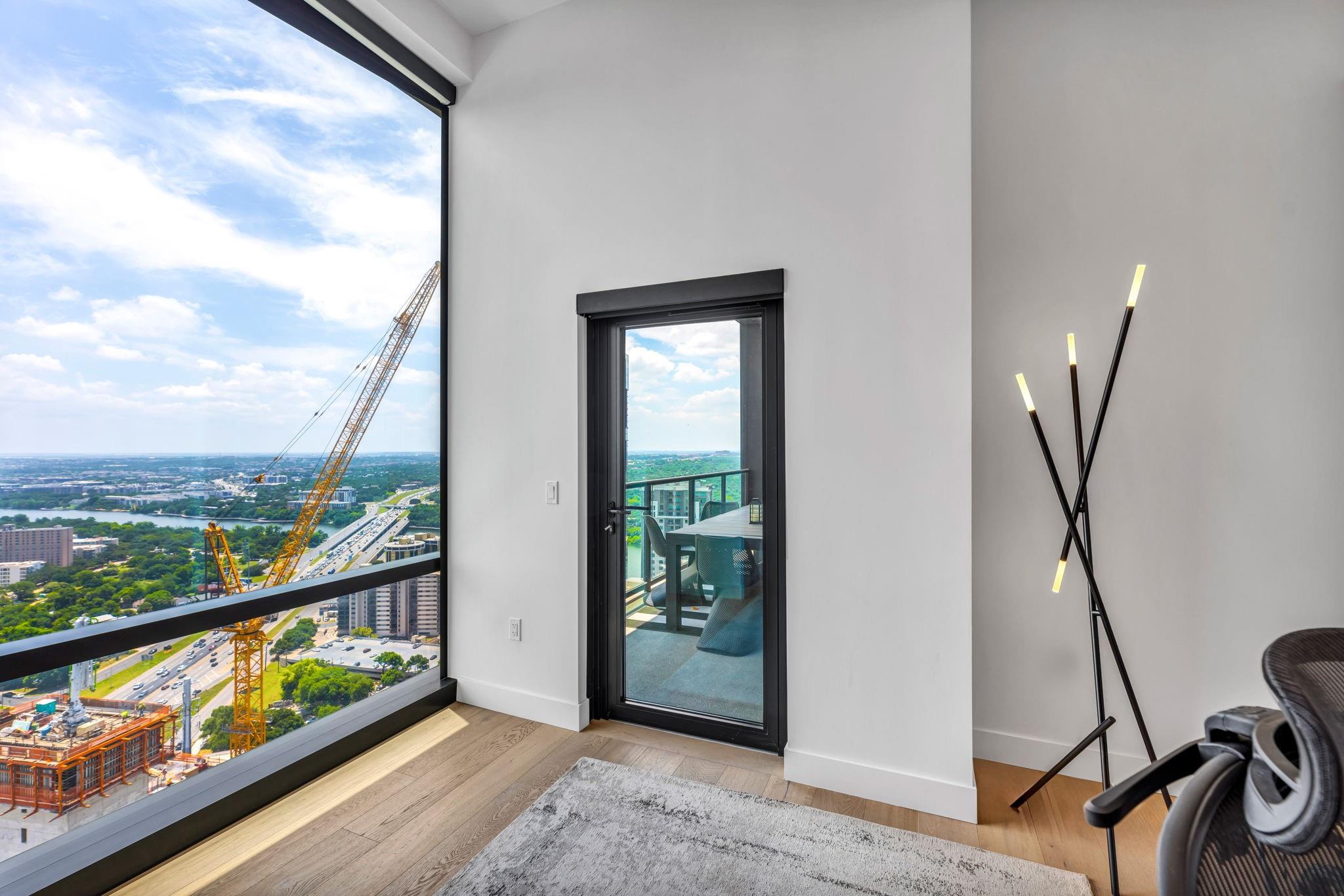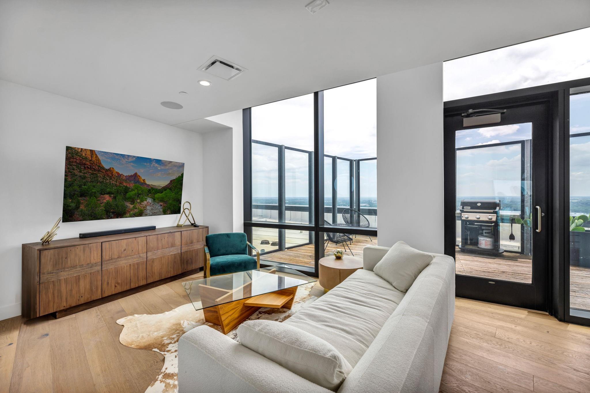Penthouses rarely come onto the market, let alone something so impeccably maintained as this three story masterpiece. It truly is an entertainer's dream come true. Express your lifestyle to the fullest on the main floor with its open feel living, dining, and kitchen. Take the party outside and dine alfresco on the main level outdoor space. Need a more intimate space for conversation and frivolity? Head upstairs to the lounge area which is fully kitted with refrigerator, sink, and other bar amenities, including a half bath for guests. While up there, why don't you step outside onto the glass enclosed upper deck for expansive views of the city, including views of Ladybird Lake and the Colorado River... you might even notice the new Tesla building on the Eastern horizon. When it is time to retire for the evening, head down to the lower level for your primary bedroom quarters with marble adorned ensuite master bath. With wide plank light oak hardwoods throughout, the owner can decide on modern, traditional, transitional, or even comtemporary decor. This is a space fit for a minimalist OR a maximalist, judgement free. The unit grants ownership of three (3) parking spaces as well for the owner. Perfect for any car collector to live without compromise. (P.S. Can you find the cat in the photos?)