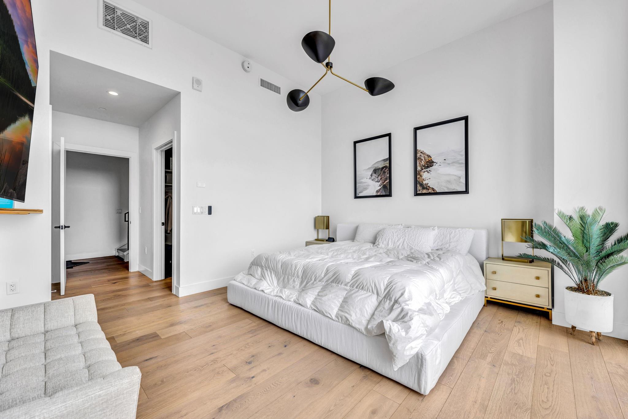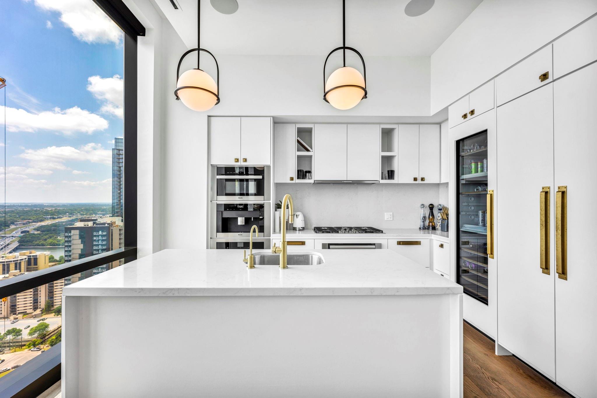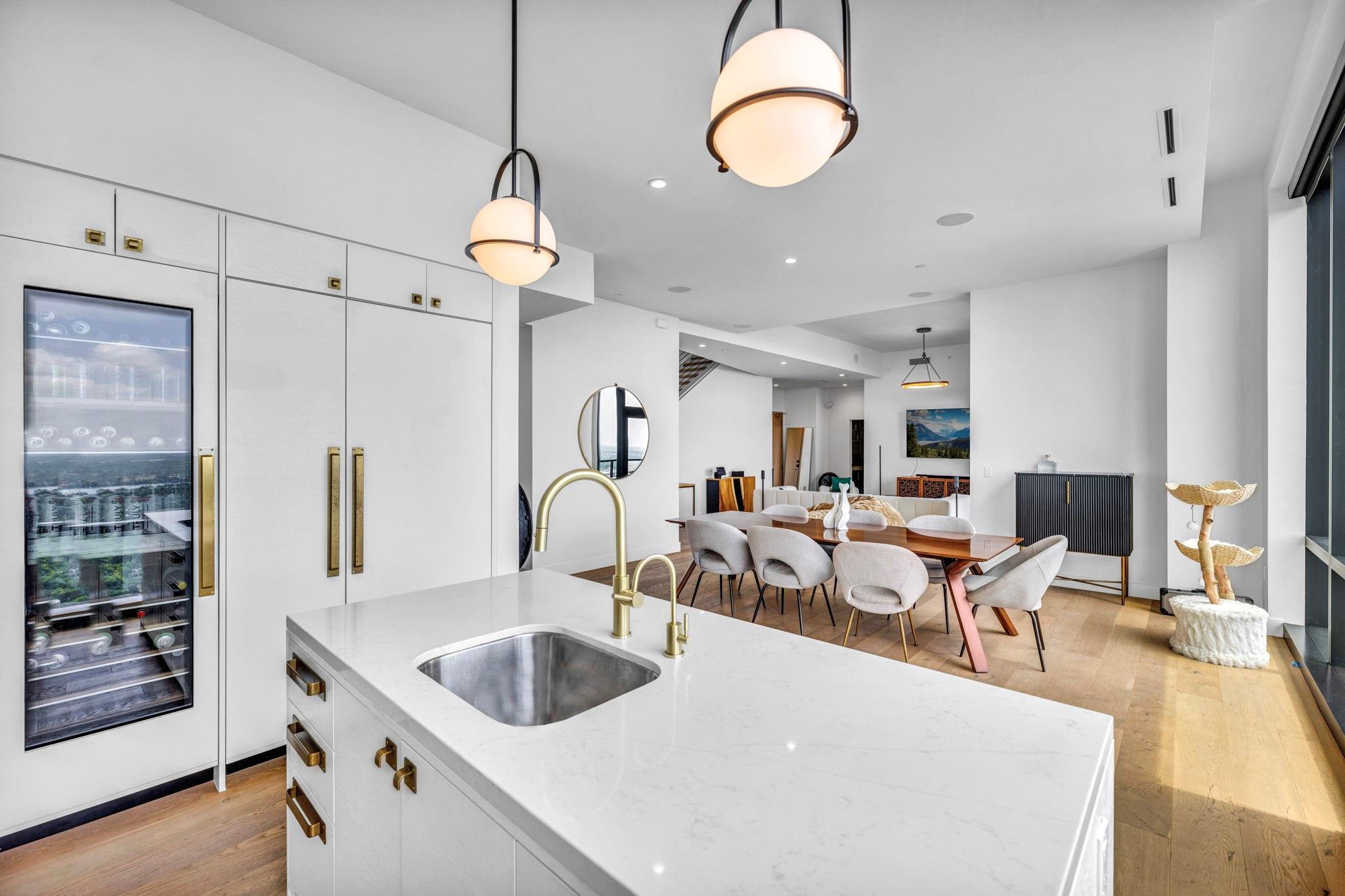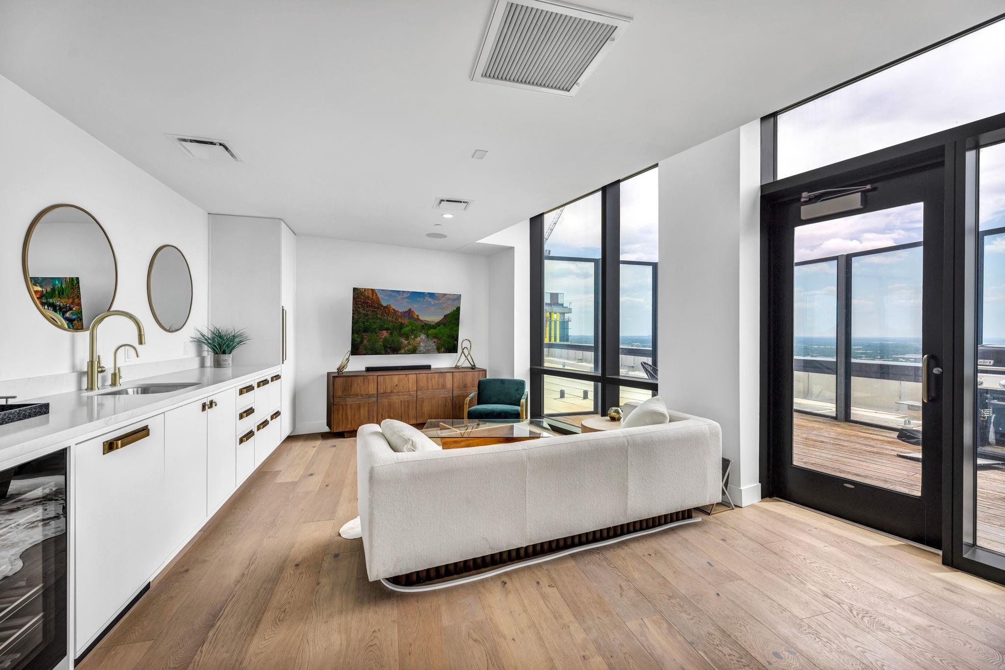 Penthouses rarely come onto the market, let alone something so impeccably maintained as this three story masterpiece. It truly is an entertainer's dream come true. Express your lifestyle to the fullest on the main floor with its open feel living, dining, and kitchen. Take the party outside and dine alfresco on the main level outdoor space. Need a more intimate space for conversation and frivolity? Head upstairs to the lounge area which is fully kitted with refrigerator, sink, and other bar amenities, including a half bath for guests. While up there, why don't you step outside onto the glass enclosed upper deck for expansive views of the city, including views of Ladybird Lake and the Colorado River... you might even notice the new Tesla building on the Eastern horizon. When it is time to retire for the evening, head down to the lower level for your primary bedroom quarters with marble adorned ensuite master bath. With wide plank light oak hardwoods throughout, the owner can decide on modern, traditional, transitional, or even comtemporary decor. This is a space fit for a minimalist OR a maximalist, judgement free. The unit grants ownership of three (3) parking spaces as well for the owner. Perfect for any car collector to live without compromise. (P.S. Can you find the cat in the photos?)