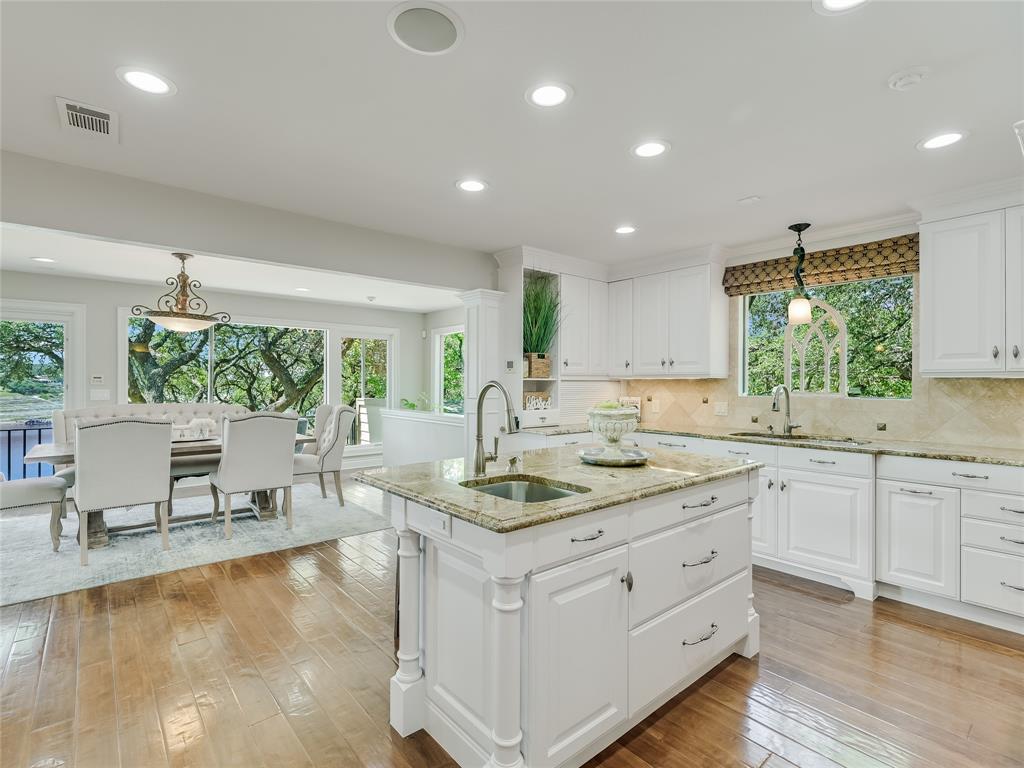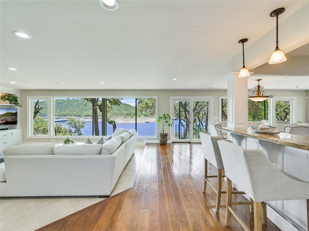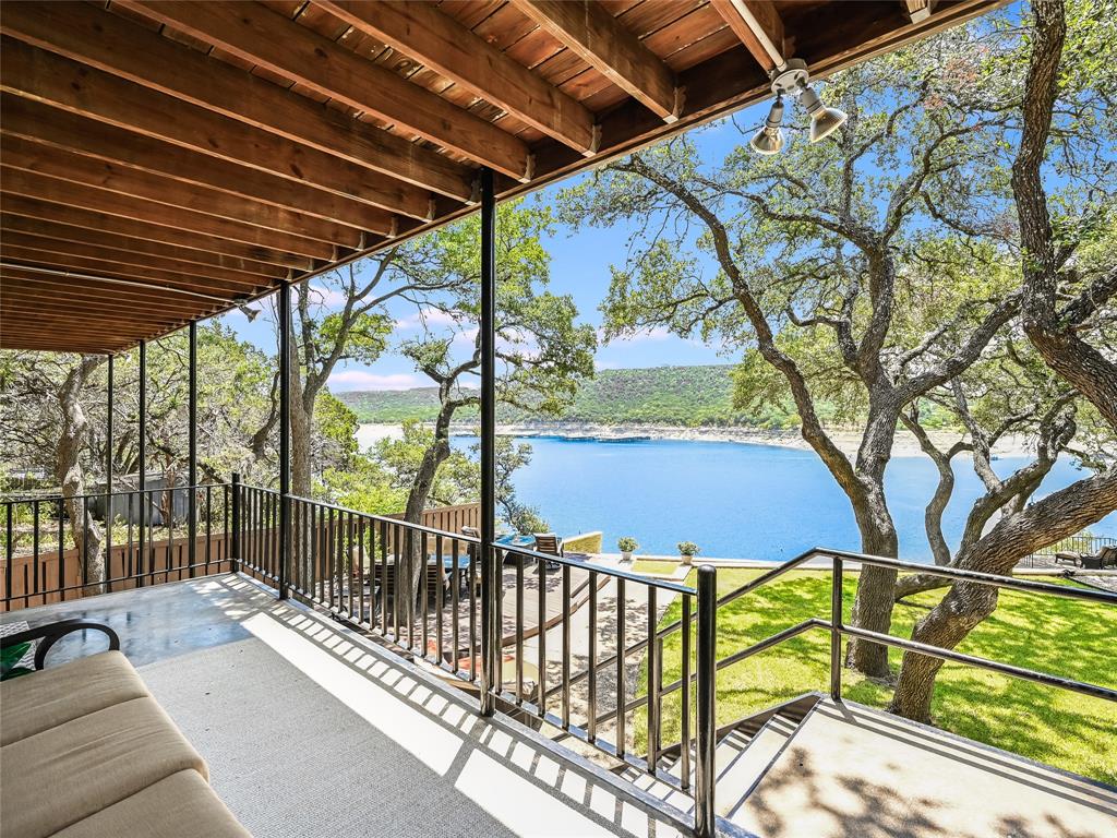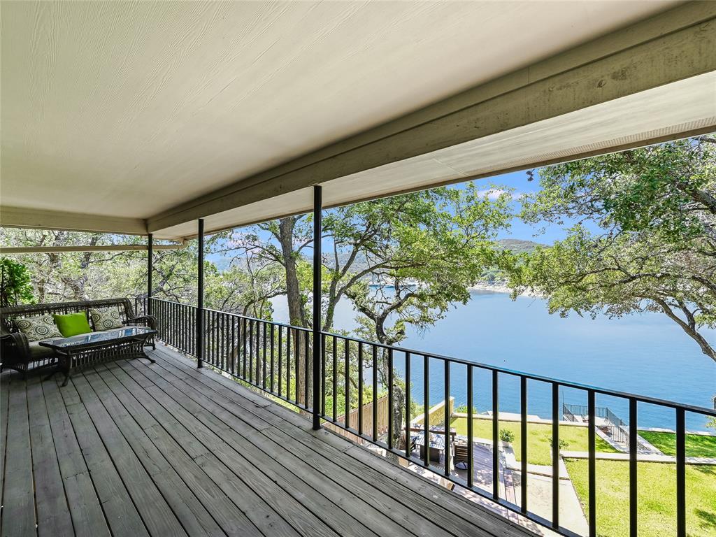 Experience Lake Travis Luxury Living in Austin, Texas This remarkable lakefront property consisting of 2 lots waterfront w/ house + extra developable lot across the street. This quintessential Austin lake house has incredible views of Lake Travis but even better is located in a protected deep water cove with no wake zones allowing for recreational activities like paddle boarding, kayaking, tubing etc that are nearly impossible on main body. Located on the just mins from shopping at Domain, restaurants & grocery stores this is a one-of-a-kind opportunity to live the lake lifestyle in a premier location on Lake Travis Step through the front door and be instantly captivated by breathtaking views of Lake Travis through expansive windows, inviting you to embrace the tranquil beauty of the serene waterscape. This exquisite residence offers two spacious living areas - one on the main level and another on the lower level, providing ample room to accommodate guests comfortably. The well-appointed kitchen features a Wolf range, a Subzero refrigerator, and a convenient wet bar with an ice maker, wine refrigerator, and sink. Venture to the upper level to discover three bedrooms, with the primary suite stealing the show with its grandeur. A luxurious retreat awaits in the primary bathroom, boasting a huge soaking tub, a large walk-in shower, and abundant storage in cedar and walk-in closets. Adjacent to the bathroom is a large room, perfect for a study or office space. Descending to the lower level, an inviting living room with access to a sizable wood deck awaits, making it an ideal entertainment space. A newly renovated bathroom adds convenience and functionality to the lower level. Outside, majestic oak trees provide shade during hot summer days, creating an enchanting ambiance. Recent upgrades in 2021, including HVAC systems, hot water heaters, and a whole water filtration system, ensure modern comfort and convenience.