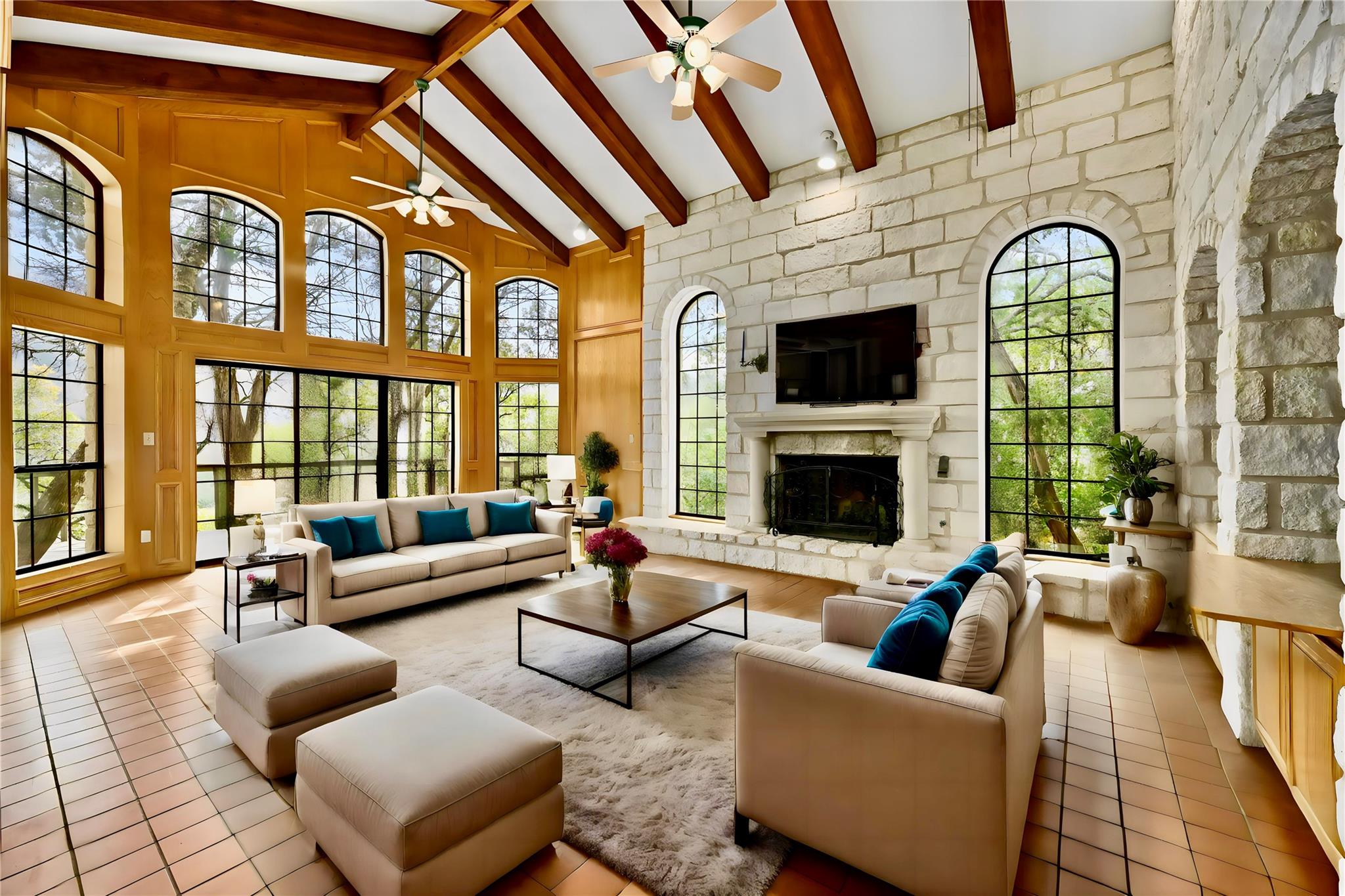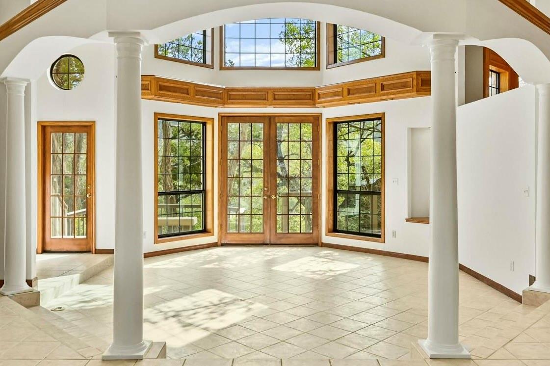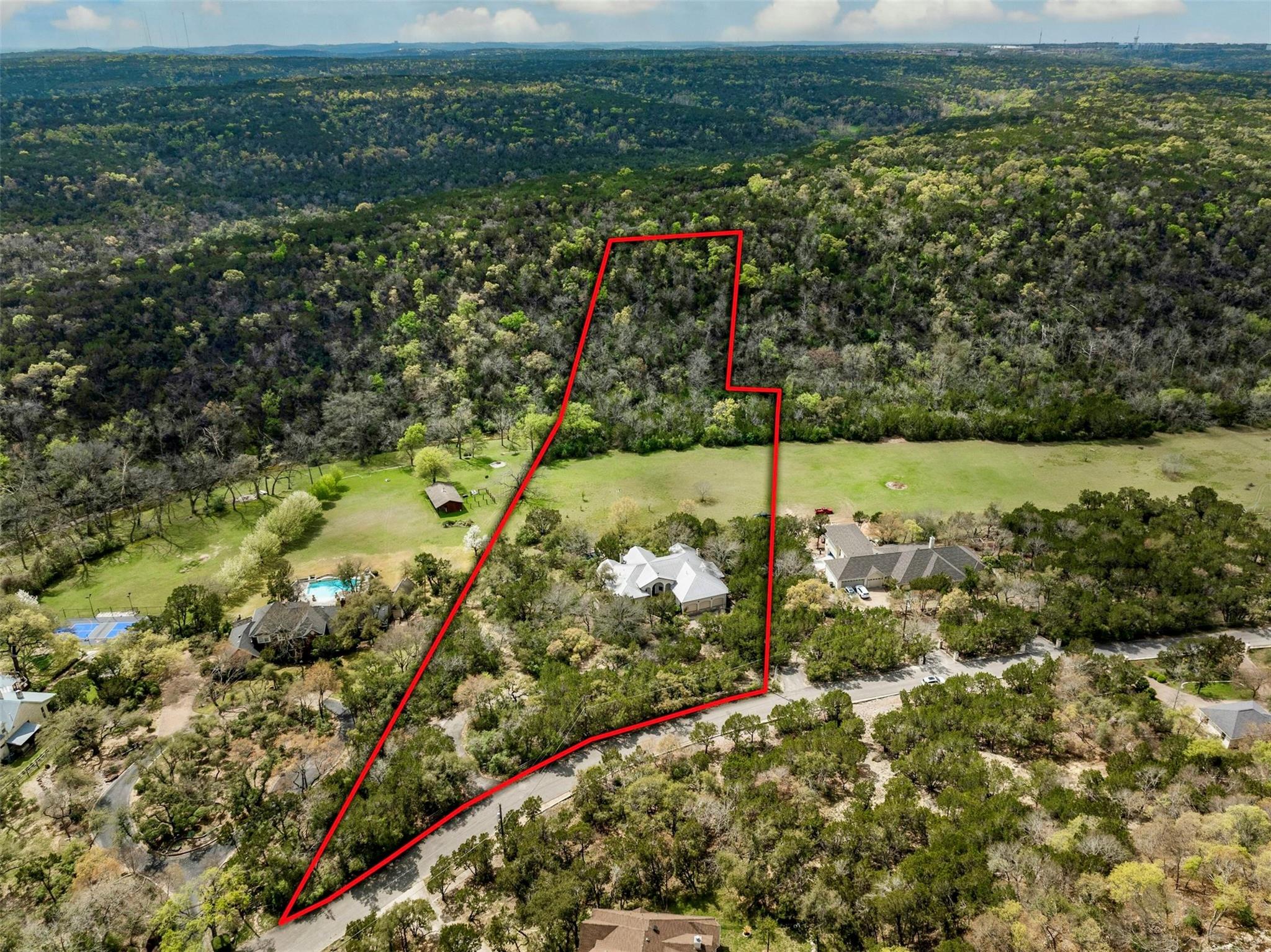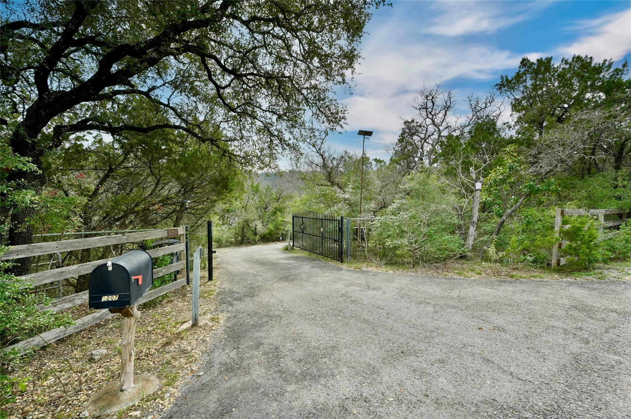 Discover this rare and enchanting 5-acre gated estate in Austin ETJ that is so bucolic and so private yet just minutes from the Domain, Apple, and Texas Children’s Hospital. Located among other estate-sized properties, the site enjoys minimal traffic and an idyllic calm. Bull Creek winds calmly through the property’s native prairie grass meadow, a flat plain that could be perfect for a private playing field or place for a small barn. This “creek-side jewel in the woods” is host to an impressive bluff-top European-influenced residence with graceful columns, magnificent arches, and tall bay windows, all within a natural setting overlooking a year-round pool, beside which rises a majestic “corkscrew” spiral native walnut tree. The 4,088 sq ft custom-designed home features a limestone exterior, standing seam metal roof, and handsome, expansive windows that flood the interior with light. Inside, an imaginative composition of spaces provides for a casual yet elegant lifestyle. The primary suite includes a generous bedroom with fireplace, wet bar, and vaulted ceiling, as well as a luxurious bath with private walled garden and 3 capacious walk-in closets. The sunken living room, with its soaring ceiling, contrasts with the intimate library, an octagonal space lined with bookshelves and a murphy bed that was inspired by a royal hunting lodge in Austria. The large great room, located by the bright and spacious kitchen, features a grand stone fireplace and a beamed, vaulted ceiling. Upstairs, a game room adjoins the third bedroom suite and leads to a surprise secret passage between floors! The large 3-car garage has plenty of space above to add additional second floor rooms. A broad deck stretching across the back of the house provides lovely views out to this extensive 5-acre parcel that reaches across Bull Creek and into the hills beyond, the bucolic home of white-tail deer and wild turkey. Come see why this quiet estate is such a truly unique haven. It’s simply fabulous!