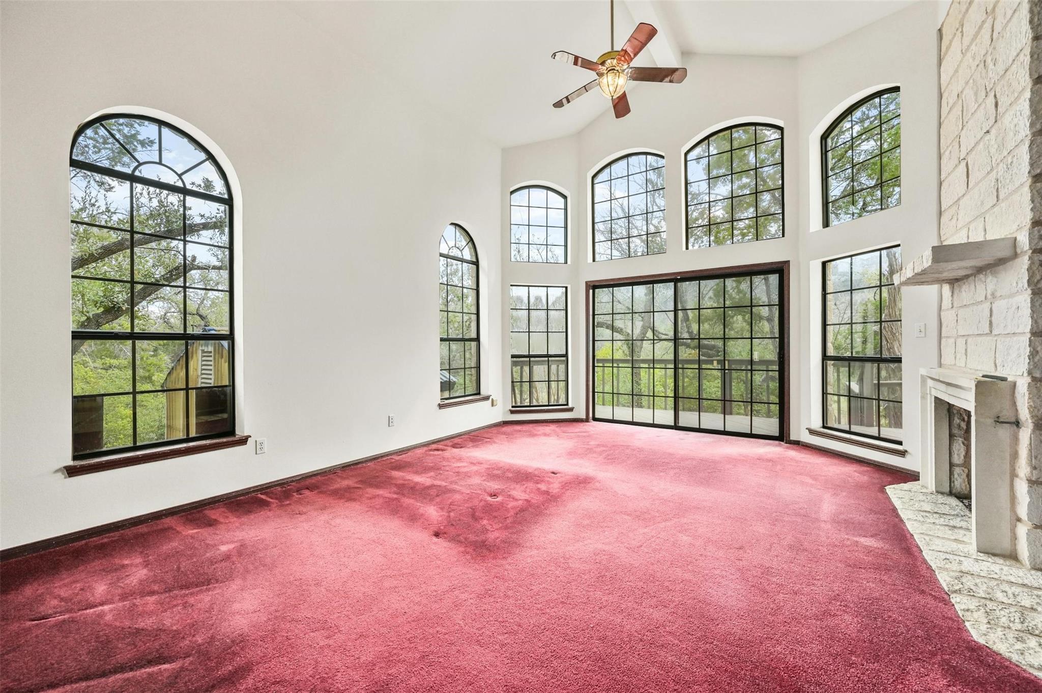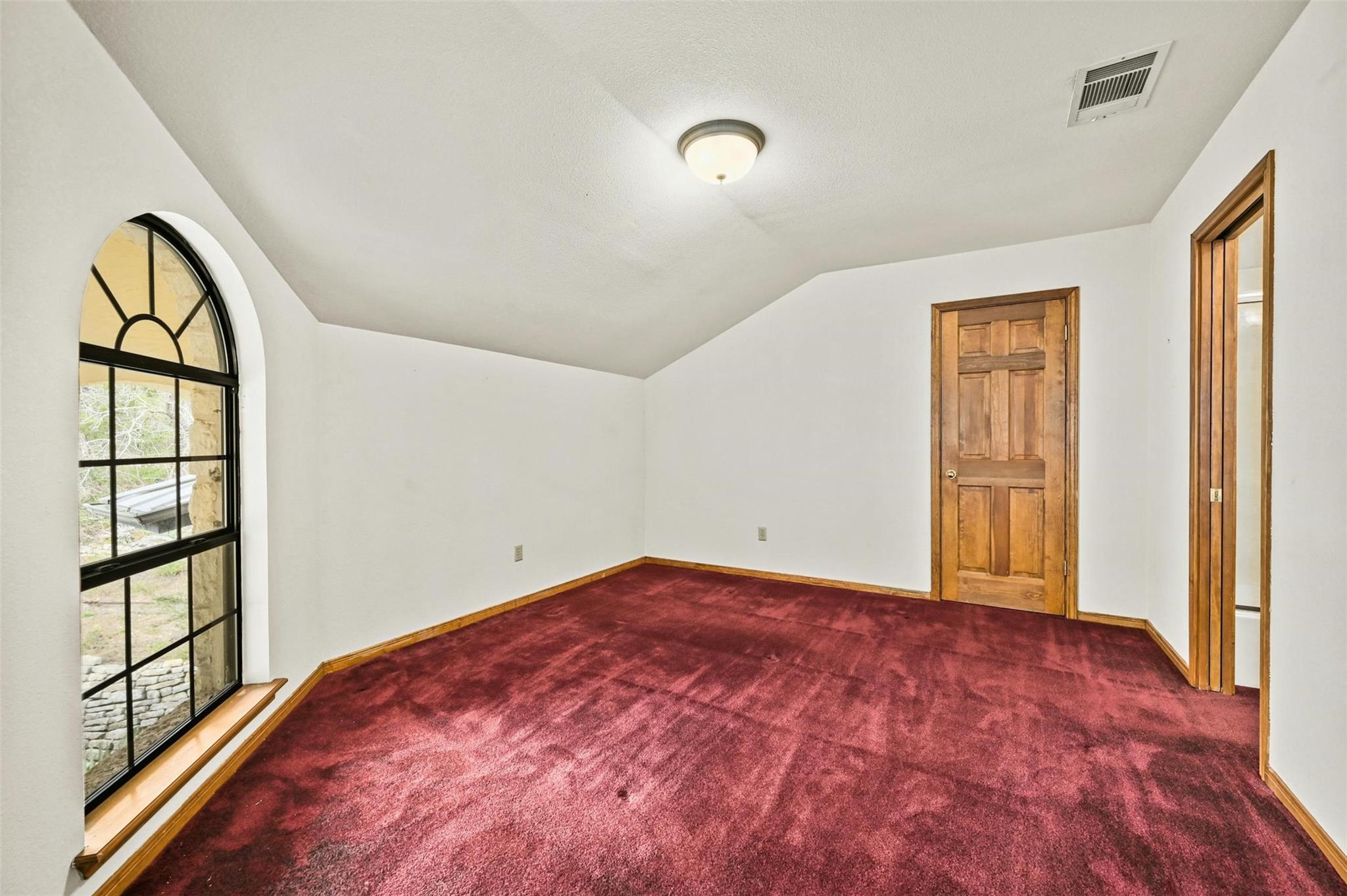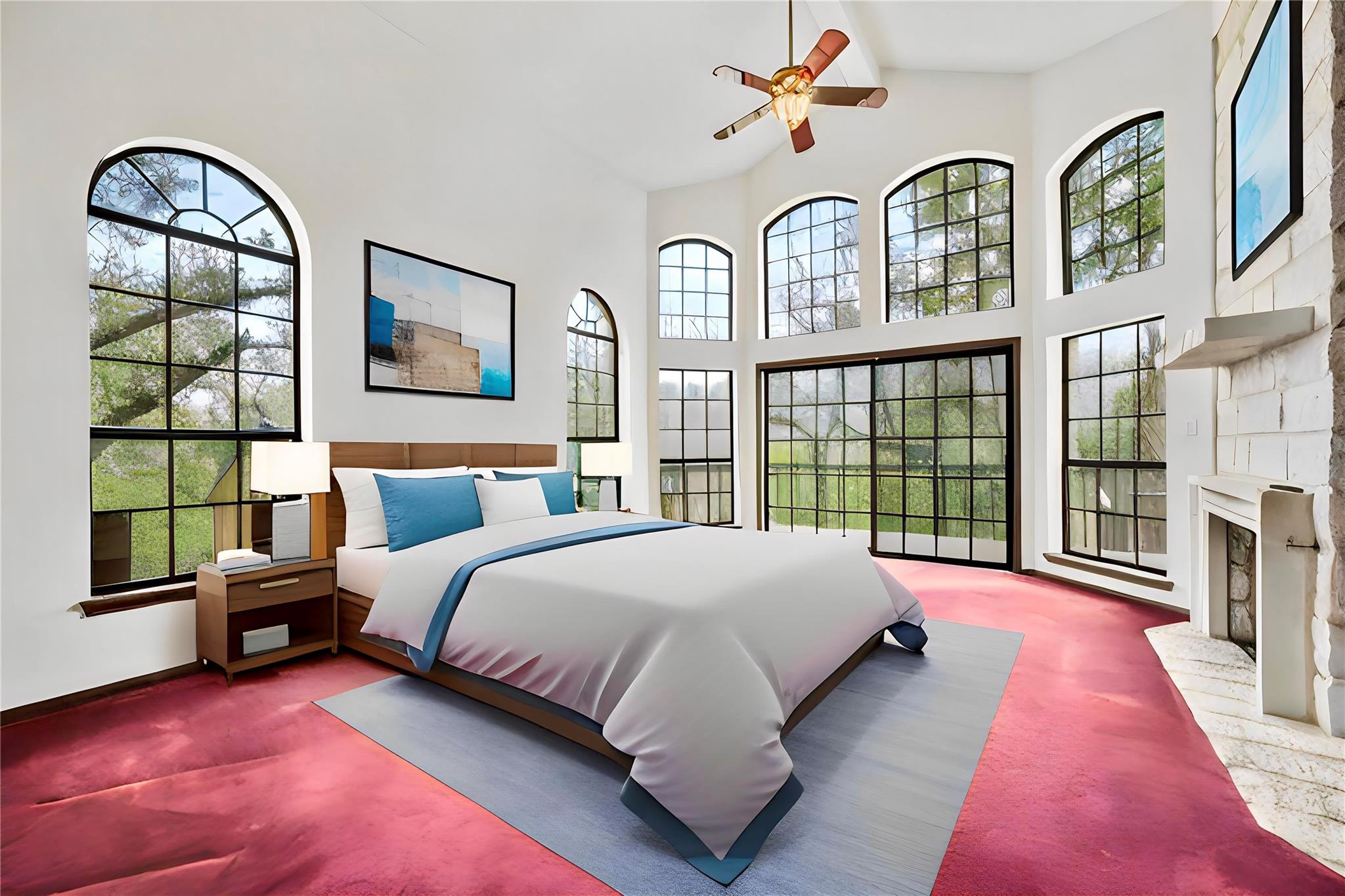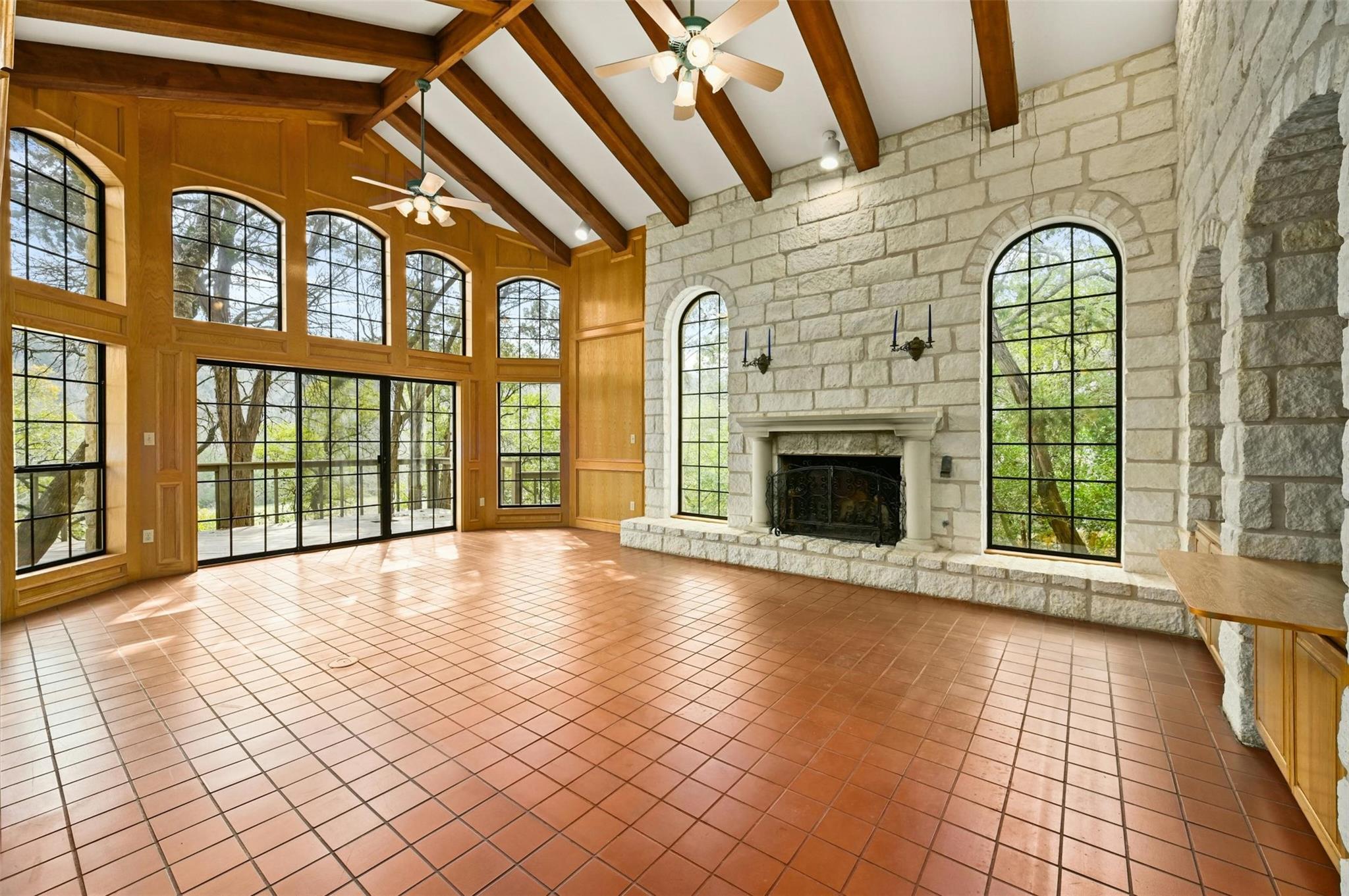 Discover this rare and enchanting 5-acre gated estate in Austin ETJ that is so bucolic and so private yet just minutes from the Domain, Apple, and Texas Children’s Hospital. Located among other estate-sized properties, the site enjoys minimal traffic and an idyllic calm. Bull Creek winds calmly through the property’s native prairie grass meadow, a flat plain that could be perfect for a private playing field or place for a small barn. This “creek-side jewel in the woods” is host to an impressive bluff-top European-influenced residence with graceful columns, magnificent arches, and tall bay windows, all within a natural setting overlooking a year-round pool, beside which rises a majestic “corkscrew” spiral native walnut tree. The 4,088 sq ft custom-designed home features a limestone exterior, standing seam metal roof, and handsome, expansive windows that flood the interior with light. Inside, an imaginative composition of spaces provides for a casual yet elegant lifestyle. The primary suite includes a generous bedroom with fireplace, wet bar, and vaulted ceiling, as well as a luxurious bath with private walled garden and 3 capacious walk-in closets. The sunken living room, with its soaring ceiling, contrasts with the intimate library, an octagonal space lined with bookshelves and a murphy bed that was inspired by a royal hunting lodge in Austria. The large great room, located by the bright and spacious kitchen, features a grand stone fireplace and a beamed, vaulted ceiling. Upstairs, a game room adjoins the third bedroom suite and leads to a surprise secret passage between floors! The large 3-car garage has plenty of space above to add additional second floor rooms. A broad deck stretching across the back of the house provides lovely views out to this extensive 5-acre parcel that reaches across Bull Creek and into the hills beyond, the bucolic home of white-tail deer and wild turkey. Come see why this quiet estate is such a truly unique haven. It’s simply fabulous!