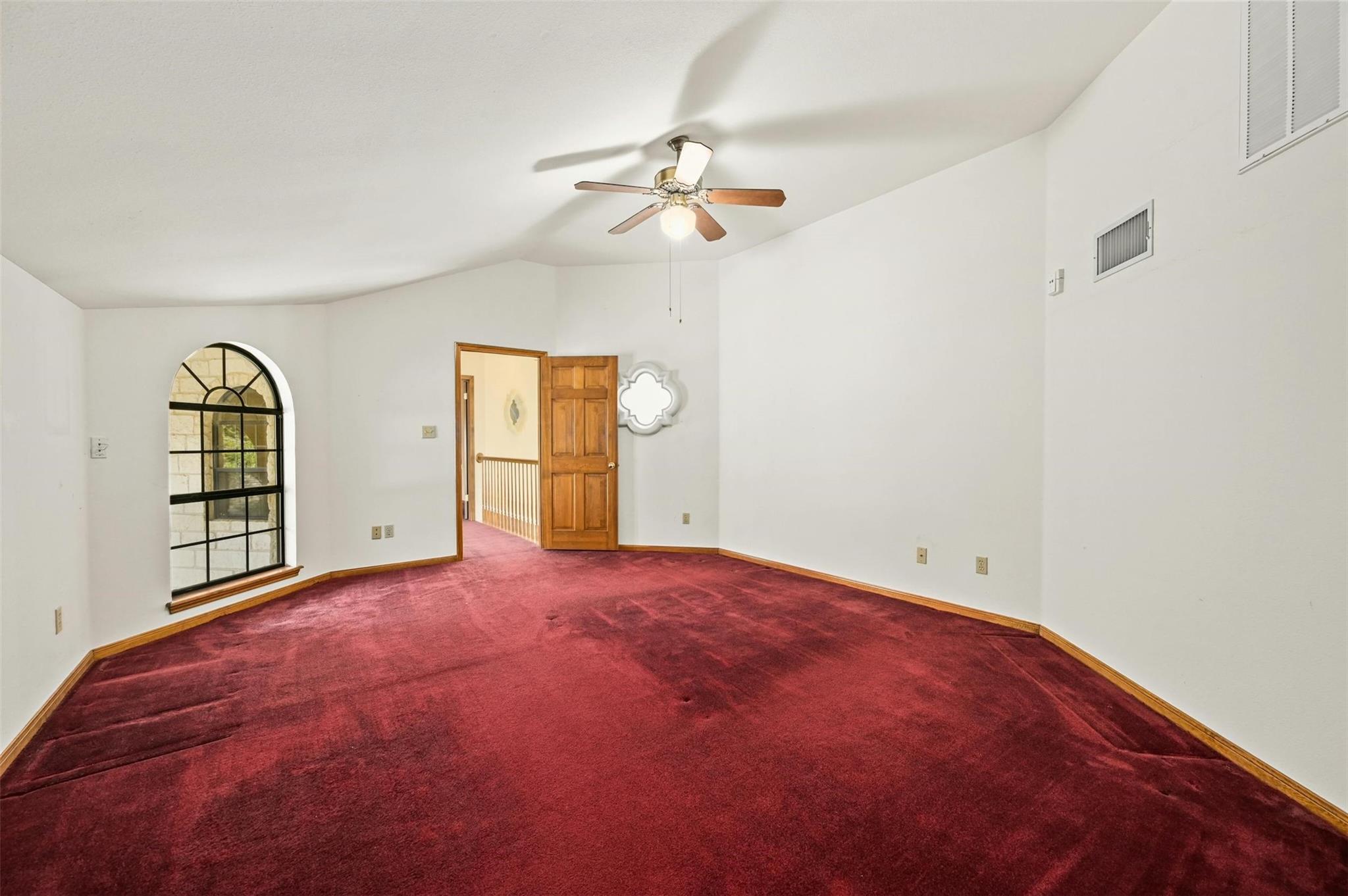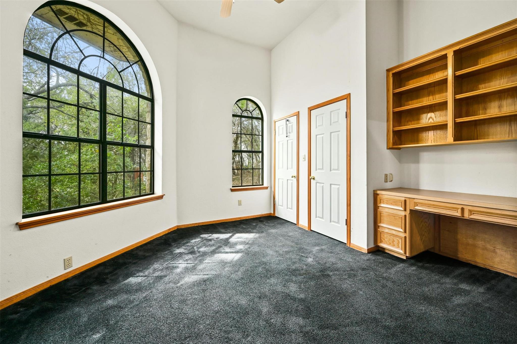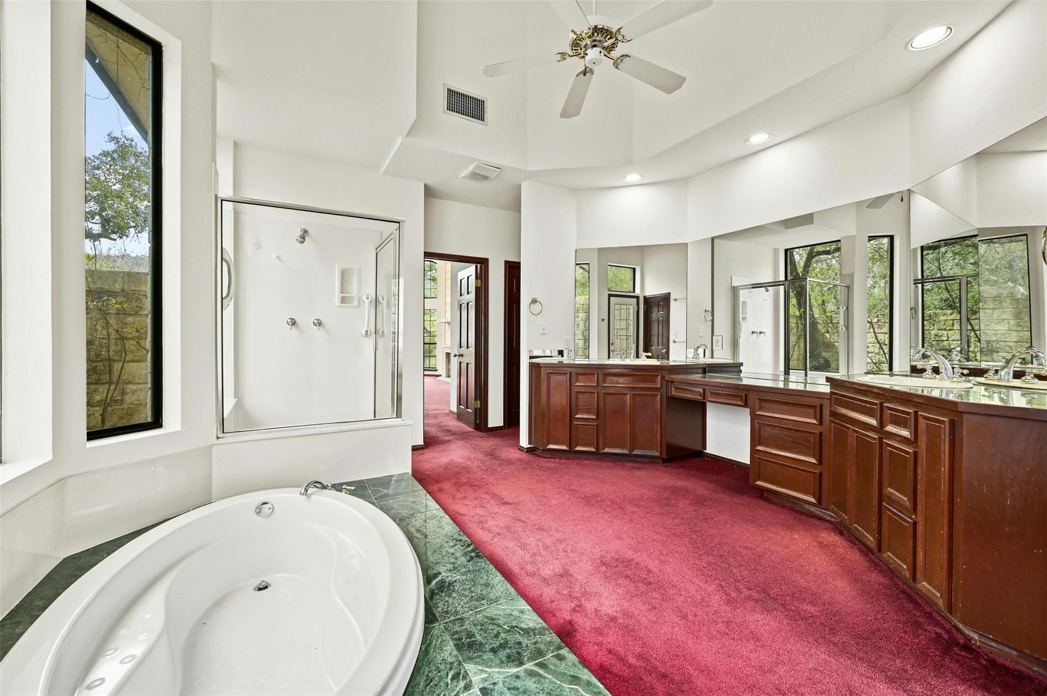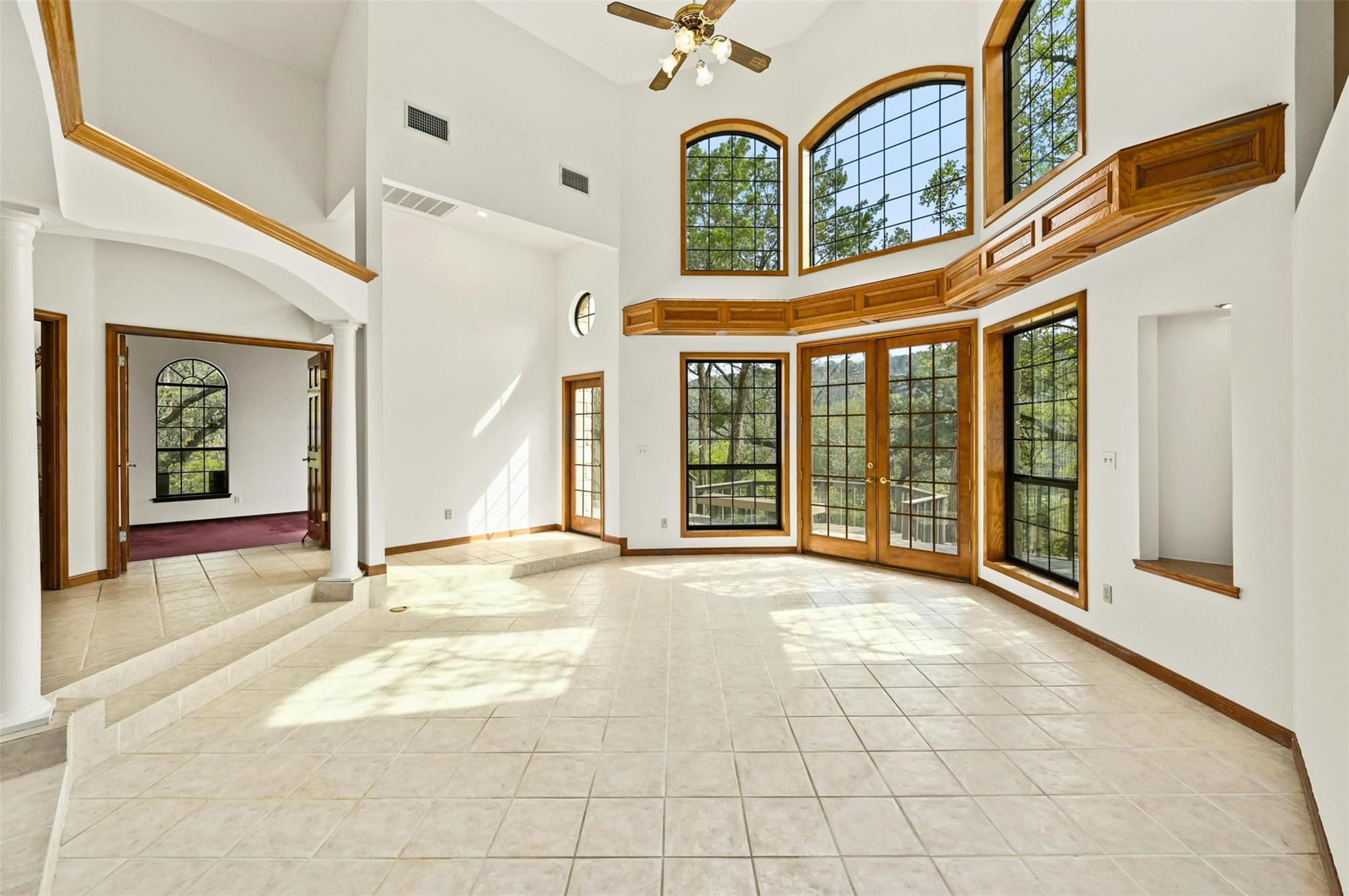 Discover this rare and enchanting 5-acre gated estate in Austin ETJ that is so bucolic and so private yet just minutes from the Domain, Apple, and Texas Children’s Hospital. Located among other estate-sized properties, the site enjoys minimal traffic and an idyllic calm. Bull Creek winds calmly through the property’s native prairie grass meadow, a flat plain that could be perfect for a private playing field or place for a small barn. This “creek-side jewel in the woods” is host to an impressive bluff-top European-influenced residence with graceful columns, magnificent arches, and tall bay windows, all within a natural setting overlooking a year-round pool, beside which rises a majestic “corkscrew” spiral native walnut tree. The 4,088 sq ft custom-designed home features a limestone exterior, standing seam metal roof, and handsome, expansive windows that flood the interior with light. Inside, an imaginative composition of spaces provides for a casual yet elegant lifestyle. The primary suite includes a generous bedroom with fireplace, wet bar, and vaulted ceiling, as well as a luxurious bath with private walled garden and 3 capacious walk-in closets. The sunken living room, with its soaring ceiling, contrasts with the intimate library, an octagonal space lined with bookshelves and a murphy bed that was inspired by a royal hunting lodge in Austria. The large great room, located by the bright and spacious kitchen, features a grand stone fireplace and a beamed, vaulted ceiling. Upstairs, a game room adjoins the third bedroom suite and leads to a surprise secret passage between floors! The large 3-car garage has plenty of space above to add additional second floor rooms. A broad deck stretching across the back of the house provides lovely views out to this extensive 5-acre parcel that reaches across Bull Creek and into the hills beyond, the bucolic home of white-tail deer and wild turkey. Come see why this quiet estate is such a truly unique haven. It’s simply fabulous!