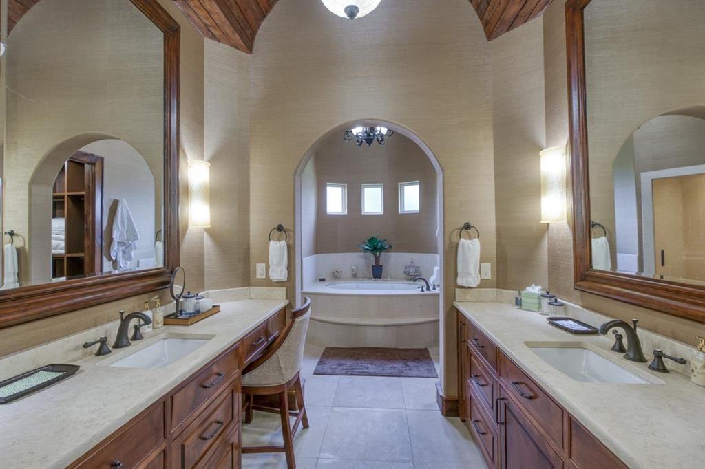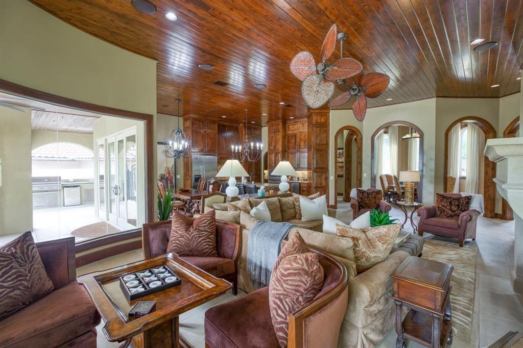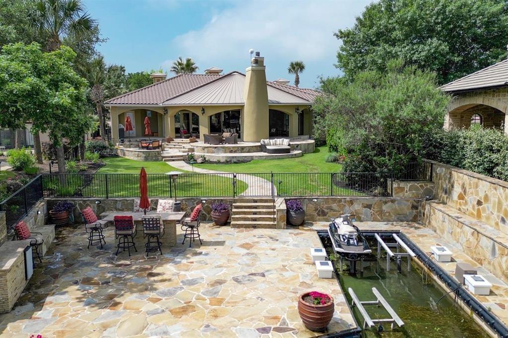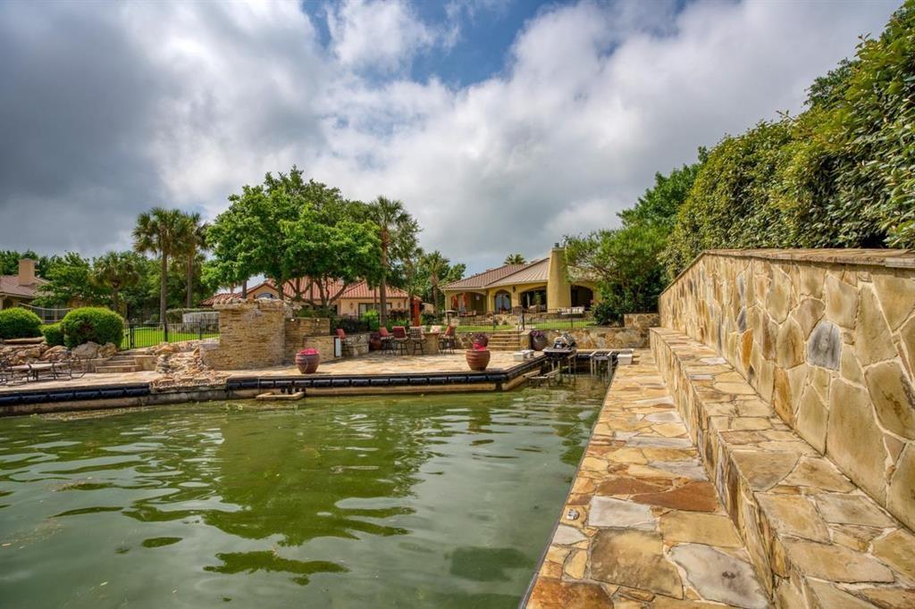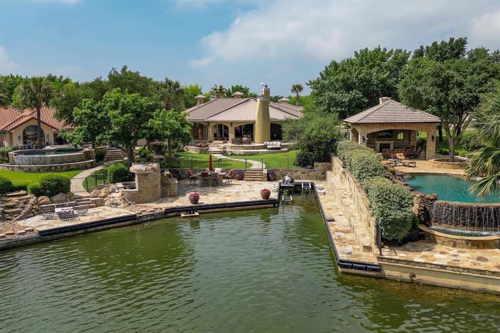 You'll immediately admire this property as you drive up to the home to a inviting and expansive lawn with a beautiful rock waterfall entry to the home. Enter a wonderful, single level AHI estate home with perfect split bedroom floor plan in A1 condition. Master suite is spacious with intimate sitting area with lake views and includes a ensuite bath with his and hers vanities, spa/whirlpool tub, large steam shower and huge walk in master closet. Two additional bedrooms on the other side of the home also include high end ensuite baths. The chefs kitchen with breakfast area and large island is open to the great room with high end viking appliances including double refrigerator,commercial gas stove and vent hood, double ovens, microwave, warming drawer, double dish washers and ice maker. The large,custom designed cabinetry is solid knotty alder wood. Tremendous custom detail throughout this home includes several archways, wooden entry archway, exquisite rotunda dining room with high, wood ceiling, great room with wood beamed ceiling, wall of glass allowing beautiful lake views, large fireplace and much more. Outdoor living is a dream with beautiful lake views, large covered patio,fireplace, outdoor kitchen, multi level flagstone patio areas, gas fire pit and beautifully updated landscaping. Lakefront features a boatslip with 4 hydraulic jet ski ramps currently or easily converted to a boat lift. This home is an entertainers dream! Being sold totally designer furnished.