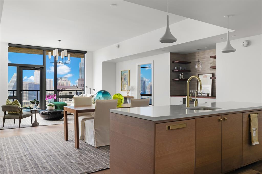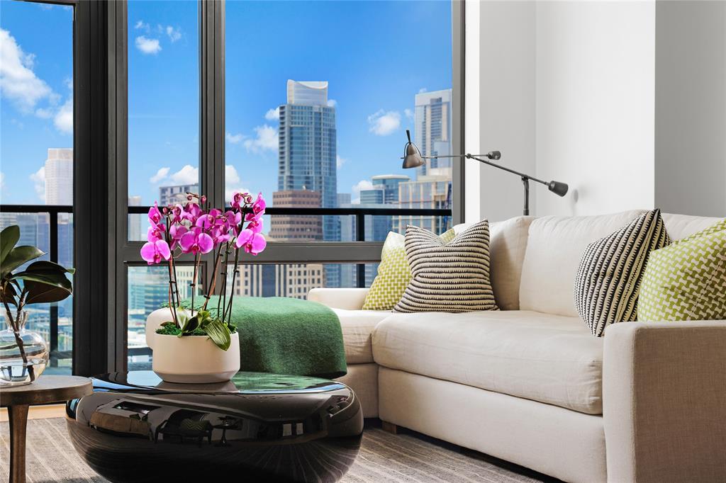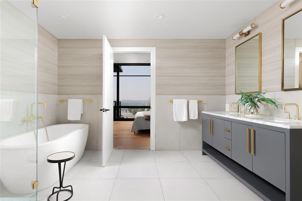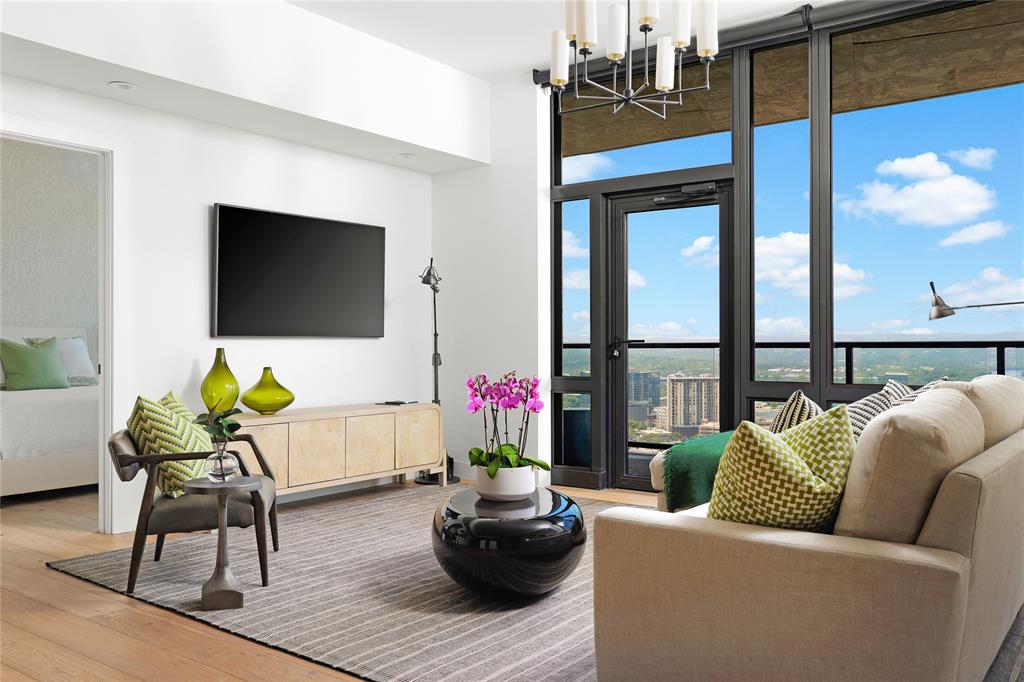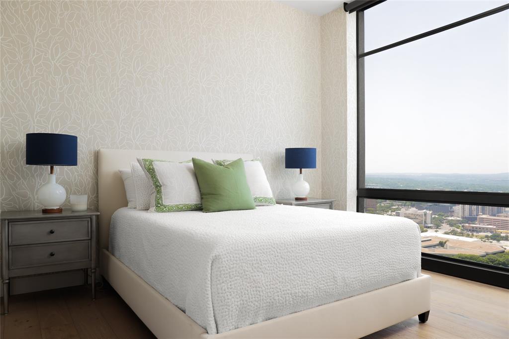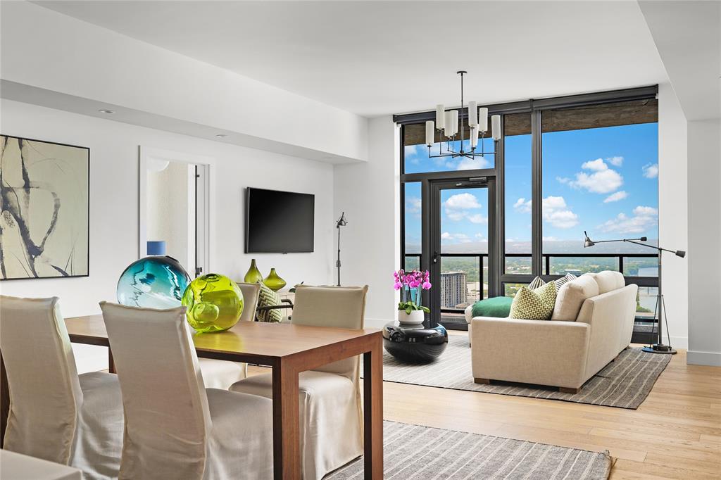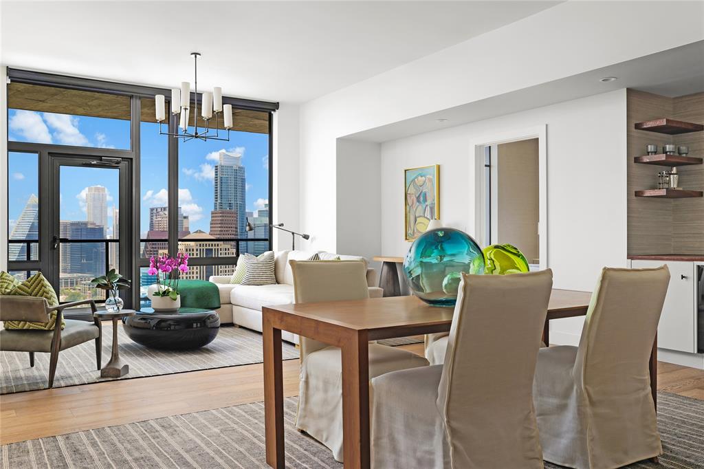 Step into a world of sophistication and unparalleled views with this exceptional 3-bedroom, 3-bathroom residence in downtown Austin. Located in a sought-after luxury building, this strikingly appointed residence at 70 Rainey showcases fine finishes and custom details throughout. Upon entry, be greeted by beautiful European wide-plank white oak flooring and floor-to-ceiling soundproof paneled windows, framing breathtaking vistas of Lady Bird Lake and the iconic skyline. The open floor plan seamlessly integrates the living, dining, and kitchen areas, providing a perfect space for entertaining. The kitchen boasts Miele appliances, quartz countertops, contemporary finishes, and a spacious center island that invites culinary exploration. Relax in the privacy of the spacious primary suite, featuring floor-to-ceiling windows overlooking the water. Indulge in the spa-like primary bathroom, complete with dual sinks, a soaking tub, a glass-enclosed shower with stunning marble tile, and an expansive walk-in closet with custom built-ins. The guest bedroom also offers an en-suite bathroom and breathtaking lake and skyline views. Additionally, a versatile den provides the perfect space for a home office, gym, or additional living area, complete with a full en-suite bathroom. This residence further boasts an in-unit utility room with built-in storage to maximize storage space. The building itself offers an impressive suite of amenities, including an infinity pool with panoramic lake views, multiple sundecks, covered outdoor dining areas with TVs and grills, lush landscaping, a dog park, and a fire pit. Indoors, you'll find lounges, dining spaces, a theater room, and a fitness center. With interior design selections by MARKZEFF, 70 Rainey offers over 31,000 sqft of indoor and outdoor amenities. Offering includes most furnishings currently in the unit. Tax and assessed values are estimates for illustration purposes only. All figures should be independently verified.