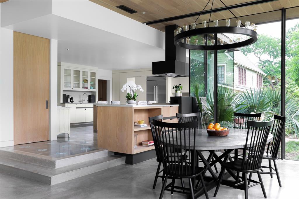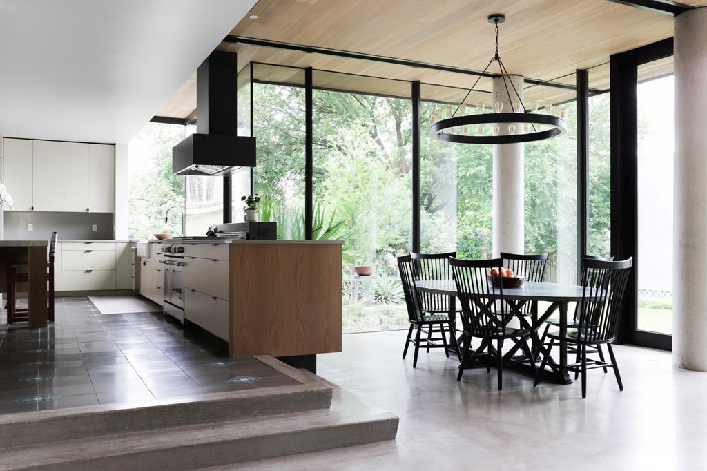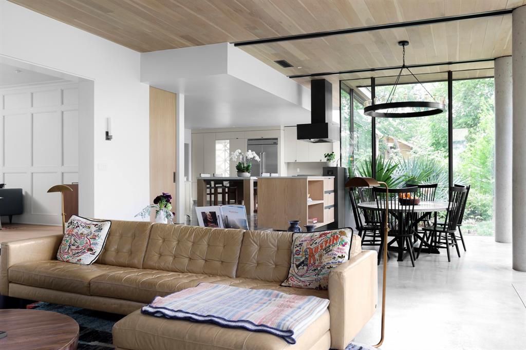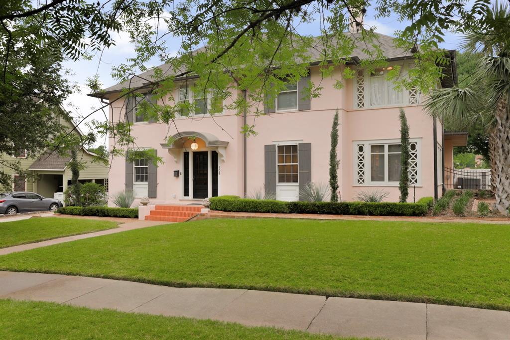 Originally built in 1932, this Colonial Revival home was reimagined by renowned architect Hugh Randolph. The home honors its roots while adding a distinctly modern perspective. The main living space at the rear of the home has expansive walls of glass that overlook the beautiful backyard, as well as concrete floors and columns that provide a contemporary aesthetic. Thoughtful wood accents create a connection with the more intimate spaces at the front of the home that feature hardwood floors, paneled walls, and beautiful wood windows. The grounds include a wonderful pool and spacious lawn in addition to a fantastic concrete casita with sliding glass wall that is perfect for entertaining. sqft per floorplan, lot size per tcad