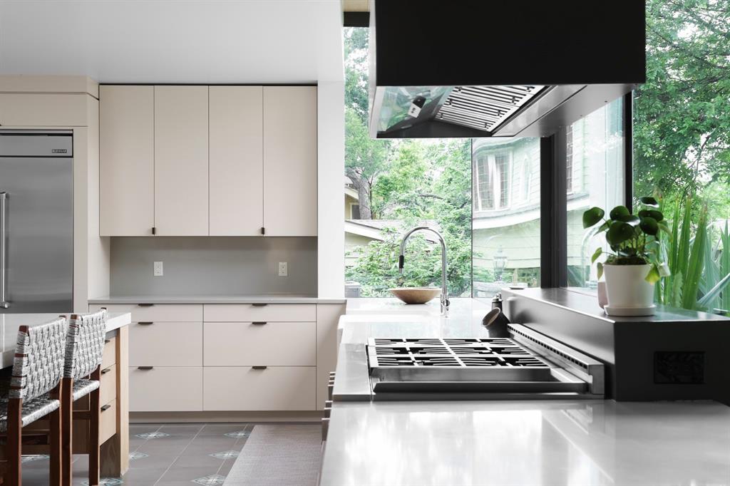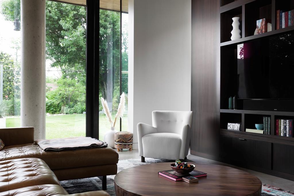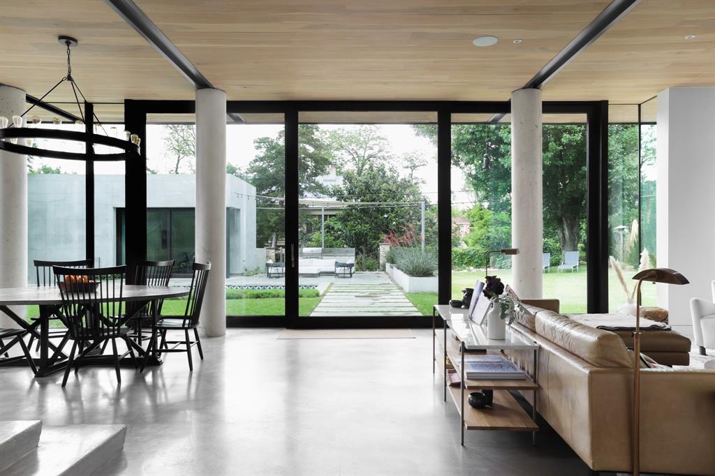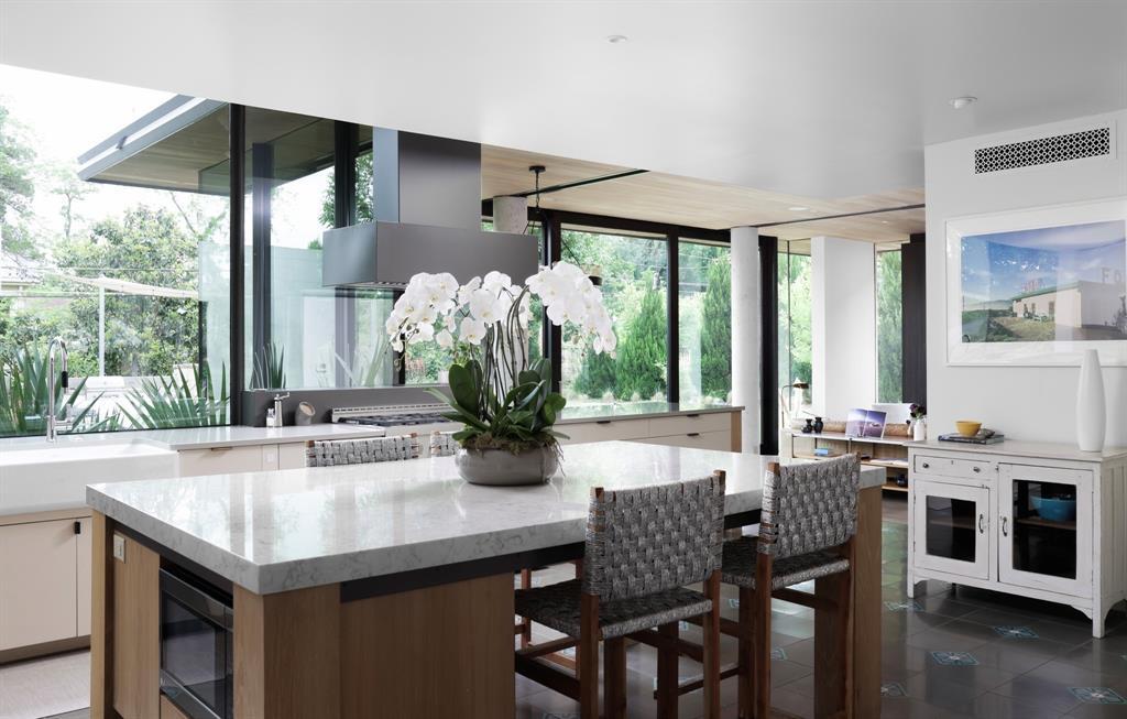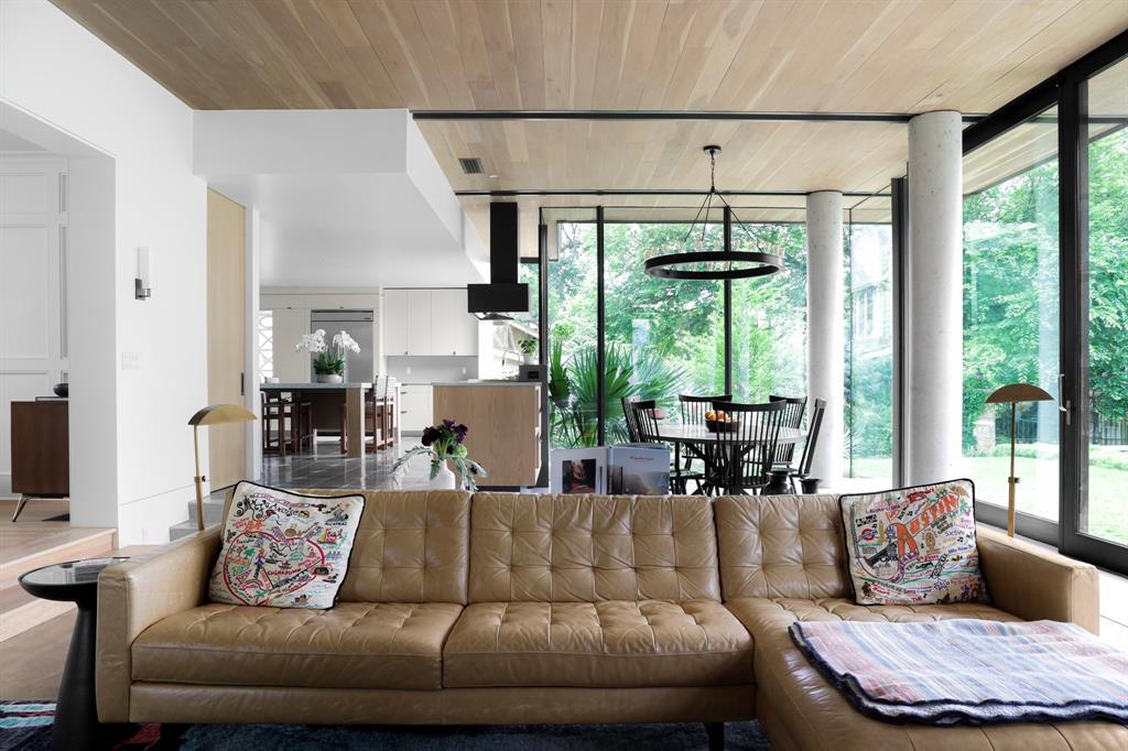 Originally built in 1932, this Colonial Revival home was reimagined by renowned architect Hugh Randolph. The home honors its roots while adding a distinctly modern perspective. The main living space at the rear of the home has expansive walls of glass that overlook the beautiful backyard, as well as concrete floors and columns that provide a contemporary aesthetic. Thoughtful wood accents create a connection with the more intimate spaces at the front of the home that feature hardwood floors, paneled walls, and beautiful wood windows. The grounds include a wonderful pool and spacious lawn in addition to a fantastic concrete casita with sliding glass wall that is perfect for entertaining. sqft per floorplan, lot size per tcad