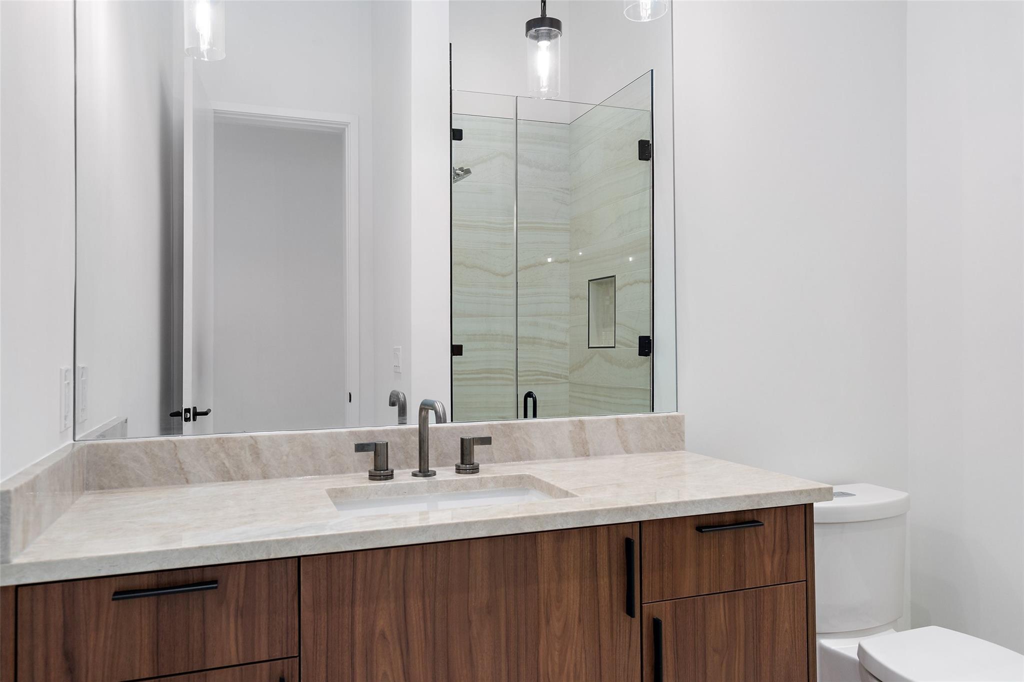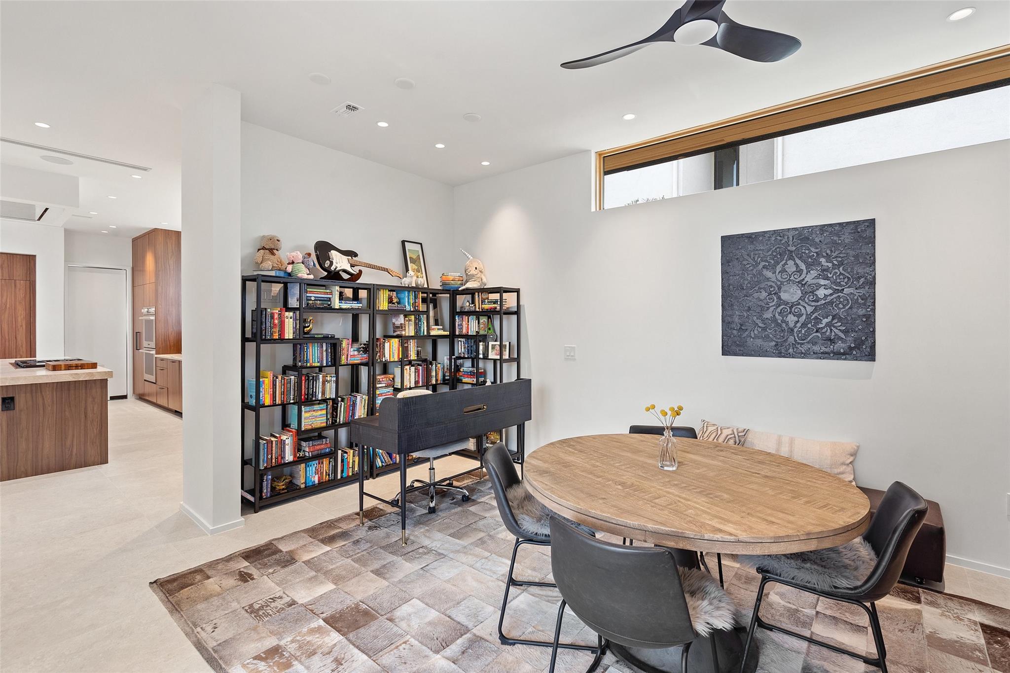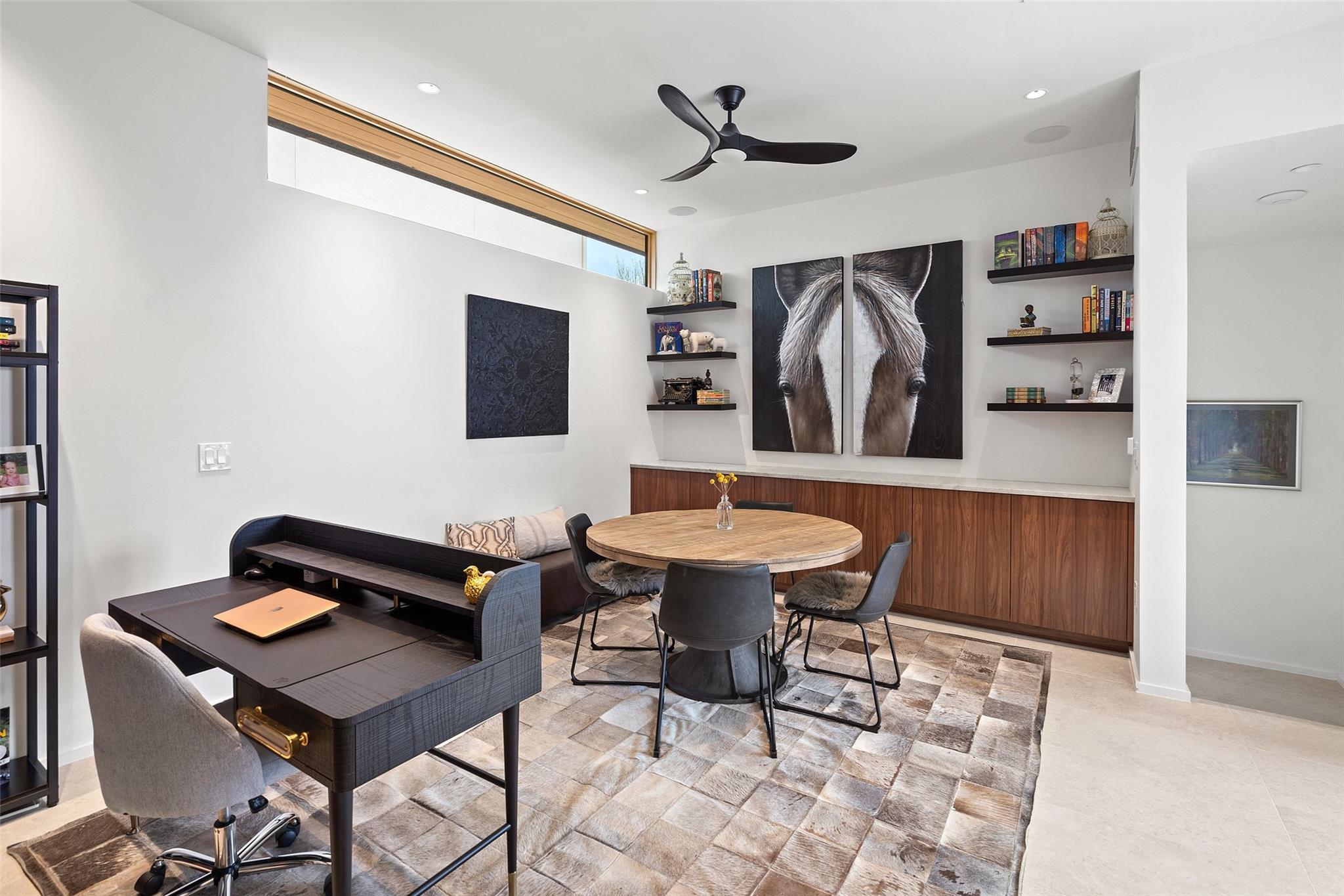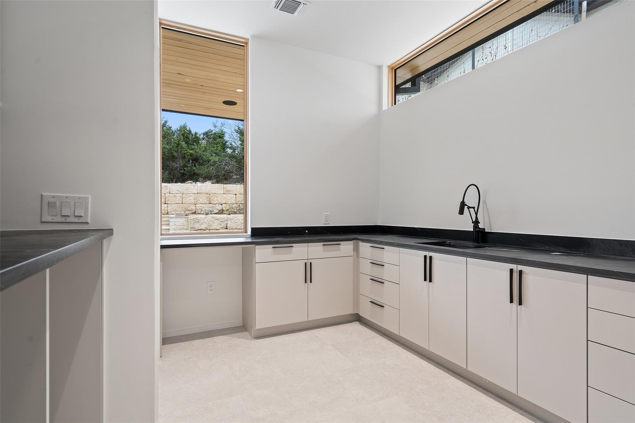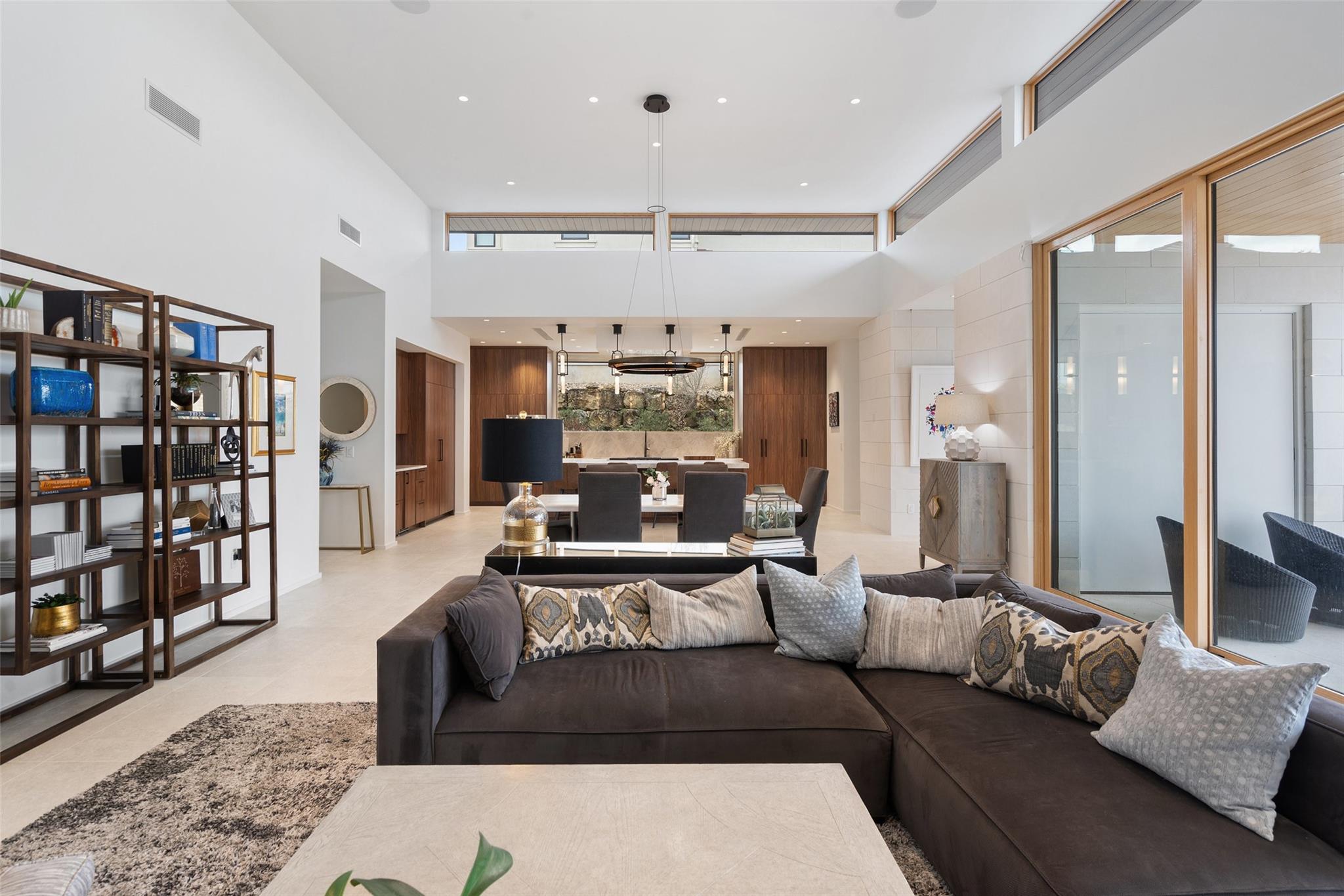 Welcome to this stunning Dick Clark + Associates home completed in 2023 and situated on a .47 acre lot in the exclusive Spanish Oaks, a highly sought-after guard gated community less than 20 miles from downtown Austin. This exquisite home features 5 bedrooms, each with its private bathroom, providing ample space and comfort for family and guests alike. The primary suite features glass sliders to the patio, a fireplace, a free-standing sauna, and an enviable closet with washer/dryer connections. In addition to the owner's suite, there is a full bed and bath, an office or library, a walk-through pantry, a laundry room, and a powder room on the main level. The floating wood and steel staircase leads you to three additional bedrooms with ensuite baths and a secondary living area. The thoughtfully designed indoor and outdoor living areas create an effortless flow for entertaining large and intimate groups. A Glass overhead door opens from the backyard to the garage for an extended all-weather play area, game room, or home gym. With an open gourmet kitchen featuring Signature appliances wrapped in custom cabinetry, Taj Mahal countertops, and an expansive island, this kitchen is the heart of the home! A full outdoor kitchen is adjacent to the inviting swimming pool and hot tub. With over $100,000 in recent upgrades, this move-in-ready home has everything the discerning buyer craves. Enjoy your private sanctuary on Pecan Chase and the resort-style amenities of Spanish Oaks.