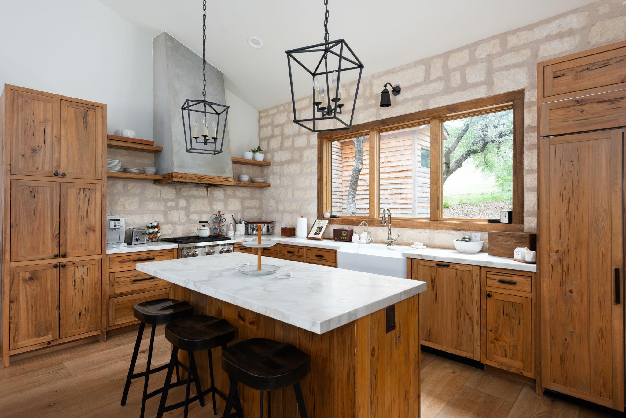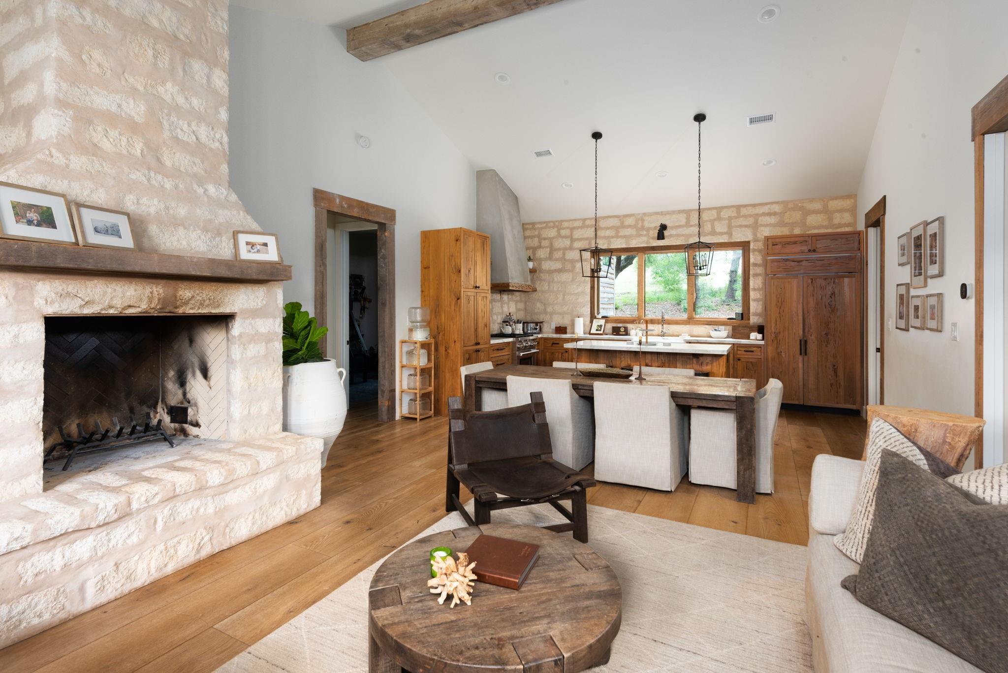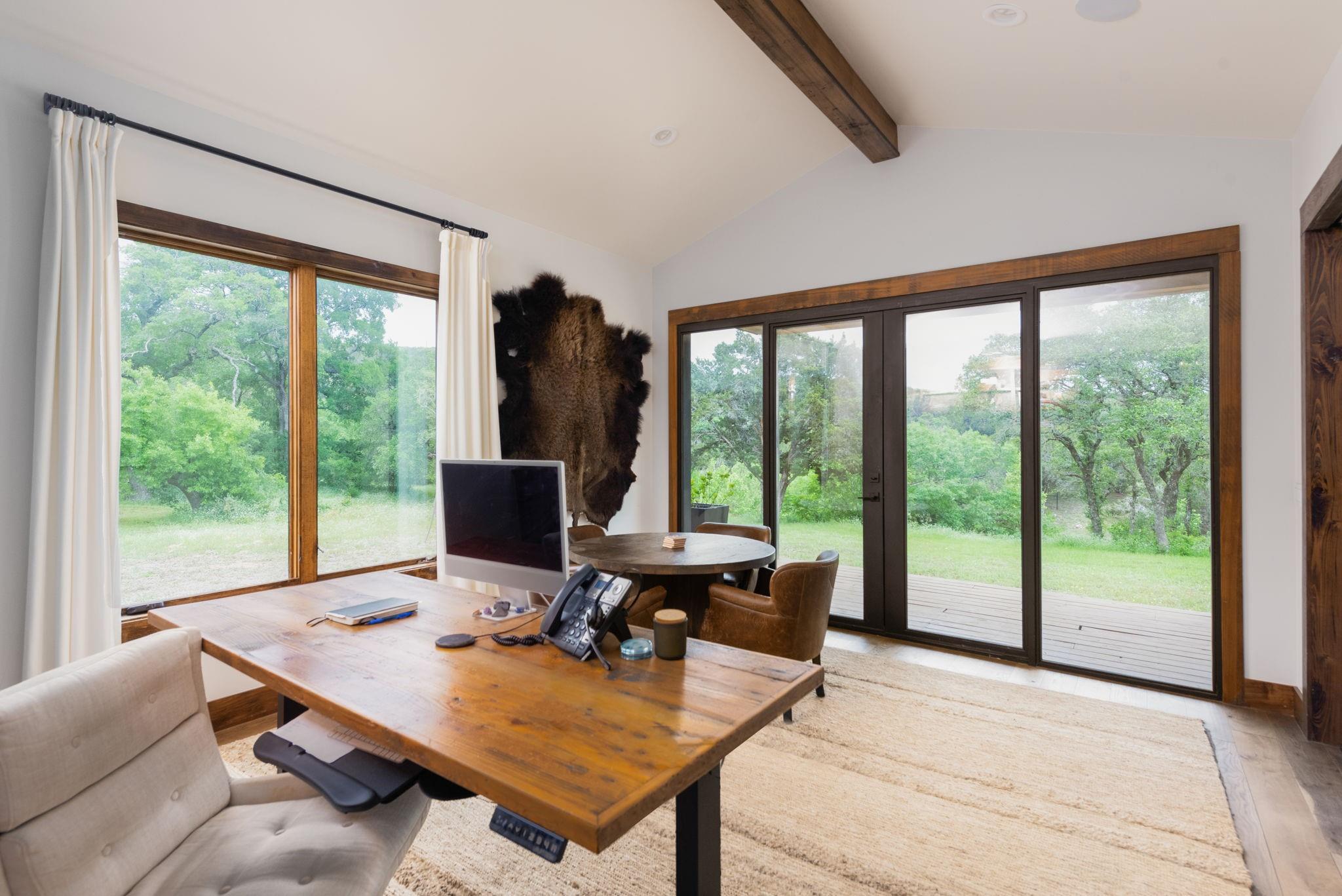 New build on a 32+ Acre Unrestricted Ranch along Spring Fed Deadman's Creek in Dripping Springs. A Spring Fed Creek, a large swimming hole, luscious grotto w/manicured walking trails throughout surrounded by limestone rock walls from the 1800's. Property has lots to offer, including vista views, beautiful bottom portion with mature oaks, large green pasture, a year around creek with limestone bluffs. Fully fenced. 4 Custom Structures built in 2022 by builder Mattison Reynolds w/Live Edge Cypress Wood and Board & Batten Siding include: *3/2 Guest Cottage (1400 sf) with metal roof, high-end appliances, pecky cypress custom cabinetry, white Calcutta marble countertops, wide plank wood flooring throughout, limestone walls and fireplace, rustic reclaimed wood beams, high ceilings, expansive covered porch with two Big Ass Fans & limestone steps. *Studio Casita (450 sf) with metal roof, cypress wood walls, kitchenette with concrete countertops, full shower & laundry. *Office/Gym Barn (1456 sf) with metal roof, two offices, spacious gym and large porch. Vaulted 22ft Gym Ceiling with reclaimed beams, Large Big Ass Fan, Steel Garage Door, High-End Bathroom Finishes, kitchenette with Miele Coffee System, Ice Maker & Stainless Steel Fridge. Two offices with wood custom cabinetry & shelves, limestone countertops and wood flooring. *RV Barn with Attached Outdoor Pavilion & Fireplace (1500 sf) wrapped in limestone from the property and metal roof. RV Barn has space for two full size RV's and storage above. Well and septic on property. Metal roofs set up for rainwater collection. Perfect spot to build your custom home in between and have a complete family compound or great investment opportunity to build a retreat center, wedding venue, & more. Hawk Shadow winery located at the top of the hill. Additional build sites located in the upper portion w/endless vista views. Wildlife exempt for low taxes. Owner/Agent. https://www.575norwoodroad.com https://vimeo.com/944890402