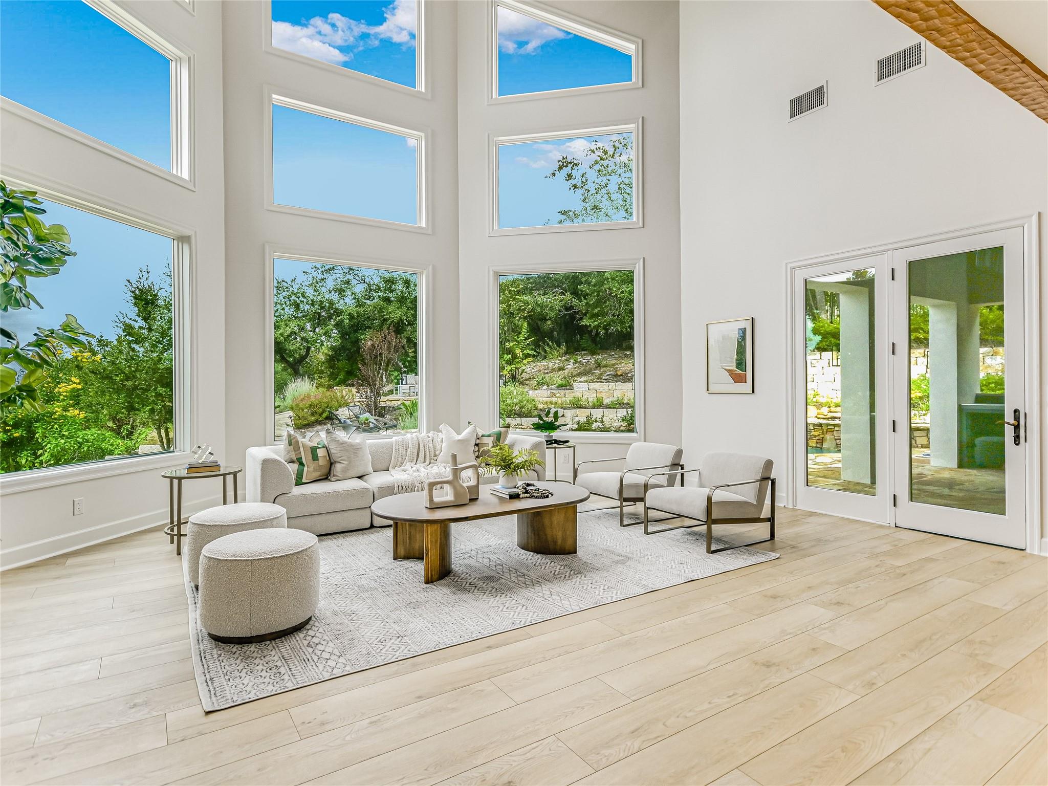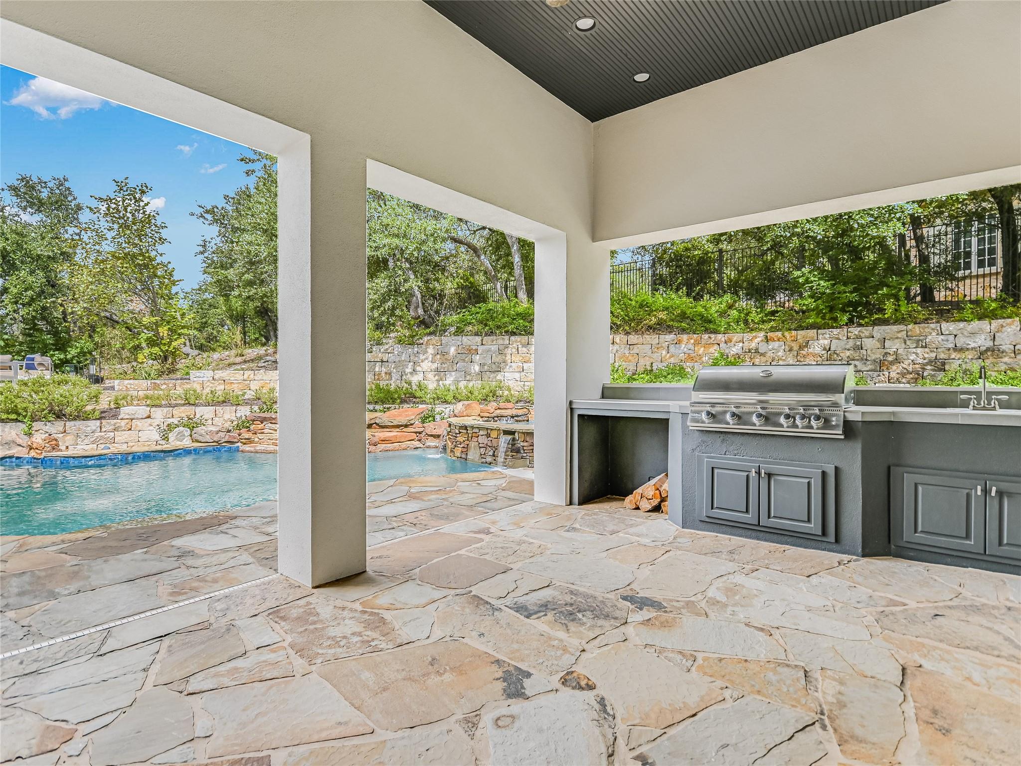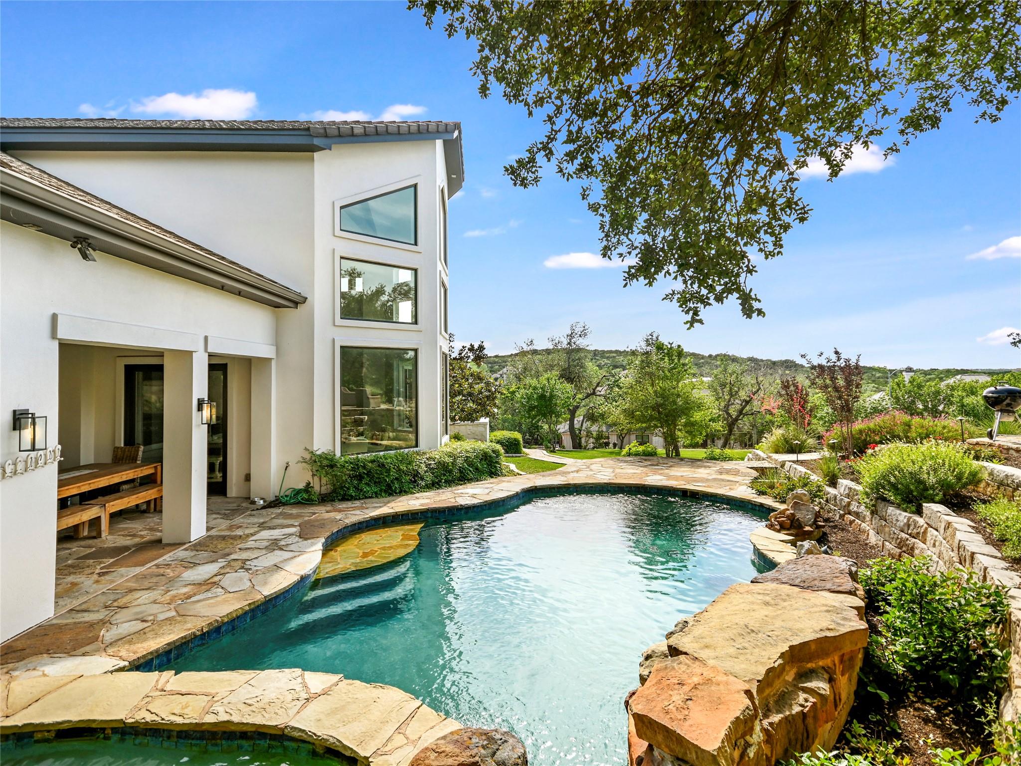 This exquisite residence has been thoughtfully remodeled with no detail overlooked. Blending contemporary design with comfortable living. The recent remodel includes all new exterior features that gives the home a fresh and modern look. The landscaping has been updated and carefully curated to create an inviting and serene outdoor space. Offering four bedrooms and five bathrooms, this home is perfect for a family or those who enjoy hosting guests. The kitchen has been completely renovated with a expectational modern touch. The large backyard boasts a sparkling pool and a cozy fireplace, providing the perfect ambiance for entertaining or enjoying Austin's temperate climate. The covered patio is perfect for outdoor dining or simply relaxing with a good book. Floor-to-ceiling windows allow for abundant natural light and offer stunning views of the picturesque surroundings. Don't miss this opportunity to make this luxurious home yours and experience the best of Austin living.