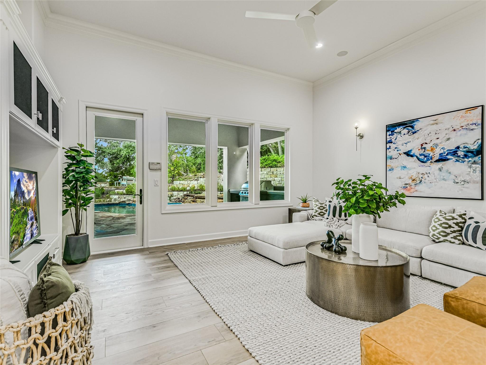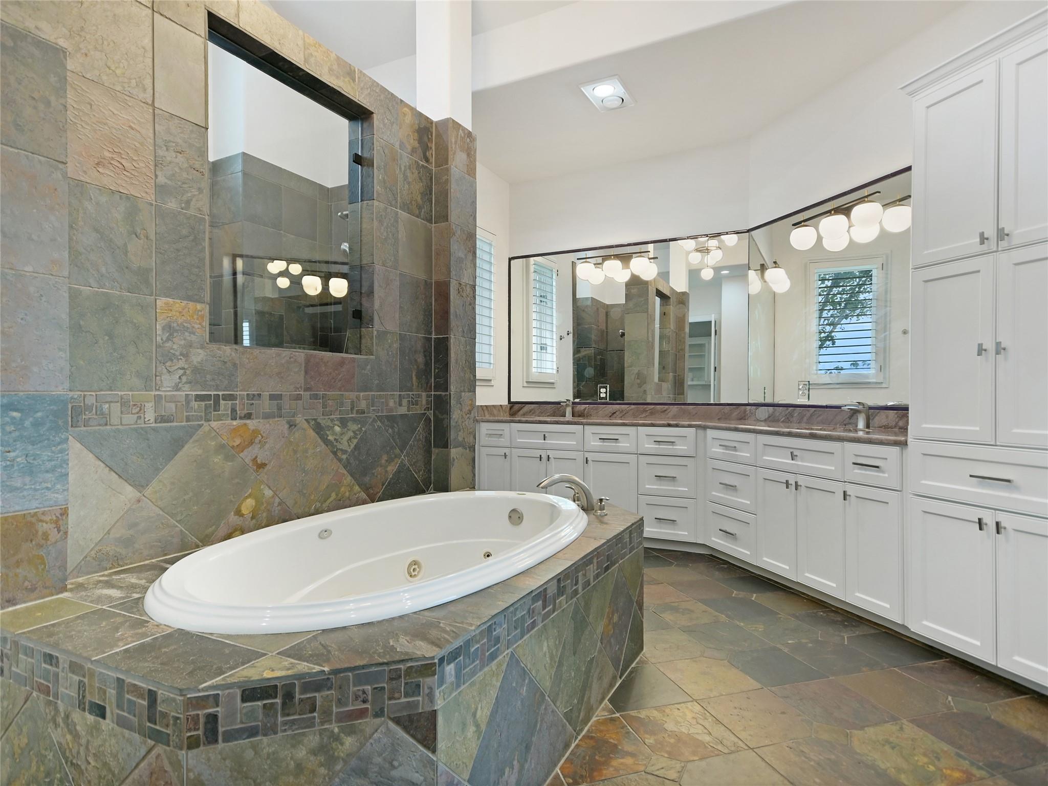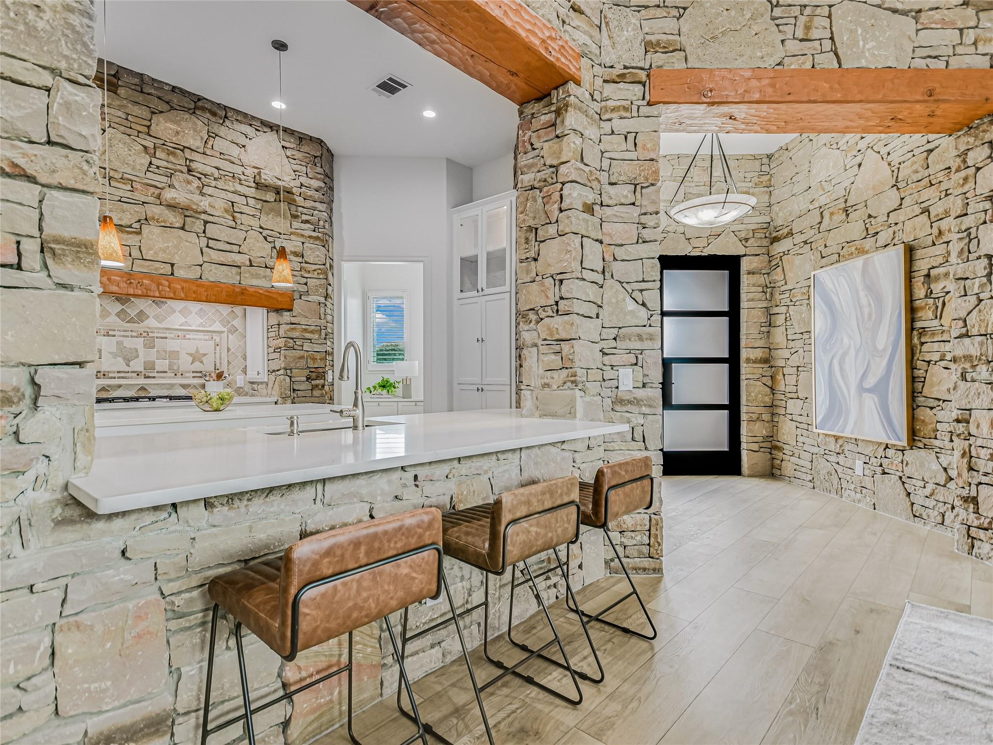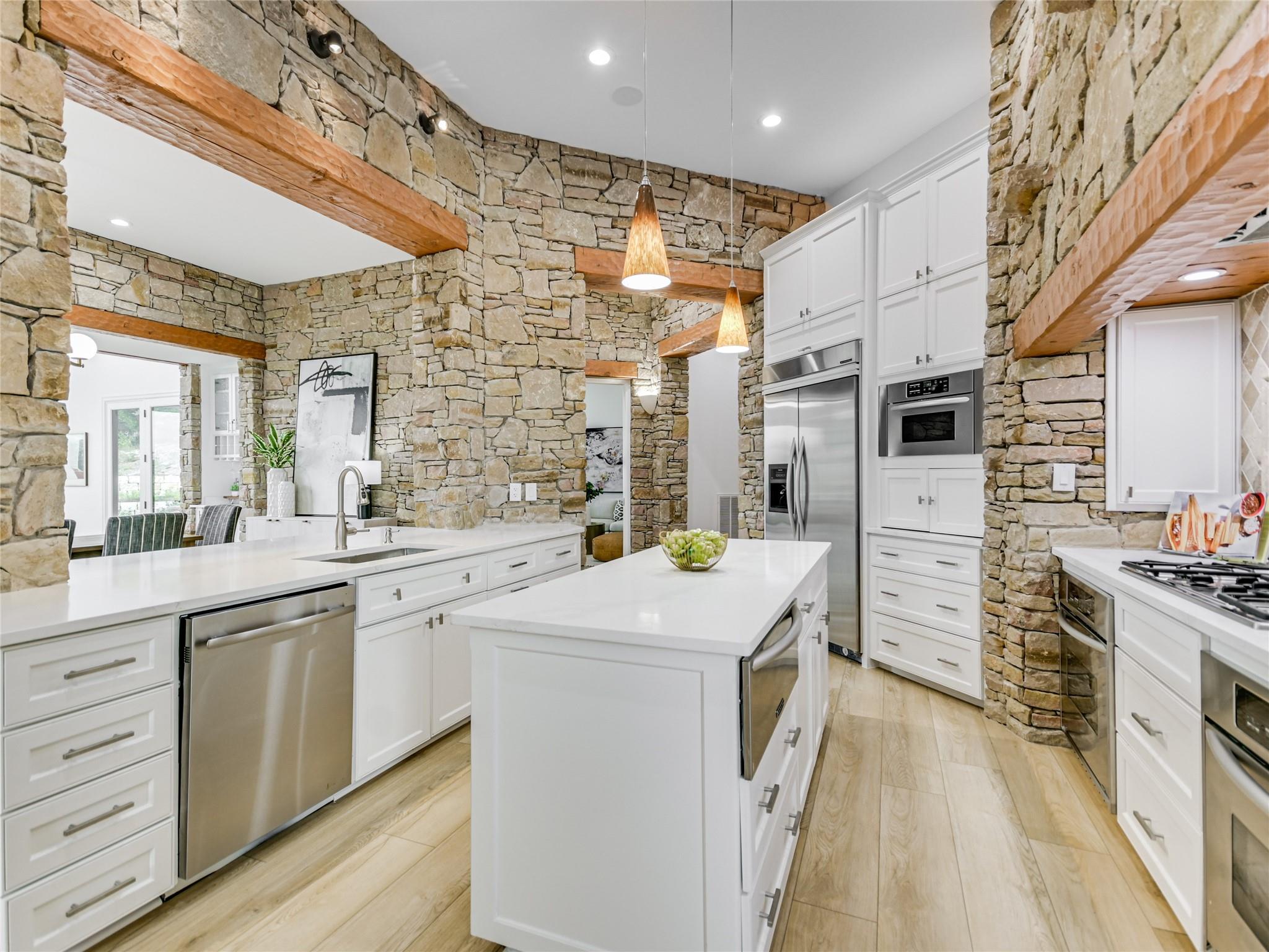 This exquisite residence has been thoughtfully remodeled with no detail overlooked. Blending contemporary design with comfortable living. The recent remodel includes all new exterior features that gives the home a fresh and modern look. The landscaping has been updated and carefully curated to create an inviting and serene outdoor space. Offering four bedrooms and five bathrooms, this home is perfect for a family or those who enjoy hosting guests. The kitchen has been completely renovated with a expectational modern touch. The large backyard boasts a sparkling pool and a cozy fireplace, providing the perfect ambiance for entertaining or enjoying Austin's temperate climate. The covered patio is perfect for outdoor dining or simply relaxing with a good book. Floor-to-ceiling windows allow for abundant natural light and offer stunning views of the picturesque surroundings. Don't miss this opportunity to make this luxurious home yours and experience the best of Austin living.