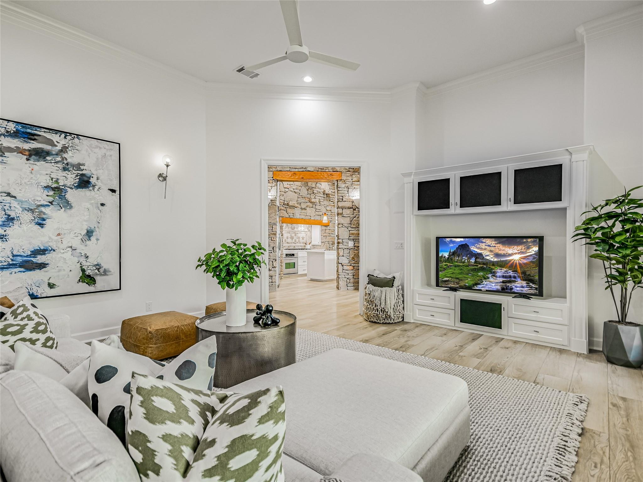 | Interior Features | Bookcases, Built-in Features, Vaulted Ceiling(s), Quartz Counters, In-Law Floorplan, Multiple Living Areas, Primary Bedroom on Main, Recessed Lighting, Walk-In Closet(s), Wet Bar, Wired for Sound | |