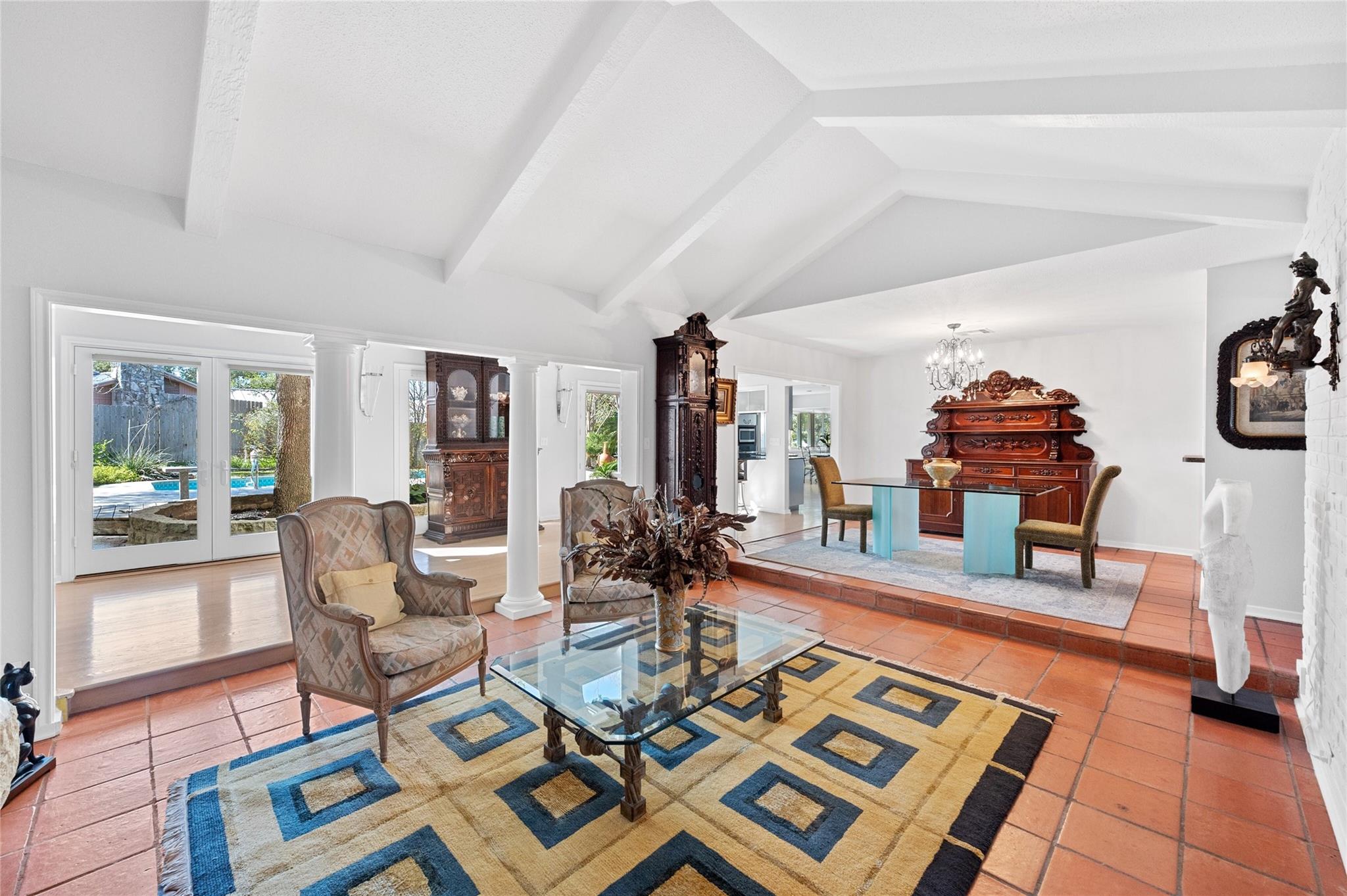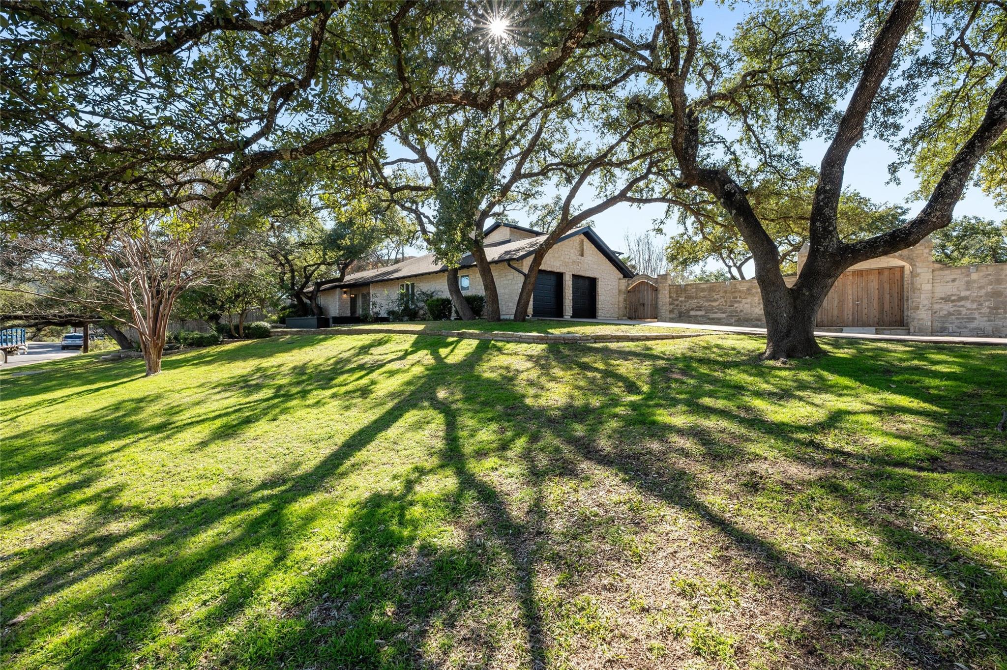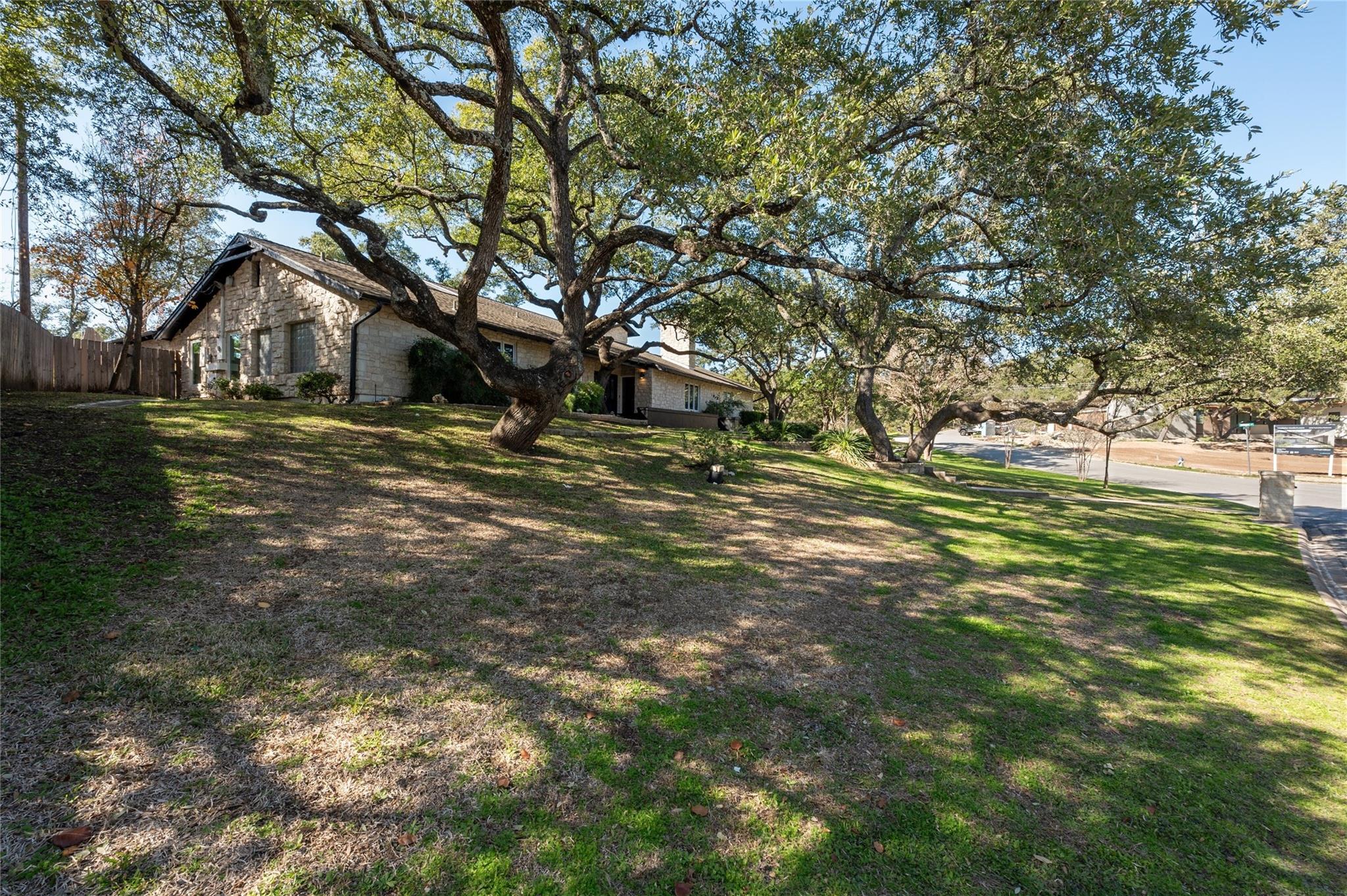 PRICE ADJUSTMENT! Get into highly regarded Eanes School District before the new school year! This warm and inviting home in WESTLAKE HIGHLANDS is waiting for you to put your touch on. Upstairs guest suite, ideal for in-laws or teens. Large detached storage perfect for game room, business, or man-cave. This 4/BR 4/B home features a sunken living room with terra-cotta tile and high beamed ceilings, creating a bright and airy ambiance. The office overlooks the pool and gardens, with an extra flex room attached. The family room boasts a wet bar, fireplace, and terra-cotta tile, creating a cozy space for relaxation. This home is set on a large, corner lot shaded by majestic live oak trees, featuring an in-ground pool. There were new windows in the kitchen and a French door added in 2022. 2016 new insulation added in kitchen and upstairs. 2 Hot Water Heaters (upstairs and down) and 3 HVAC systems (Bedrooms, Living area, upstairs) The home is clean and well kept. A perfect opportunity for someone to get into this neighborhood under $3M. Eanes School District!