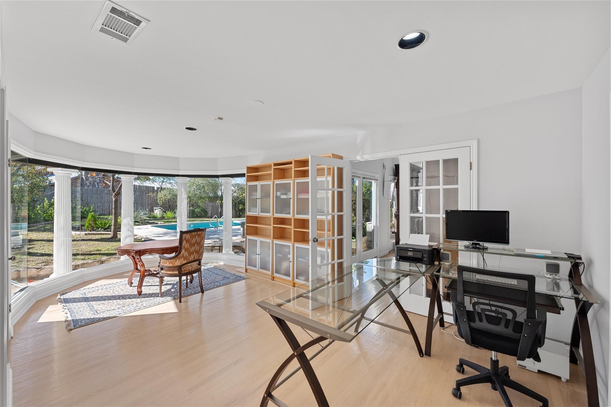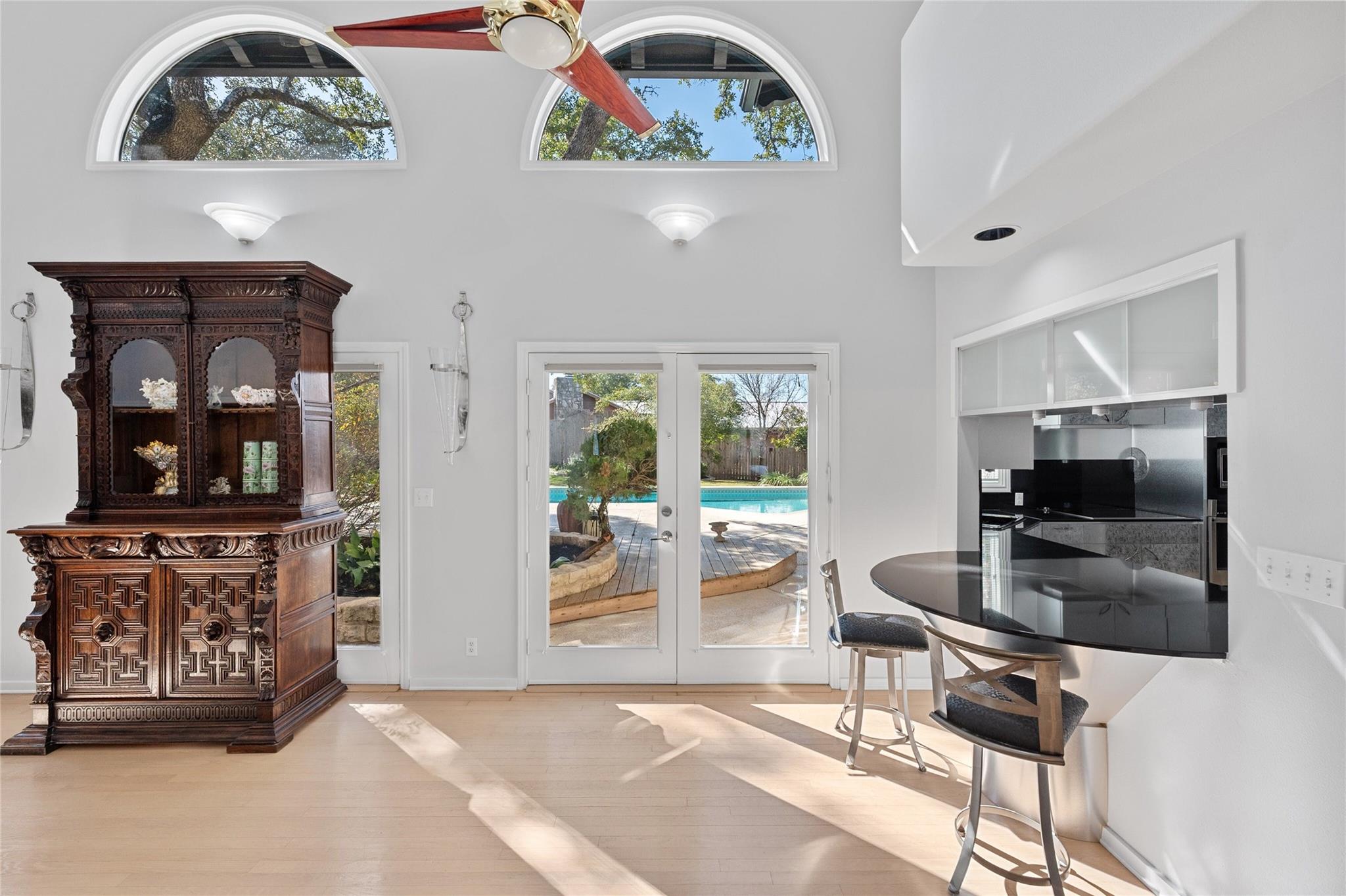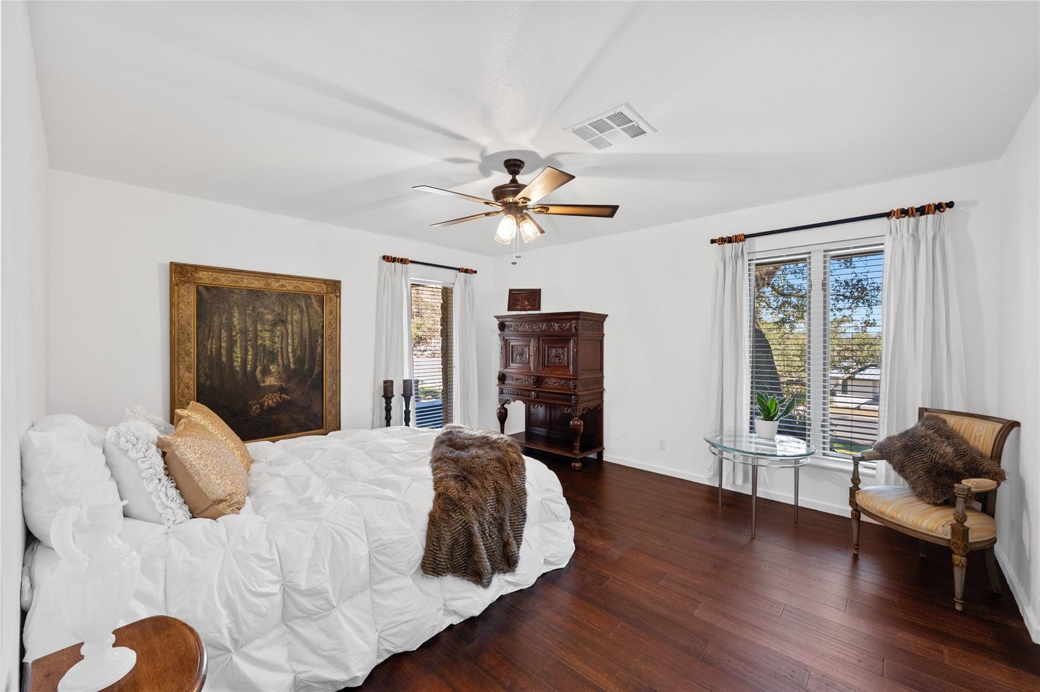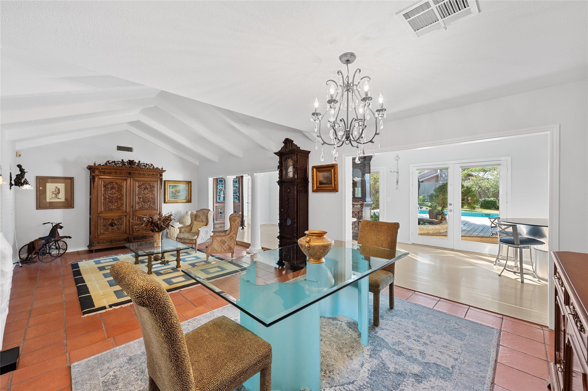 PRICE ADJUSTMENT! Get into highly regarded Eanes School District before the new school year! This warm and inviting home in WESTLAKE HIGHLANDS is waiting for you to put your touch on. Upstairs guest suite, ideal for in-laws or teens. Large detached storage perfect for game room, business, or man-cave. This 4/BR 4/B home features a sunken living room with terra-cotta tile and high beamed ceilings, creating a bright and airy ambiance. The office overlooks the pool and gardens, with an extra flex room attached. The family room boasts a wet bar, fireplace, and terra-cotta tile, creating a cozy space for relaxation. This home is set on a large, corner lot shaded by majestic live oak trees, featuring an in-ground pool. There were new windows in the kitchen and a French door added in 2022. 2016 new insulation added in kitchen and upstairs. 2 Hot Water Heaters (upstairs and down) and 3 HVAC systems (Bedrooms, Living area, upstairs) The home is clean and well kept. A perfect opportunity for someone to get into this neighborhood under $3M. Eanes School District!