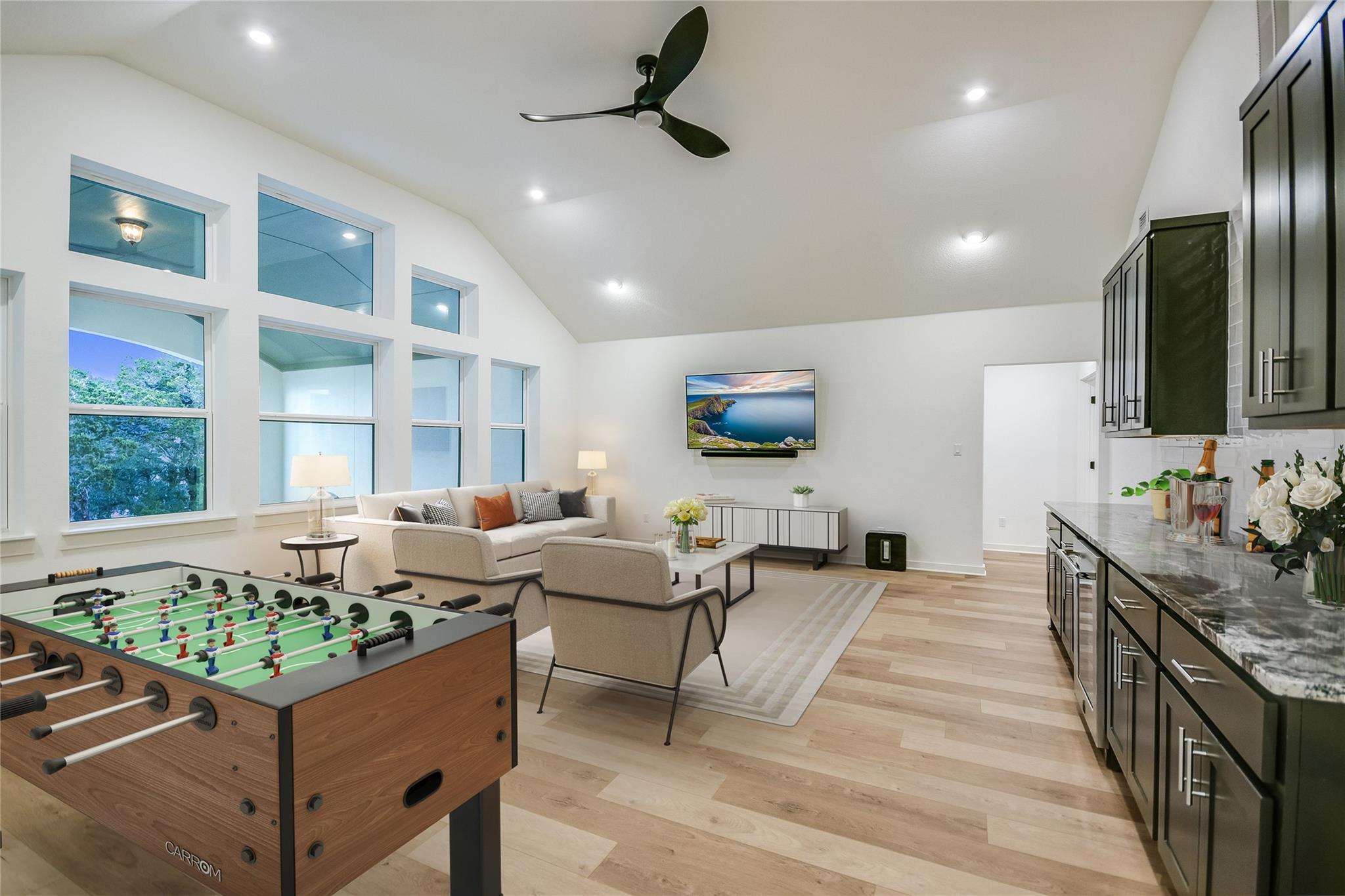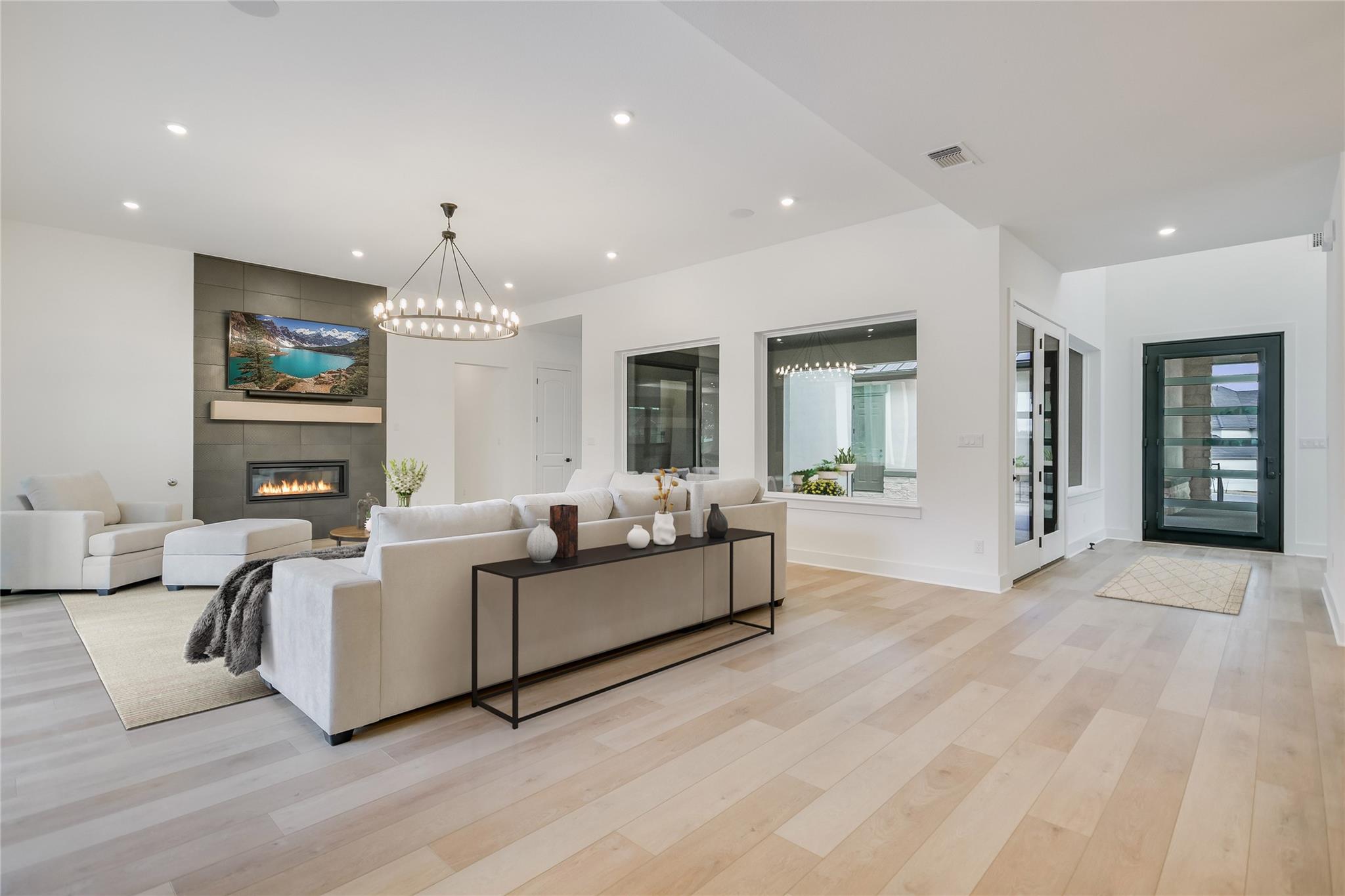 This newly constructed haven is easy to call home with a rate buydown option to 4.675%. At nearly 5000 SF on a private, wooded acre, there’s space for everyone to call theirs. The grand, mature trees speckled throughout the acre of this magnificent home makes a statement on their own. Highly customized with premium finishes. Exceptional floorplan with primary suite, office and guest suite on the main level. Oversized secondary bedrooms each with full baths, game room and multi-level theater on upper level. Extensive outdoor living and entertainment spaces including a spacious entry courtyard and expansive covered patio with outdoor kitchen. Comes well appointed with a gorgeous pool, select furniture, movie room projector and screen, video surveillance security system, smart home climate control features, whole house audio system with speakers, and all appliances including washer & dryer. Located in a private, boutique community in Austin’s hill country, the wedding capital of Texas known for its plethora of wedding venues, near renowned golf courses, wineries and distilleries, natural pools, and hiking/biking trails, yet close to all daily living conveniences, 25 minutes to downtown Austin, and 25 minutes to the water’s edge of Lake Travis or Lake Austin. Exceptional options of highly rated public schools in Austin ISD as well as top ranked private schools nearby. *select photos virtually staged