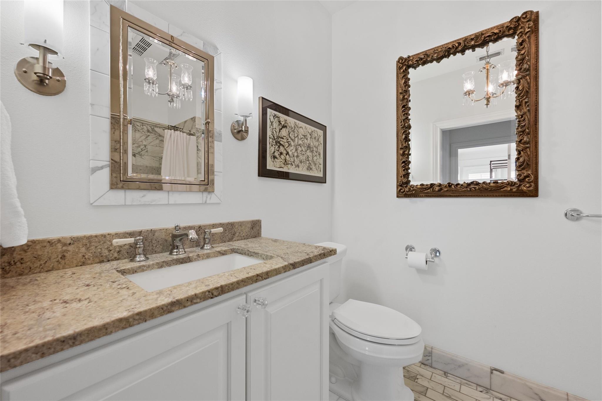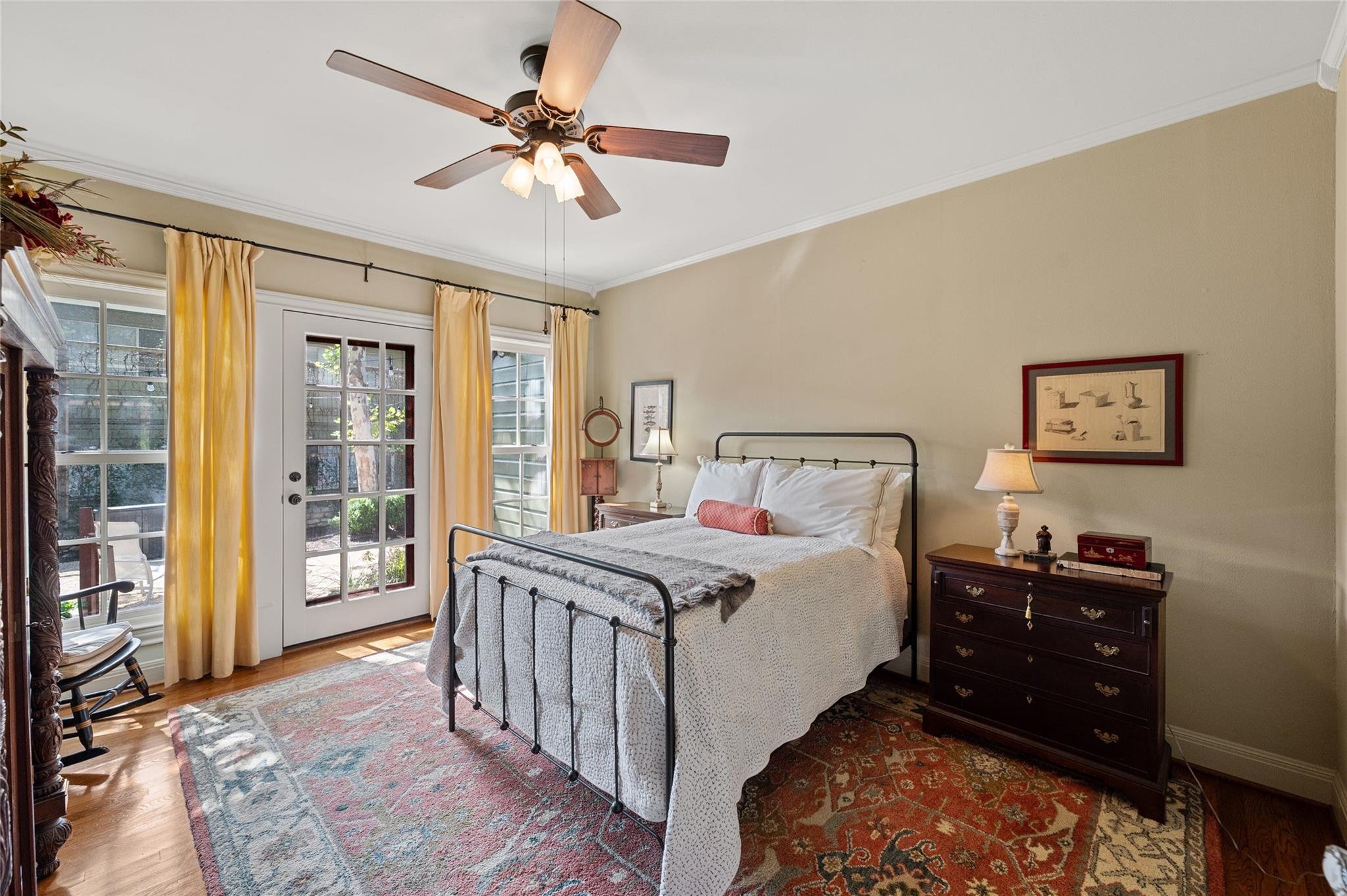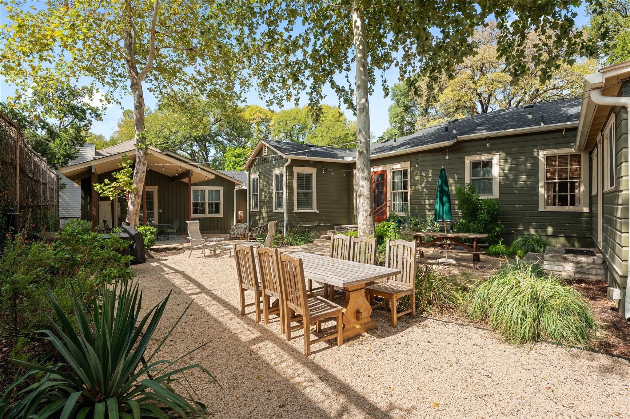 On a spacious .4798-acre corner lot at 1516 Forest Trail in Tarrytown, this property features a stone wall, complemented by mature landscaping and inviting shade trees that enhance its curb appeal. The main house has been updated and remodeled while preserving its original features, including hardwood floors, high ceilings, built-ins, pocket doors and generously proportioned rooms. Recent improvements ensure a seamless blend of timeless elegance and modern convenience. Within the main house there are three bedrooms and three baths, with the primary suite featuring two full baths and two walk-in closets. The bathrooms have modern, timeless finishes. Additional spaces include a dining room, den, study, office and a utility room. The kitchen, designed for multiple cooks, offers ample storage, food prep and serving areas. An island features a gas cook top, butcher block counter and a breakfast bar for casual dining. Stainless appliances and stone counters complete the kitchen. A recent addition to the property, completed in 2021, is the guest house. The guest house features an open living & dining area, one bedroom, one bath and a spacious kitchen with stainless appliances and granite counters. The bathroom has a walk-in shower and a vanity with granite countertop. The bedroom, with a walk-in closet, connects to a covered patio, providing access to the lawn and gardens. Recent improvements include, replacement and new roof shingles, gutters, exterior paint, security system, interior and exterior electrical service panels, tankless water heater, insulation and HVAC systems.The property also includes and oversized 2 car carport with a substantial storage area/workshop. Located just minutes from downtown Austin, ladyBird Lake, walking and bike paths, restaurants, shopping and entertainment. Austin ISD Schools - Casis Elementary, O'Henry Middle and Austin High.
