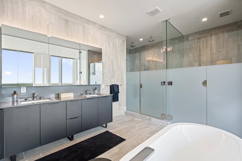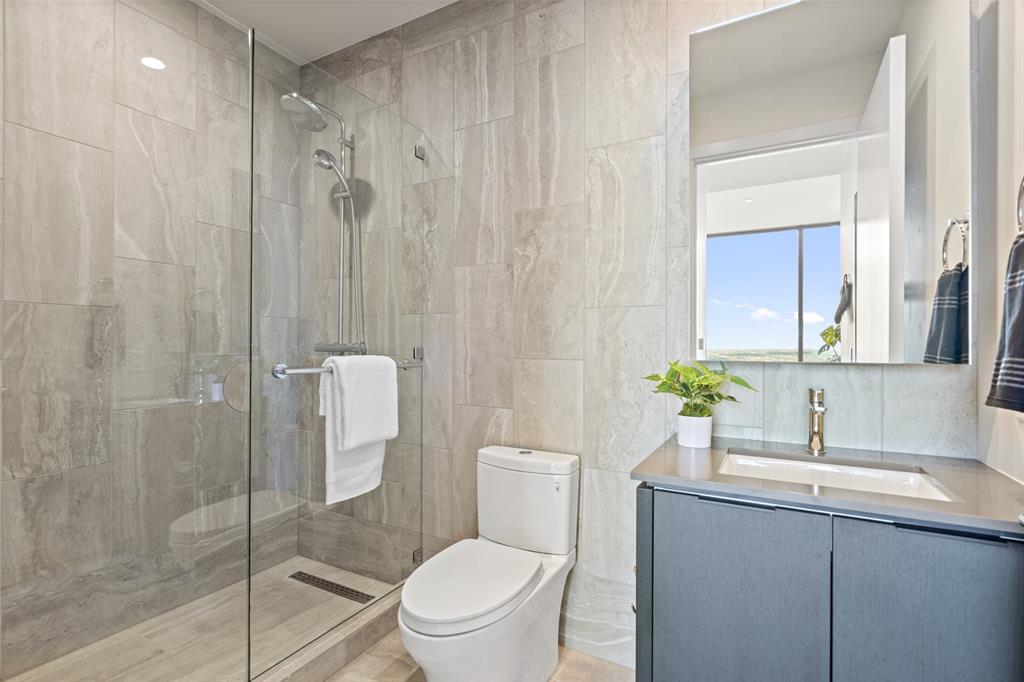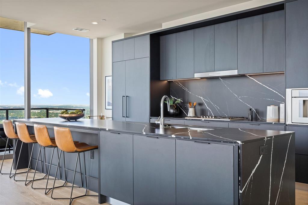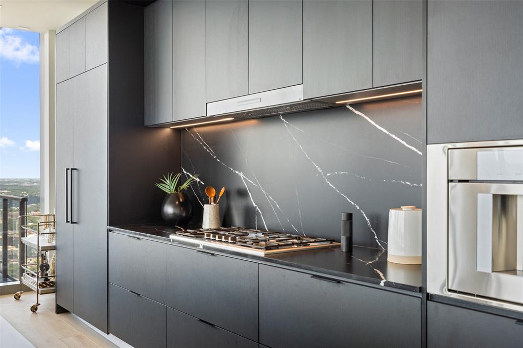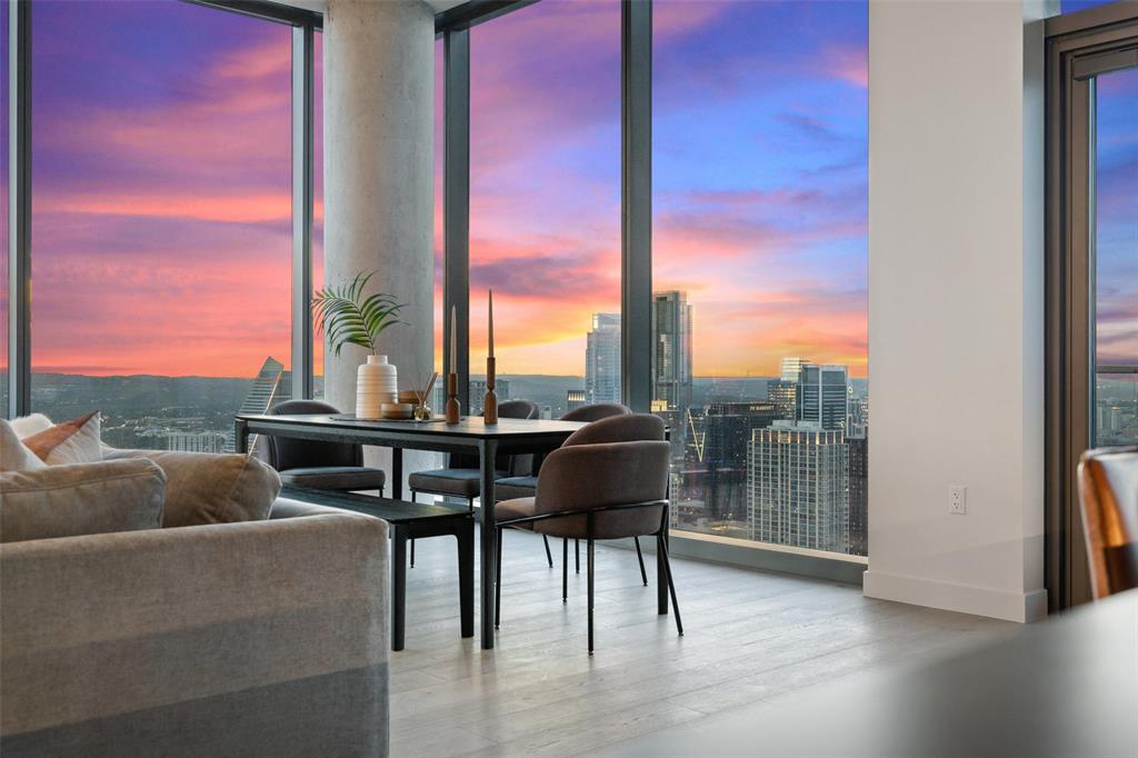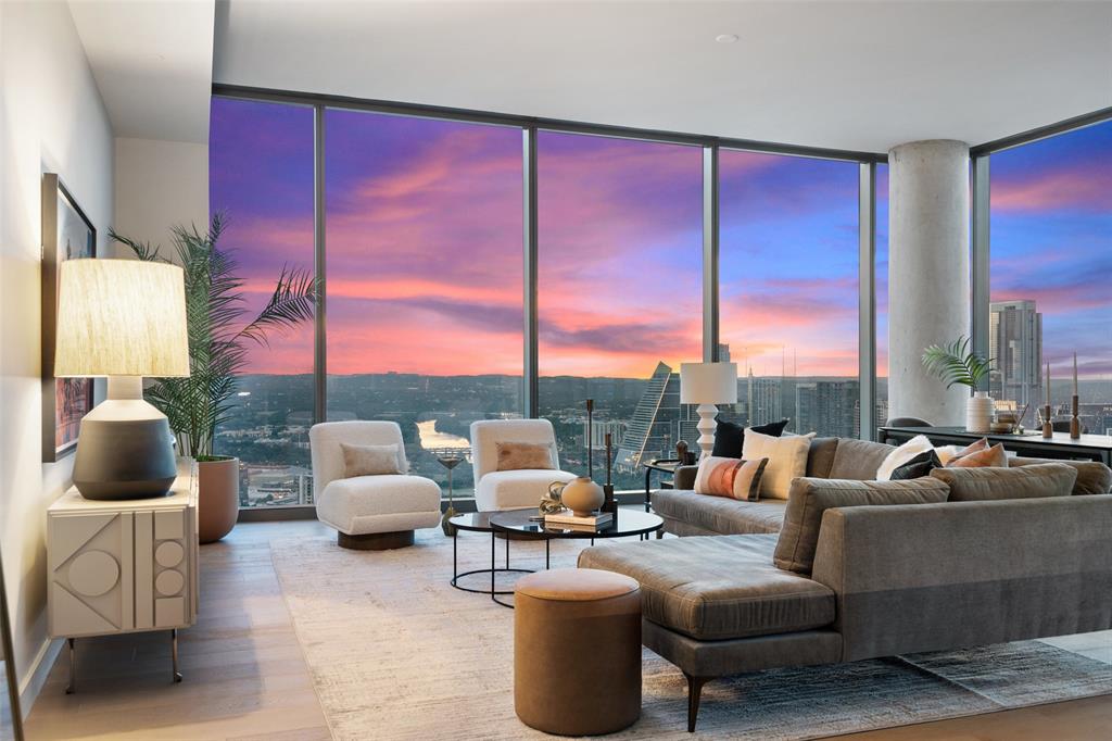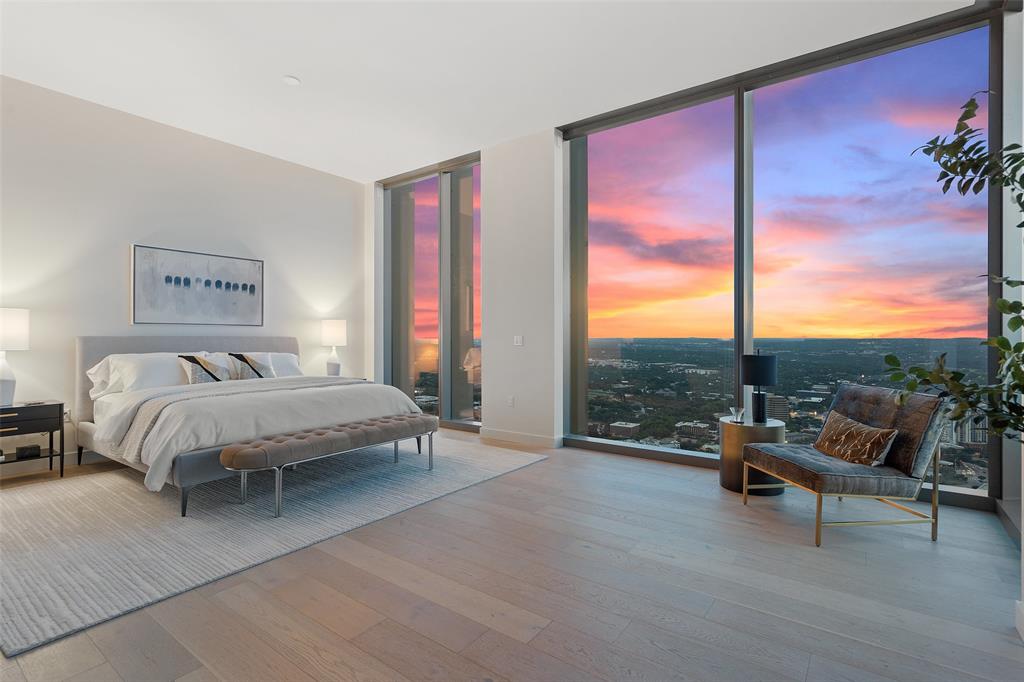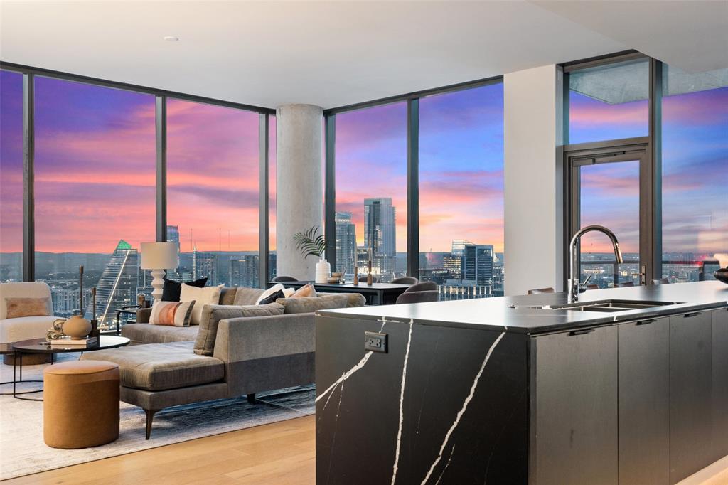Experience the pinnacle of luxury living in Downtown Austin. This 3 Bed, 3.5 Bath penthouse awaits. Situated on the Northwest corner of 44 East, floor to ceiling windows offer breathtaking panoramic views of the city. Bathed in natural light, the open concept living area features light hardwood floors that contrast perfectly with the contemporary dark Italian cabinetry & black quartz countertops & backsplash. Anchored by a waterfall island, the chef’s kitchen is equipped with Thermador appliance package including gas cooktop, built-in oven, integrated refrigerator, wine fridge & espresso machine. Perfect for entertaining, prepare a meal while guests relax in the living room or sip wine & graze on hors d'oeuvres at the island. Surrounded by wall-to-wall windows, the city skyline serves as the perfect backdrop to every soiree. Step onto the balcony to enjoy twilight views over Lady Bird Lake. Retreating to the primary suite feels like you’ve stepped into a luxurious hotel. Floor to ceiling glass separates the bedroom from the ensuite bath featuring a soaking tub, glass-framed walk-in shower & double vanity. A walk-in closet provides ample storage. Each additional bedroom features a private ensuite bath. The powder bath off the foyer is available for guests. Three parking spots are reserved for you in the secured garage. Beyond your front door, 13,000 sqft. of impressive amenities are at your fingertips. Relax by the cenote pool & outdoor lounge with grilling area. Spoil your four-legged friend at the dog park or pet lounge & spa. Work out in the fitness center & yoga studio. Conference rooms, great room with caterer’s kitchen & 37th floor sky lounge & terrace are available for business or events. Guest suites offer a private space for visitors. The concierge staff is at your service 24/7. Rainey Street offers a vibrant nightlife & award winning restaurants are a short walk away. Active outdoor enthusiasts will appreciate easy access to the Lady Bird Hike & Bike Trail.