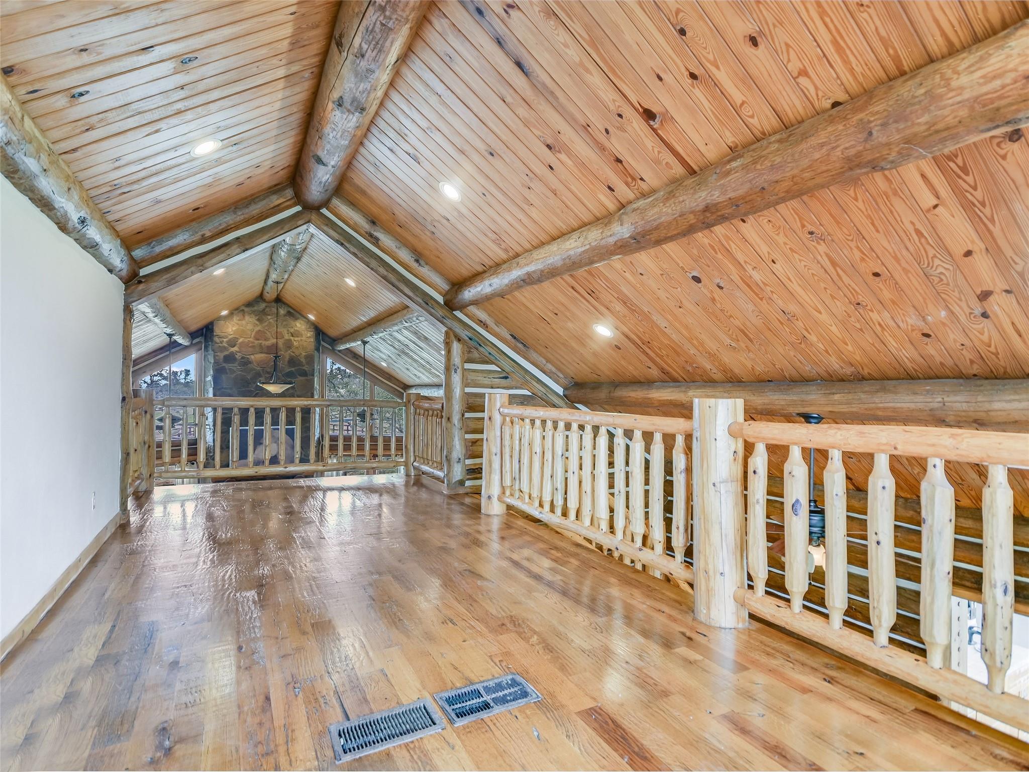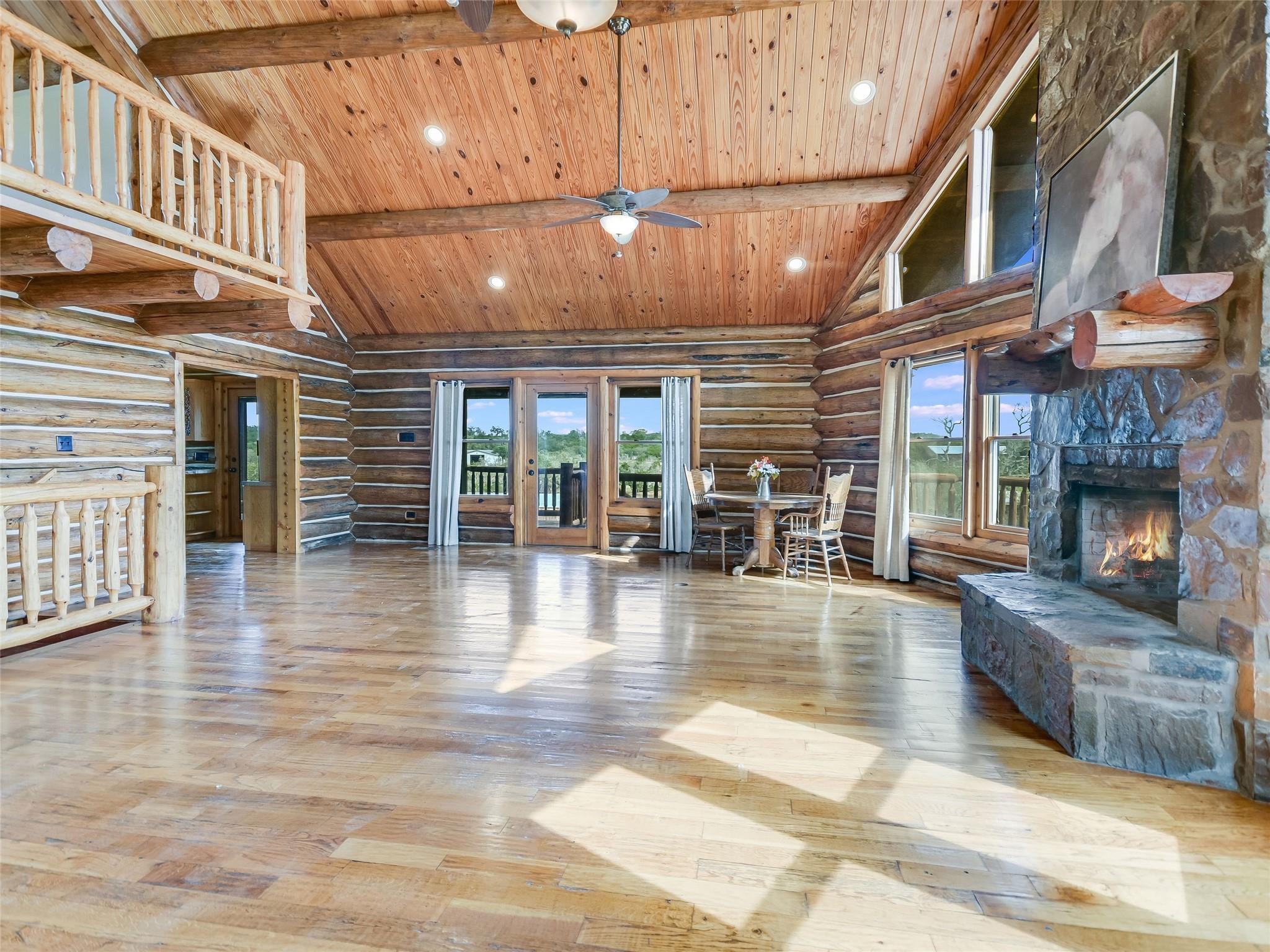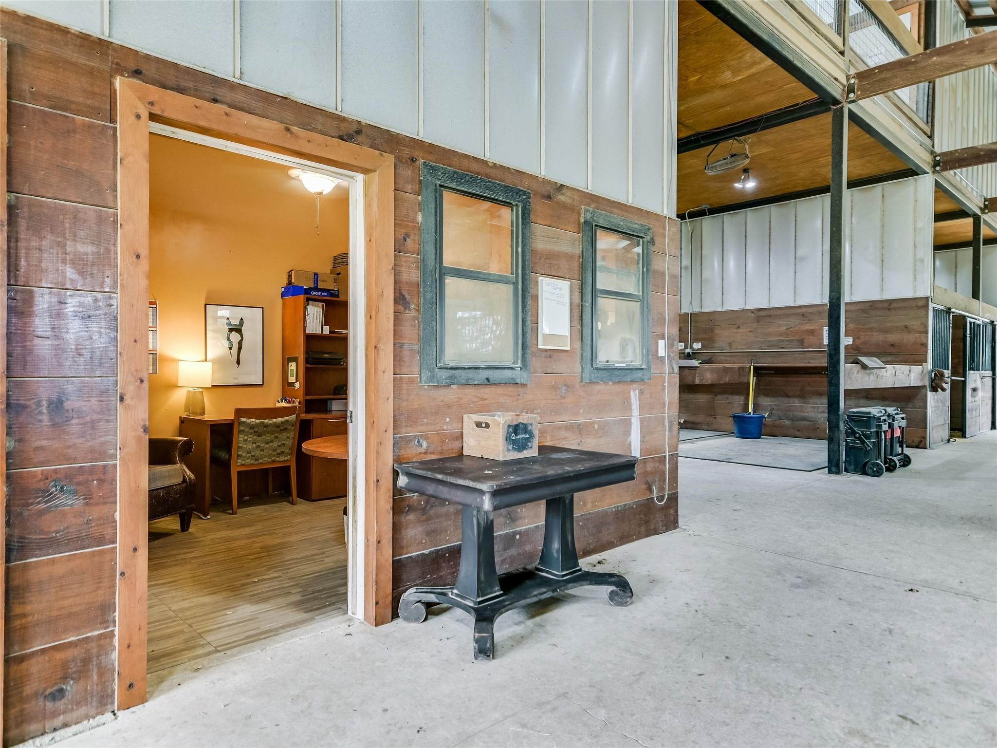 AUCTION: BID 26 JUNE–18 JULY. Listed for $3.35M. No Reserve. Starting Bids Expected Between $1M–$1.9M. Located in beautiful Texas hill country, this thoughtfully designed equestrian boarding and training facility has all the space needed for boarding and training horses and riders. Known as Querencia Stables, the property sits on 15+ acres with multiple buildings, including barns, holding pens, arenas, sheds, and a luxurious residential cabin. This expansive location includes a primary 20-stall barn with feed room, tack room, office, two upper level apartments, and a guest lounge with shiplap walls, a full bath, and coffee bar. The secondary barn has six stalls, second floor storage, and custom log construction. The large riding arena is fenced in the classic outdoor arena style. The smaller arena is a covered space. Included are 11 paddocks and a one-acre jump field. The two-story log cabin boasts exposed wood beams, stone chimney and fire-place, expansive windows and a cozy kitchen.