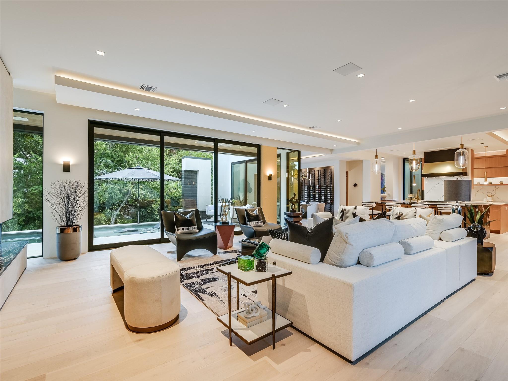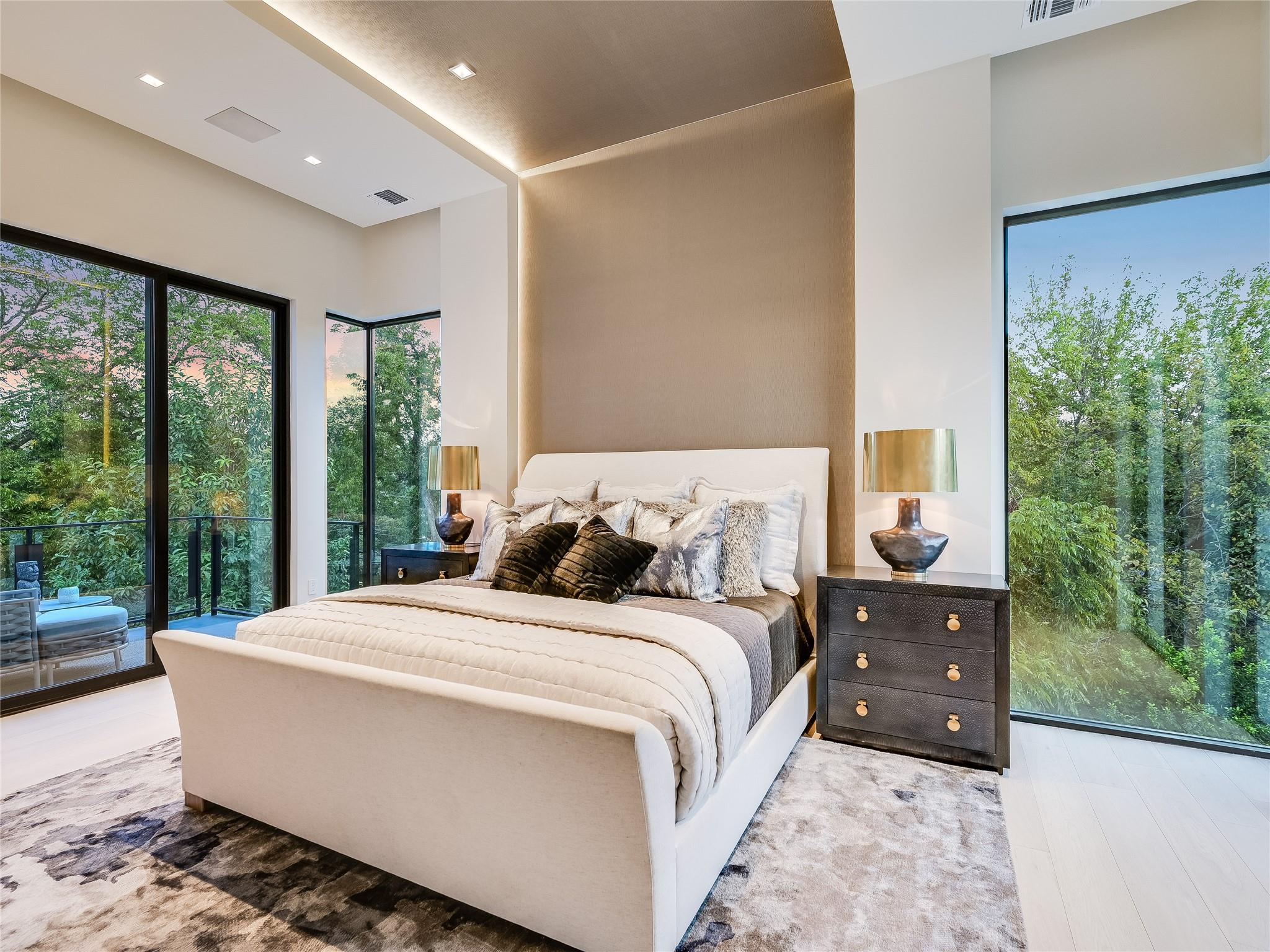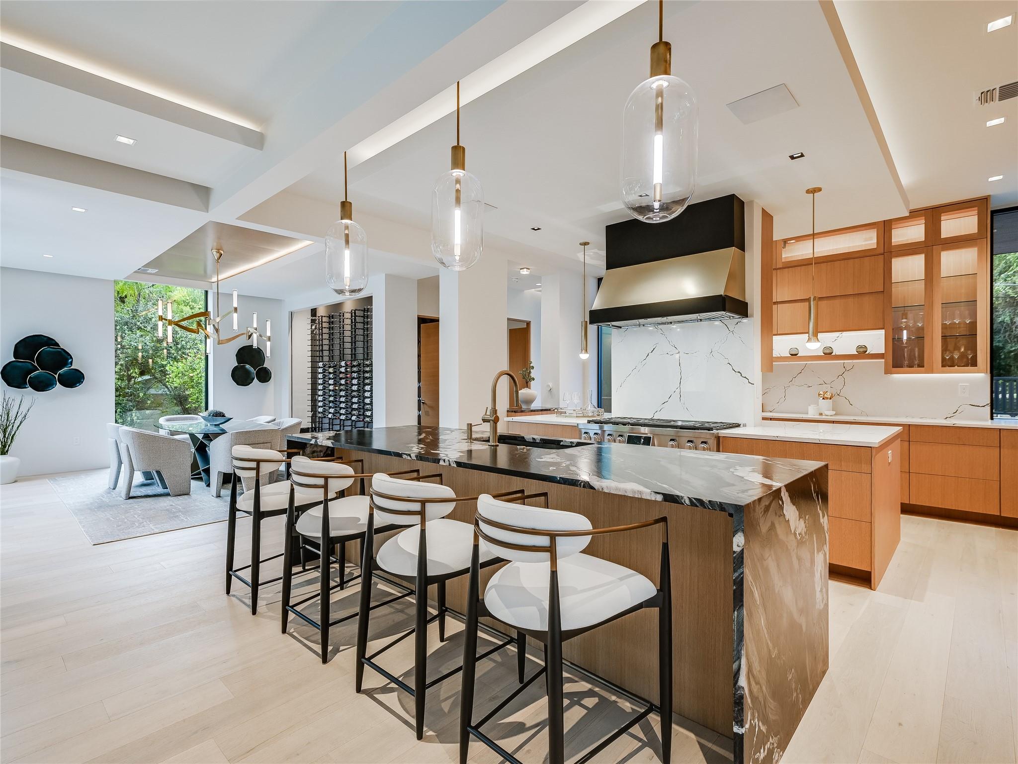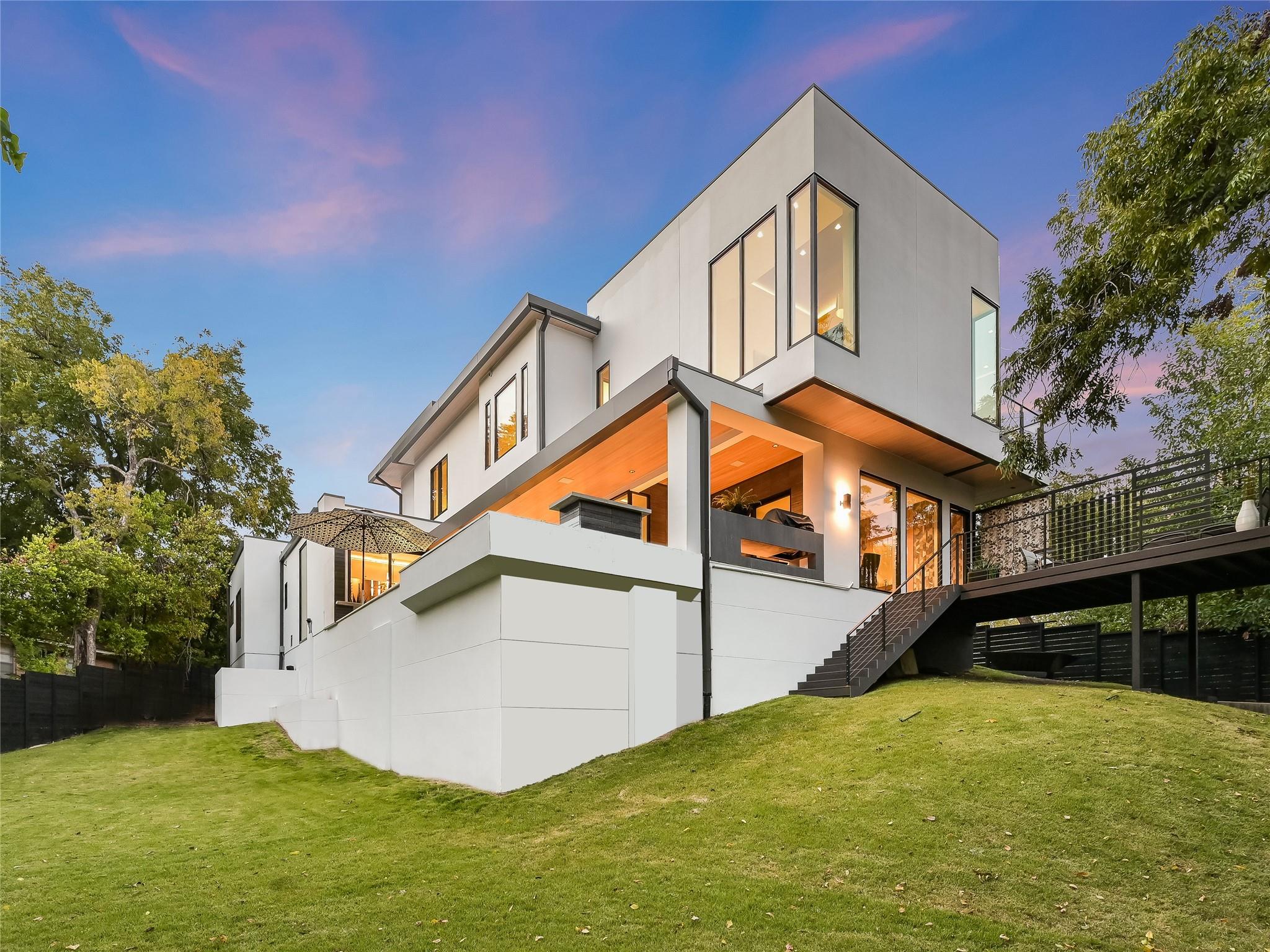 Indulge in refined living with this exceptional newly constructed residence in Austin's prestigious Travis Heights. This opulent home combines striking architectural design, impeccable craftsmanship, & lavish features to offer an unparalleled luxury lifestyle. From the entrance, marvel at the seamless integration of steel construction, creating floating rooms and expansive spaces. Every detail of this residence exudes contemporary elegance & comfort. Inside, experience sophistication with a level 5 finish and custom white oak floors, doors & cabinetry. Floor-to-ceiling windows fill the interiors with natural light, seamlessly blending indoor & outdoor living. The selection of materials & finishes is impeccable, including Italian porcelain & Hubbardton Forge lighting. Sound insulated walls ensure tranquility & recessed ceilings with back-lighting create a captivating atmosphere. The gourmet kitchen is a culinary masterpiece, equipped with top-of-the-line stainless steel appliances & a stunning black & white island with an exquisite leather finish. Step outside to a private oasis enclosed by a privacy wall—lounge by the poolside, which effortlessly transforms into a spa. The custom waterfall & pond add serenity, while the outdoor poolside TV offers entertainment. The deck, crafted from the finest Trex material, seamlessly extends the living space. A custom privacy screen with a vertical herb garden adds a touch of whimsy and elegance. The home also features a versatile office space that can serve as a fifth bedroom, wired for electronic exterior shades & adorned with Hubbardton Forge lighting. Indulge in sophistication with the temperature-controlled wine display featuring impressive 10' doors, perfect for wine enthusiasts. With its exceptional location in Travis Heights, renowned for its closeness to downtown, Lady Bird Lake and the SoCo district, this residence offers the epitome of sophisticated living.