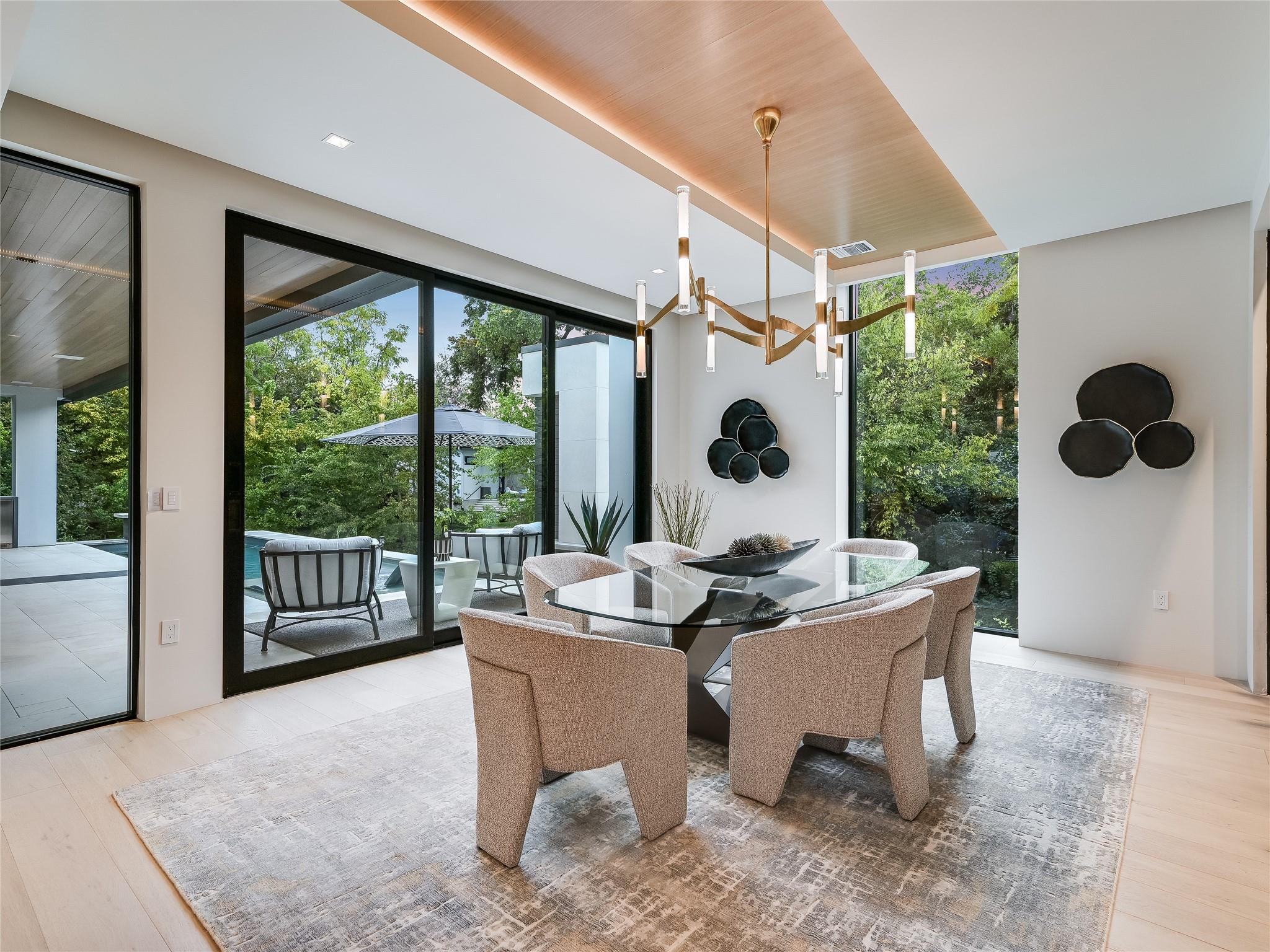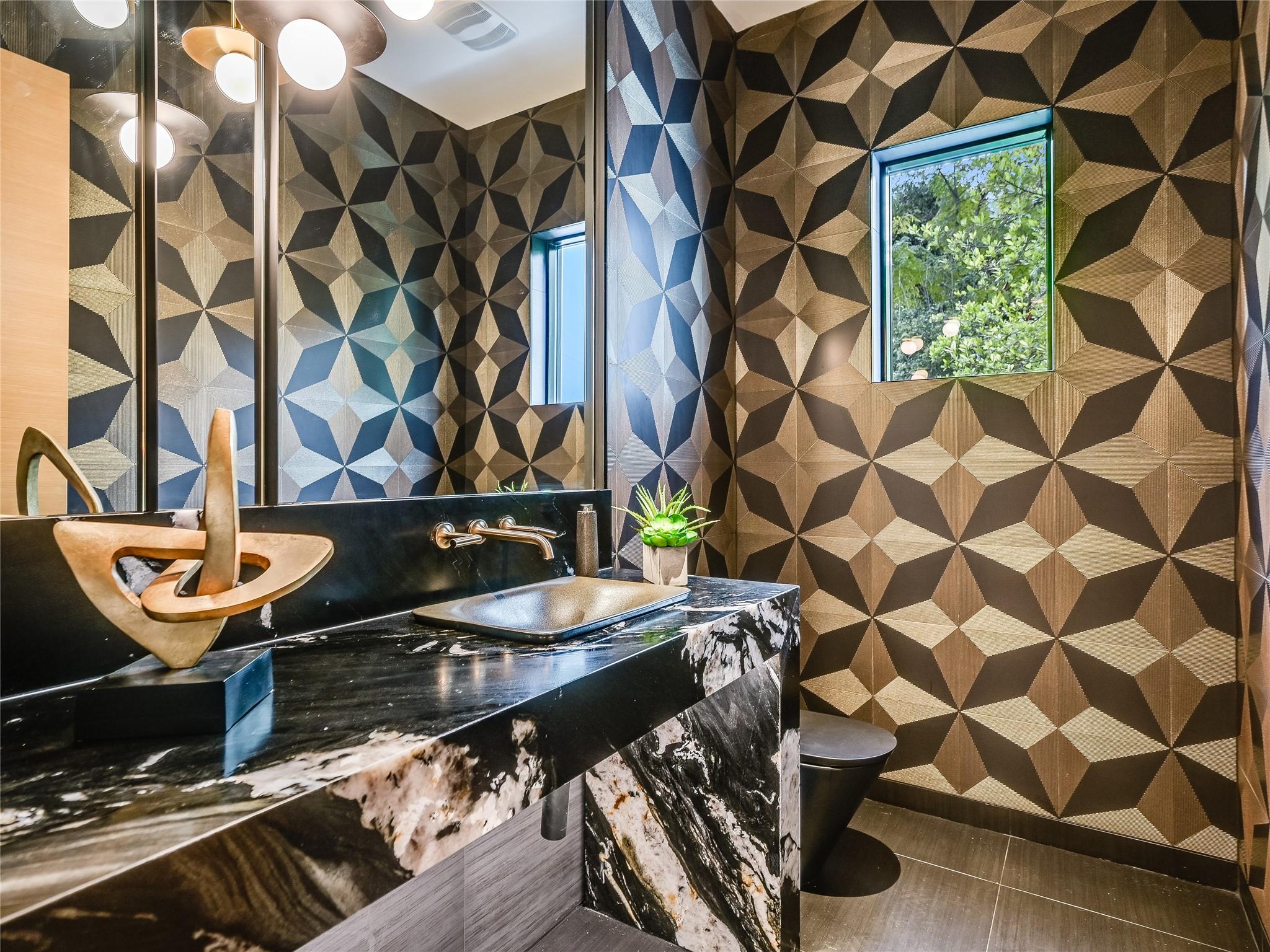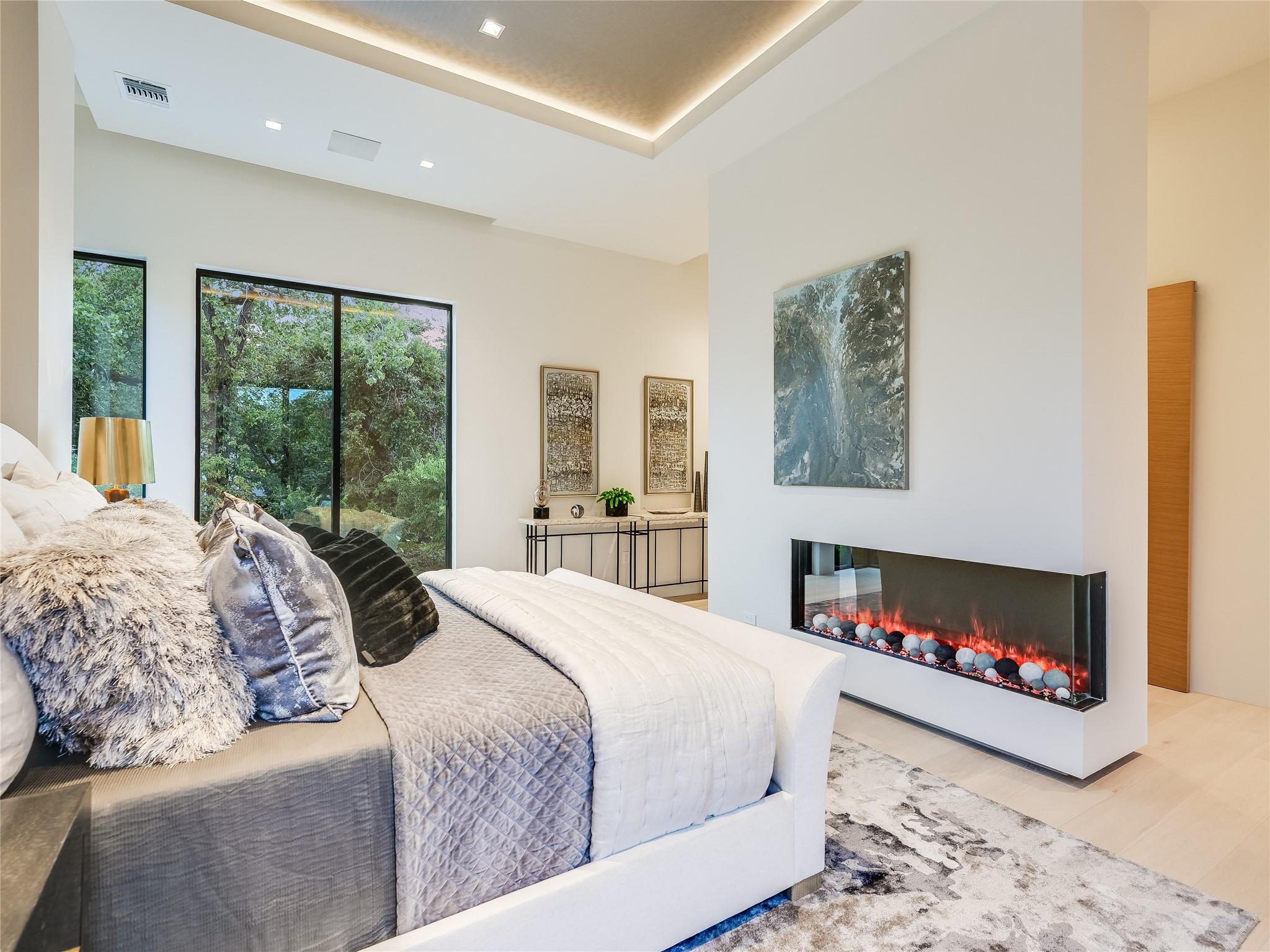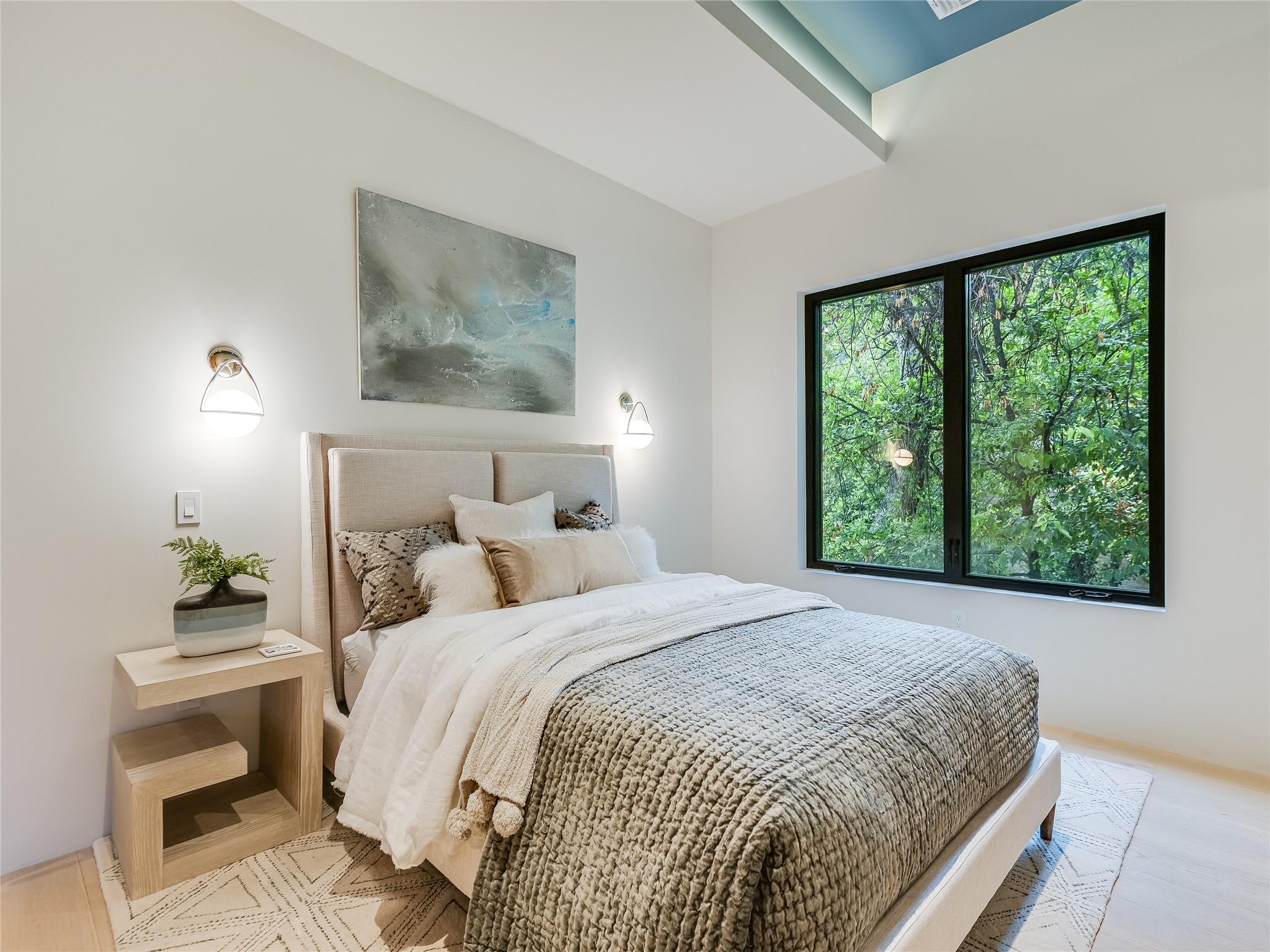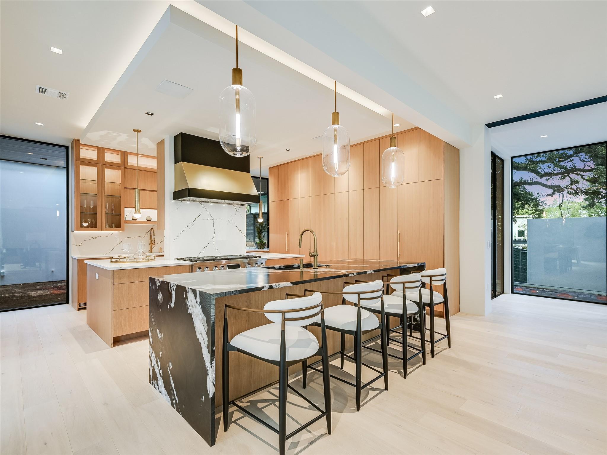 Indulge in refined living with this exceptional newly constructed residence in Austin's prestigious Travis Heights. This opulent home combines striking architectural design, impeccable craftsmanship, & lavish features to offer an unparalleled luxury lifestyle. From the entrance, marvel at the seamless integration of steel construction, creating floating rooms and expansive spaces. Every detail of this residence exudes contemporary elegance & comfort. Inside, experience sophistication with a level 5 finish and custom white oak floors, doors & cabinetry. Floor-to-ceiling windows fill the interiors with natural light, seamlessly blending indoor & outdoor living. The selection of materials & finishes is impeccable, including Italian porcelain & Hubbardton Forge lighting. Sound insulated walls ensure tranquility & recessed ceilings with back-lighting create a captivating atmosphere. The gourmet kitchen is a culinary masterpiece, equipped with top-of-the-line stainless steel appliances & a stunning black & white island with an exquisite leather finish. Step outside to a private oasis enclosed by a privacy wall—lounge by the poolside, which effortlessly transforms into a spa. The custom waterfall & pond add serenity, while the outdoor poolside TV offers entertainment. The deck, crafted from the finest Trex material, seamlessly extends the living space. A custom privacy screen with a vertical herb garden adds a touch of whimsy and elegance. The home also features a versatile office space that can serve as a fifth bedroom, wired for electronic exterior shades & adorned with Hubbardton Forge lighting. Indulge in sophistication with the temperature-controlled wine display featuring impressive 10' doors, perfect for wine enthusiasts. With its exceptional location in Travis Heights, renowned for its closeness to downtown, Lady Bird Lake and the SoCo district, this residence offers the epitome of sophisticated living.