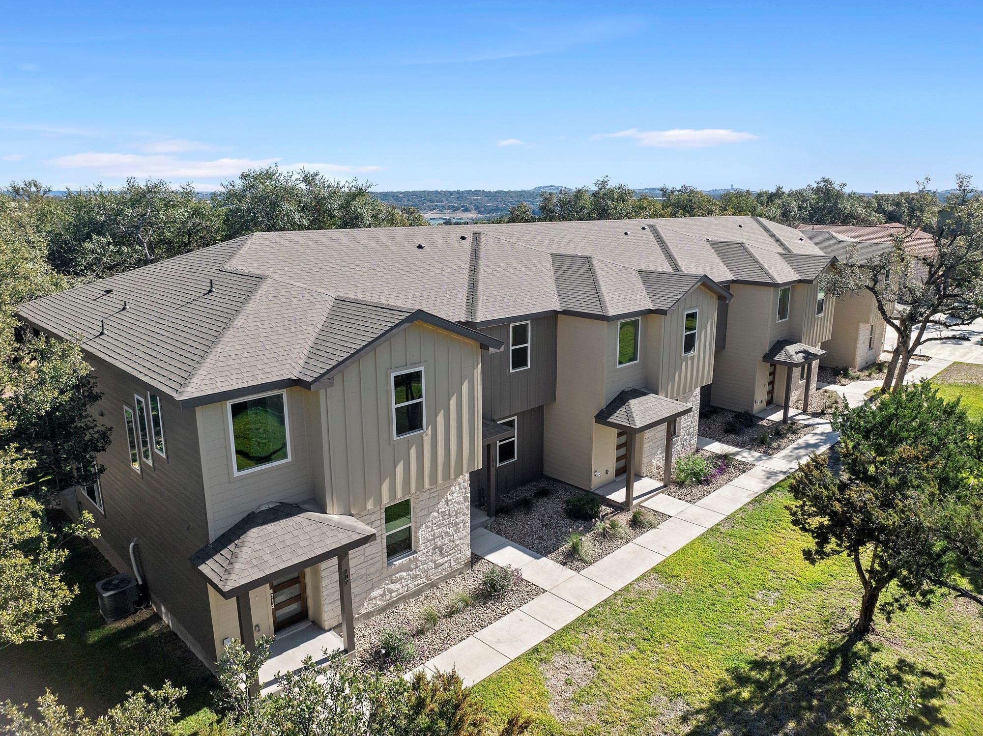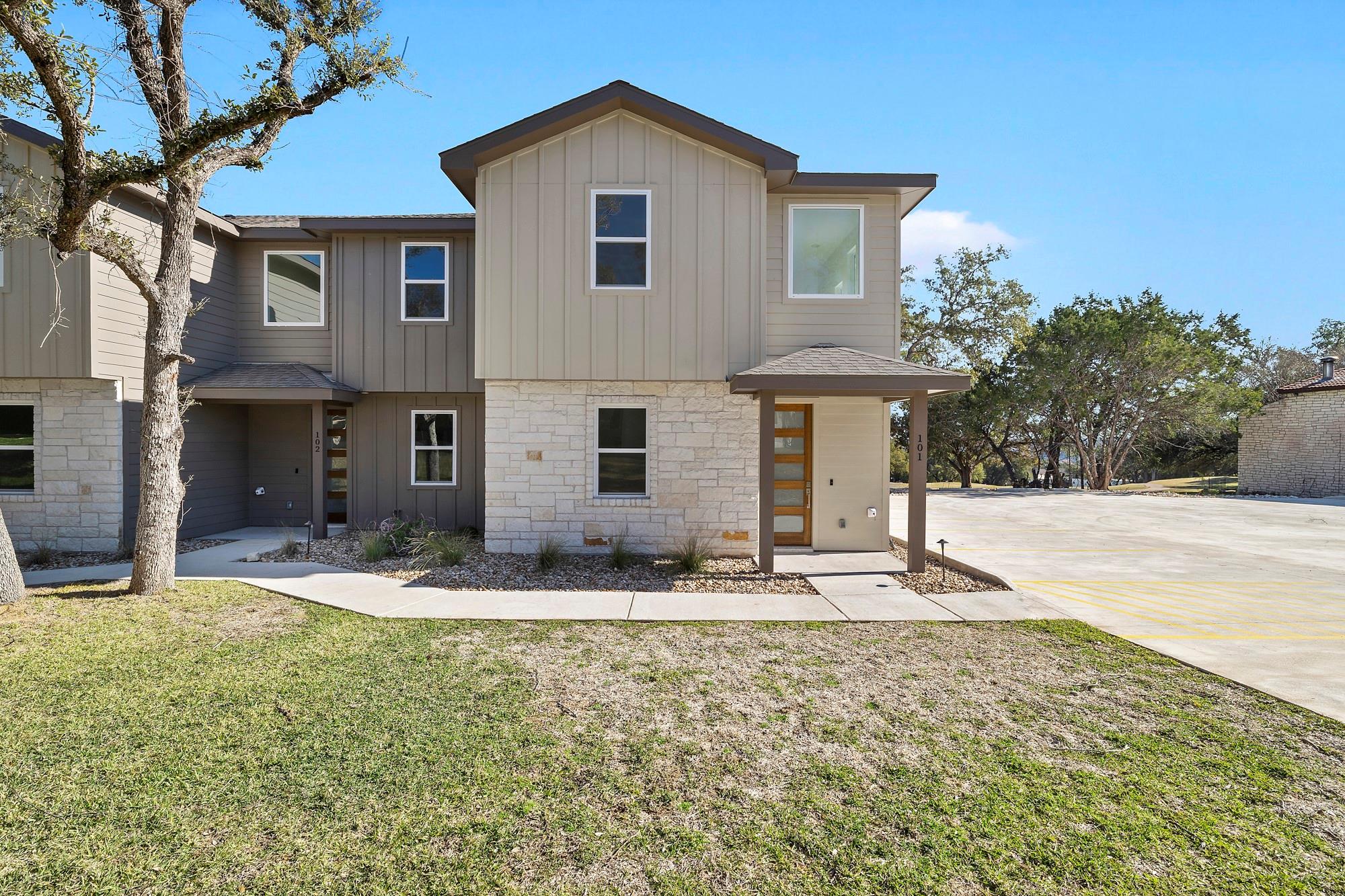 Great new construction investment opportunity for short term or long term rentals! Townhome complex has seven vacant units. Welcome to your newly built townhome and the perfect Lake Travis getaway! This townhome would make a great personal residence, weekend getaway, or short term rental! Upon entering, you will be greeted with high ceilings, an open floor plan, and amazing natural light. The kitchen, which opens to the family room, is finished with quartz countertops and stainless steel appliances. Upstairs you will find the third bedroom, full bathroom, laundry location, and primary suite. There is a private deck that can be found through the primary bedroom. Conveniently located near the Point Venture golf course, Caddie Shack, lakefront park, and the delicious Captain Petes restaurant, you have access to all of the amazing Point Venture amenities at your fingertips! All units (101-107) are available for purchase and are also currently listed for lease on MLS to begin finding tenants.