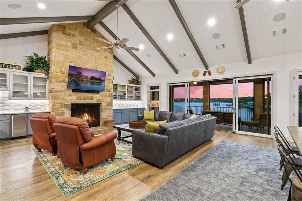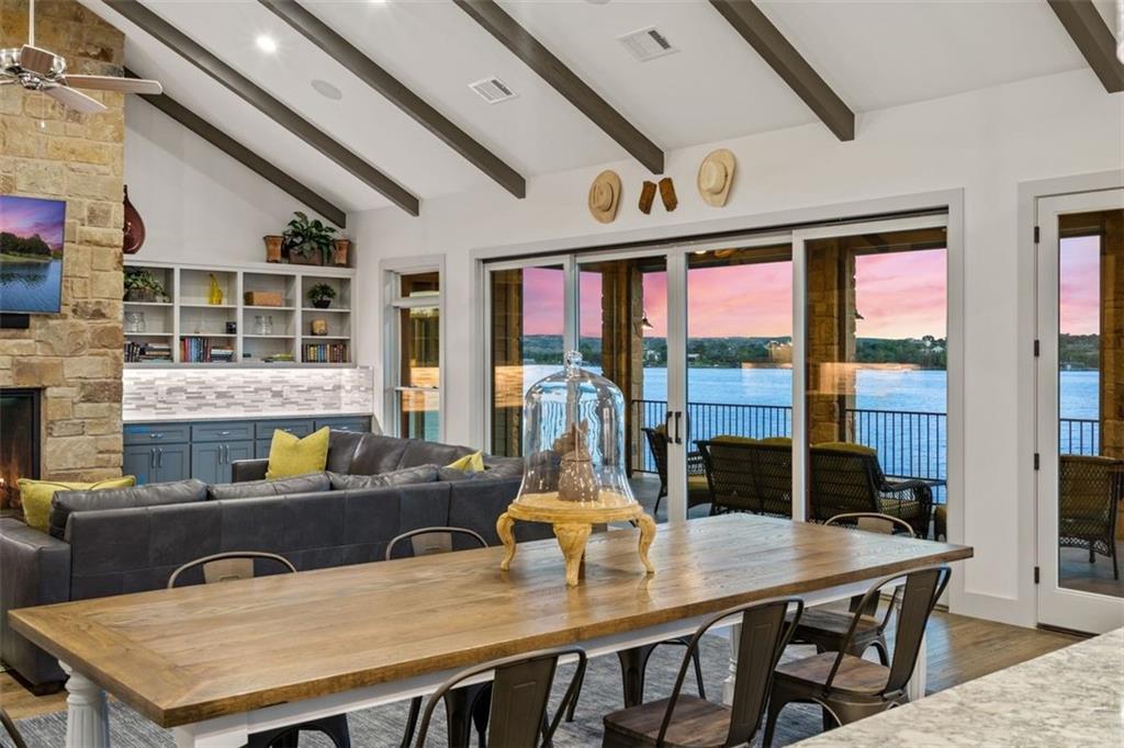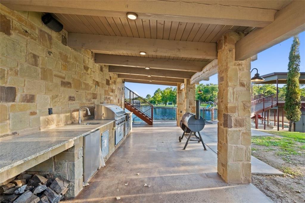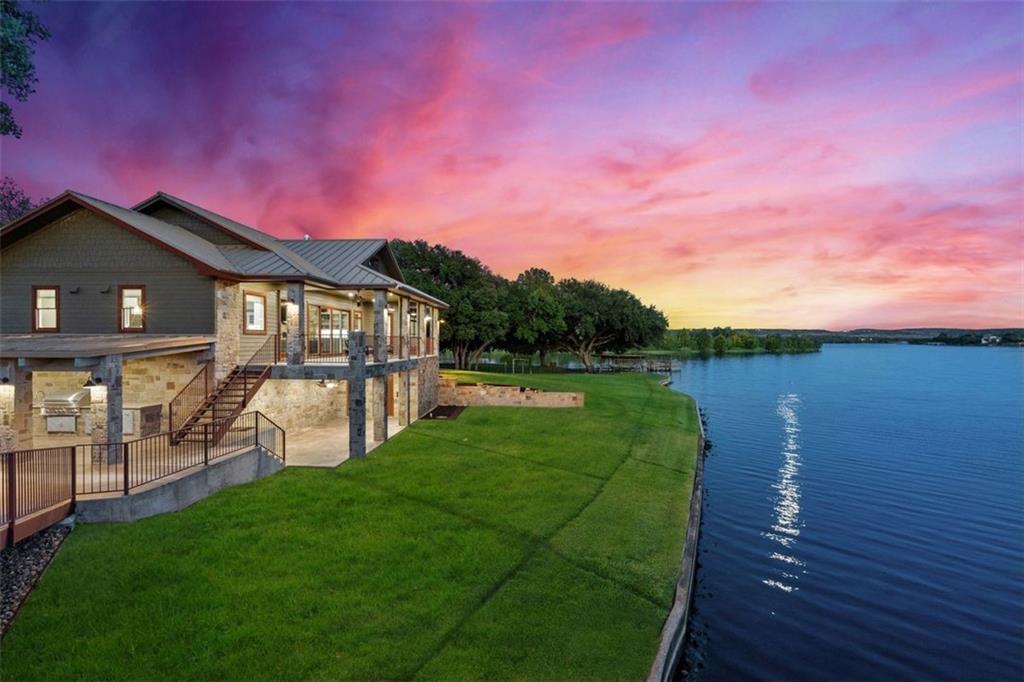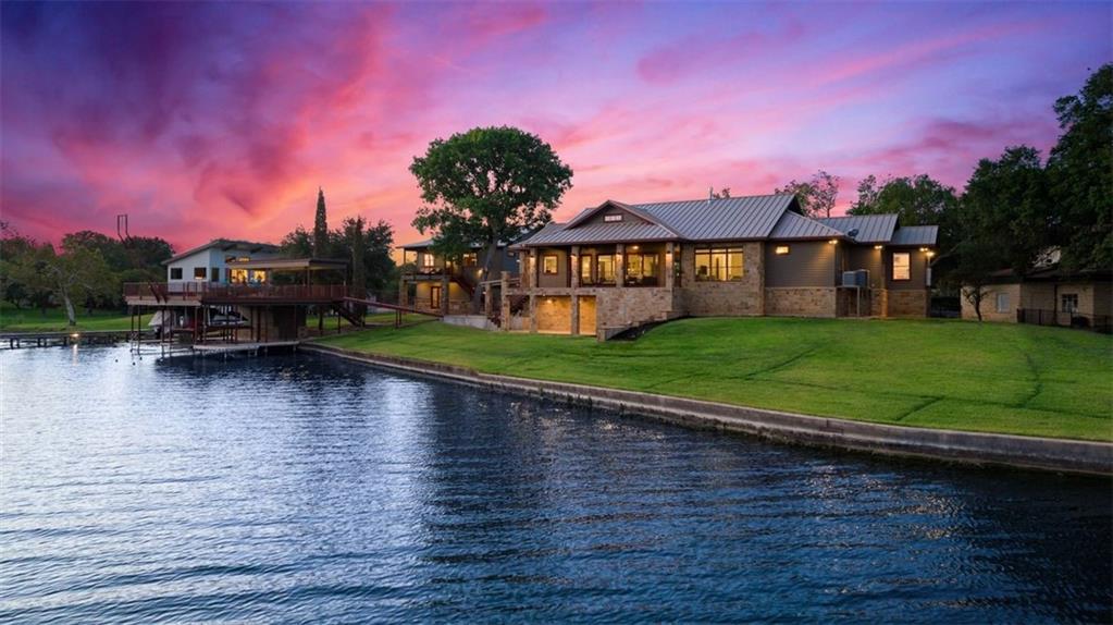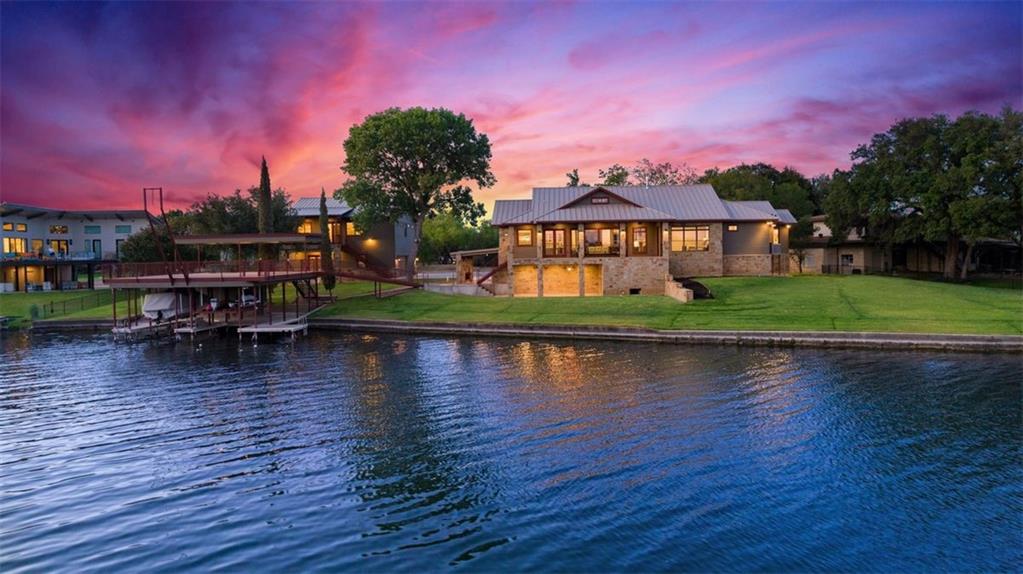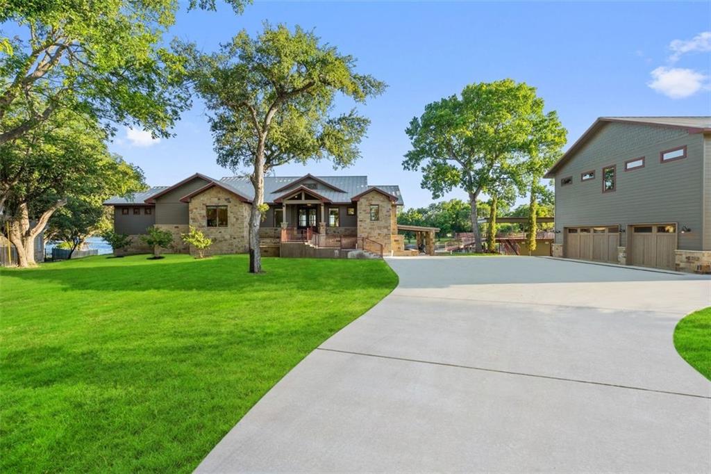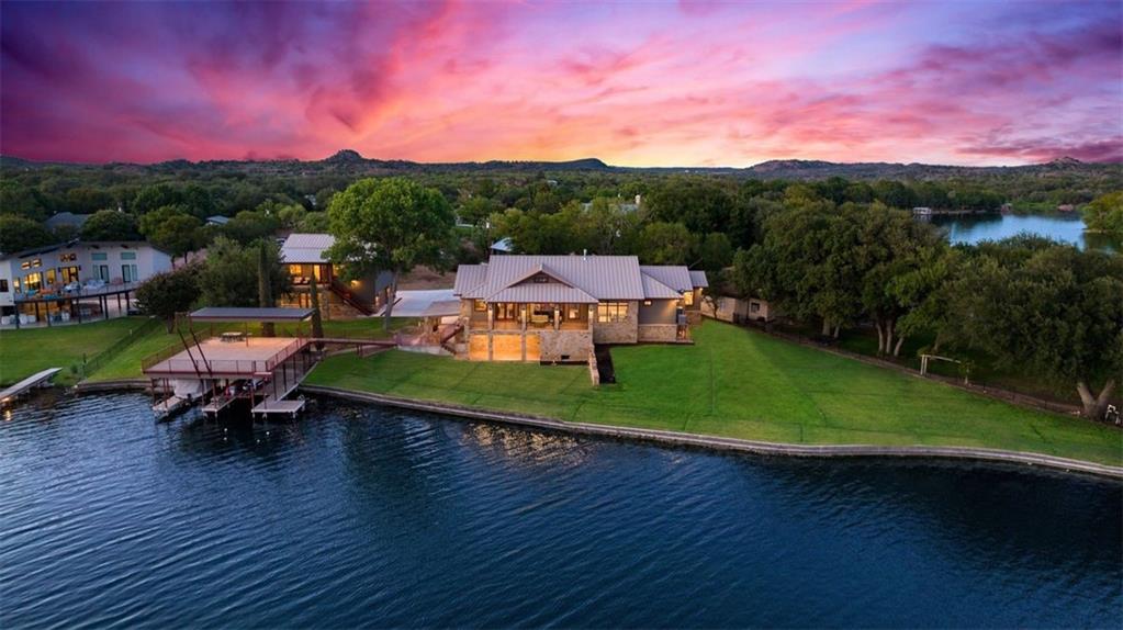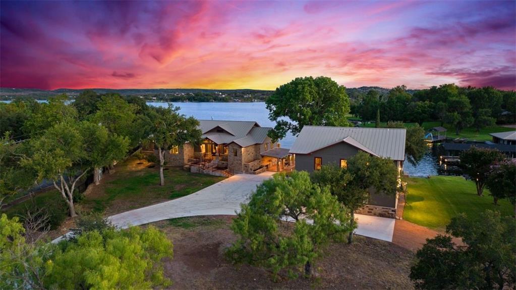If you are lucky enough to be on Inks Lake, you are lucky enough! 114 Bluebonnet is a remarkable lake house in every aspect, built to thoroughly enjoy the good life while overlooking miles and miles of sparkling blue water on serene Inks Lake. The 325' of stunning open waterfront is the focus of this family compound, excellent watersports, fishing, swimming, boating, kayaking and paddle boarding, even a great lake swing with bounce blob to bounce your kids into the air… WHAT FUN! So many outdoor entertaining areas situated on a huge 1.82 acres! Absolute Perfection! A private gated entrance leads to the beautiful main home which is newer construction, built in 2021 with a light and airy color palette that features a stunning master suite, 2 large guest bedrooms, an open concept living area with fireplace and wet bar, vaulted, beamed ceilings a huge chef’s kitchen with high-end appliance package. The patio with remote shades provides even more outdoor living space. Outdoor lower level features an outdoor kitchen and covered entertaining space ready for great Bar-B-Q. Excellent boat house, with two stalls, has deck above boat house with covered patio area. A guest apartment sits above the 3-car garage with workshop. The living quarters are perfect for large families, providing them with space & privacy & the 4 built-in bunks are adorable as well as practical. Inks Lake is revered for its serenity and consistent level, the 831-acre lake is located just an hour from Austin and 2 Hours from San Antonio. Life is Short! Buy the Lake House!