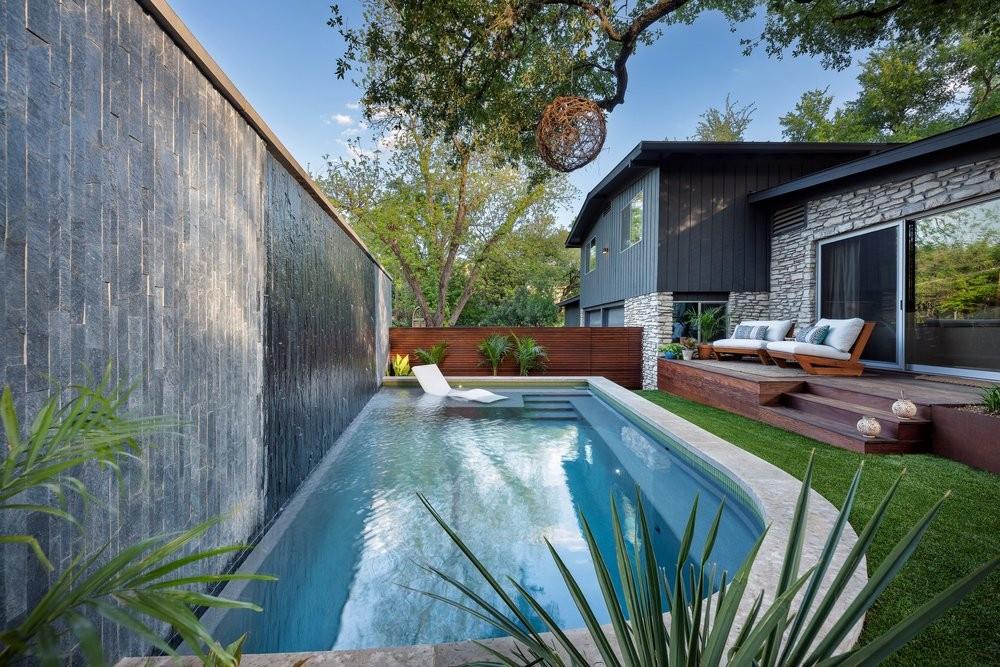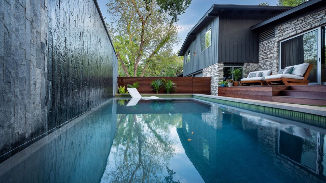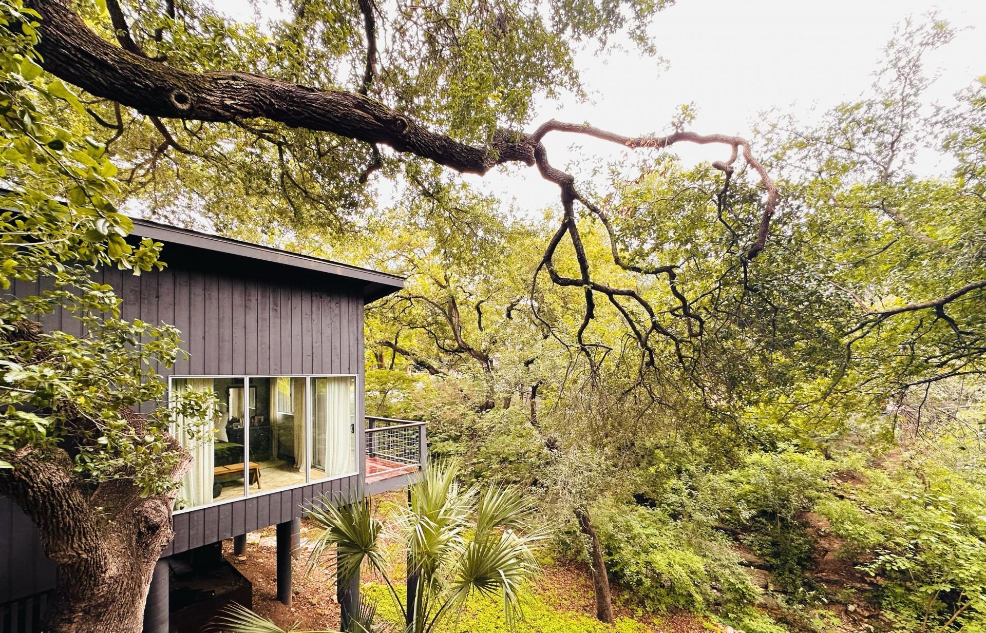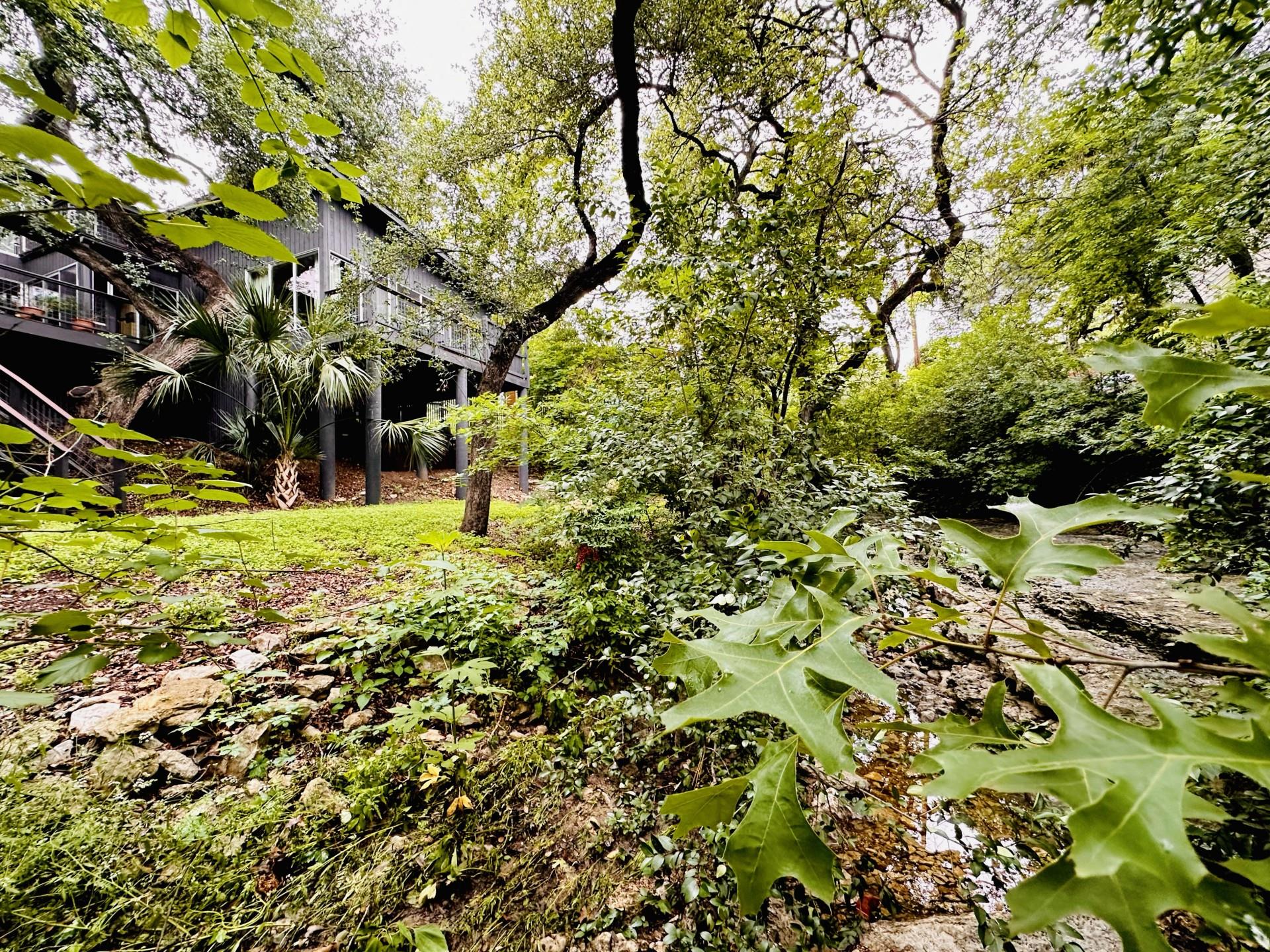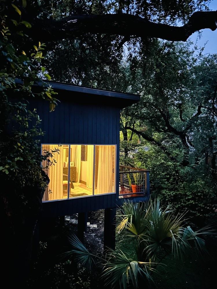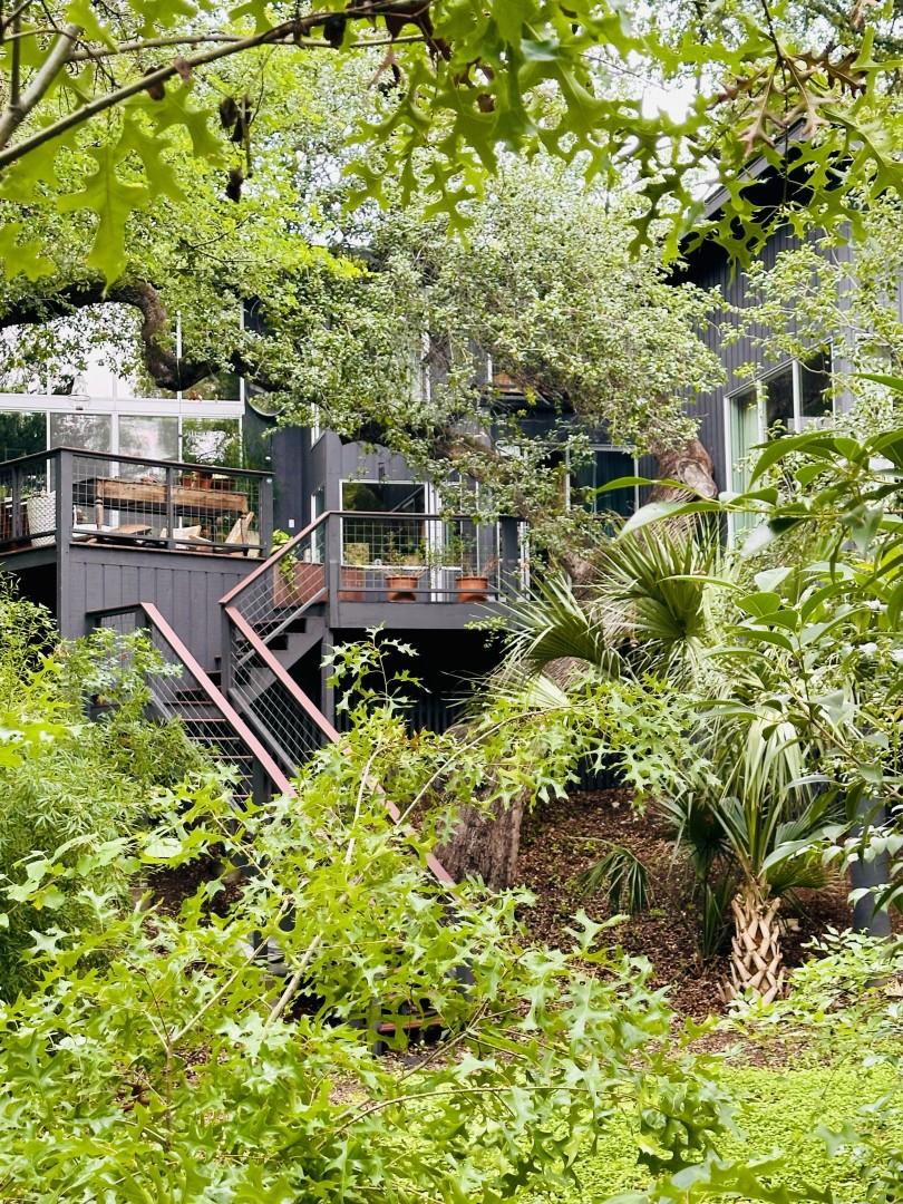 3,271 sq.ft. split-level Mid Century Modern Tarrytown home sits on an amazing .37 acre corner lot with tens of mature Live Oaks, Cedar Elms, Rosebud trees, Bamboo and just down the street from Casis Elementary. 300 sq.ft. of deck sits outside the floor to ceiling living room windows and slider, space for a full outdoor living room set up. There are four bedrooms and four full baths to compliment three different living room/den areas. Two car garage with Tesla Charging Station. The kitchen features custom made grain-matched Cherrywood cabinets that fit the time period of the home perfectly and white oak wood floors run seamlessly throughout the home. The lot has room for an additional ADU. A special, unique feature of the home is the two primary bedrooms located in separate areas of the home. One primary located upstairs with the other two bedrooms features its own ensuite and backyard balcony. This room would be Ideal for a mother-in-law, nanny, or teenager. The other two bedrooms upstairs share a full bath/shower with two sinks. The downstairs primary bedroom cantilevers like a floating treehouse surrounded by windows. The downstairs primary bathroom features three heads in a shower/tub combo and slider that opens from the shower to the deck that runs the length of the primary bedroom. The secondary living/den has a wall of bookshelves and large sliding door that opens onto the Ipe deck overlooking the heated pool and water wall. The lower level of the home features a third living space/den, full bathroom, workout space (indoor infrared sauna and peloton bike), desk area, primary bedroom and bath, laundry/mud room and garage access. Extremely close proximity to Lake Austin, quick access to Mopac to downtown, and approximately 20 minutes to Austin's airport and FBO's. Austin ISD: Casis Elementary, O'Henry Middle, & Austin High School. Cozy and comfortable, and the perfect home for a family and entertaining as you wish. Come See Her! 2709pecos.com