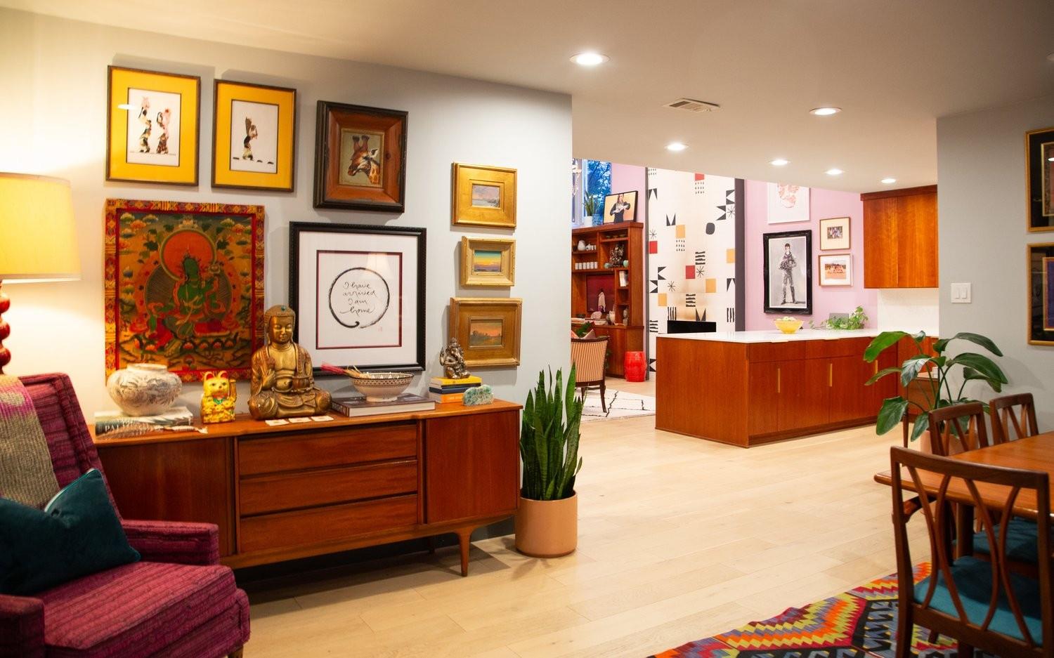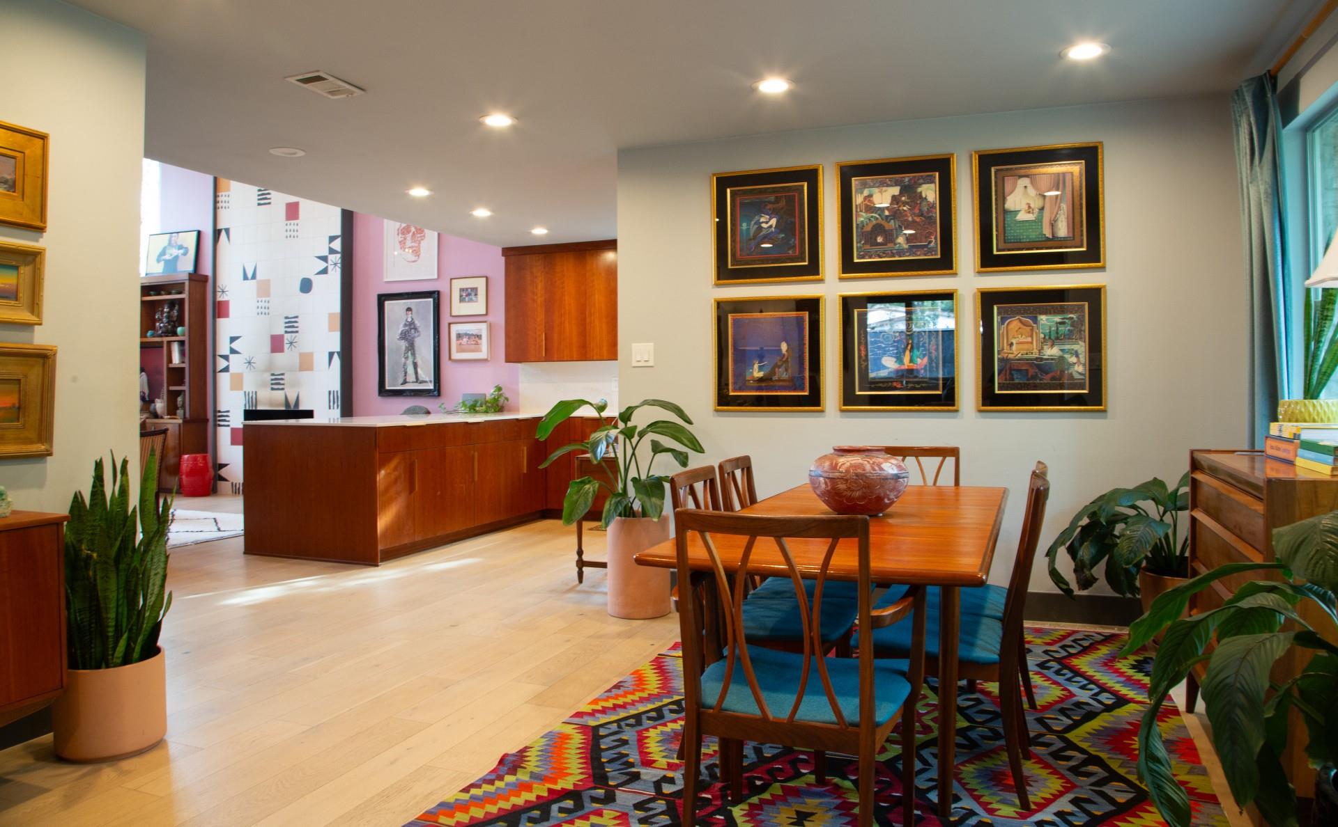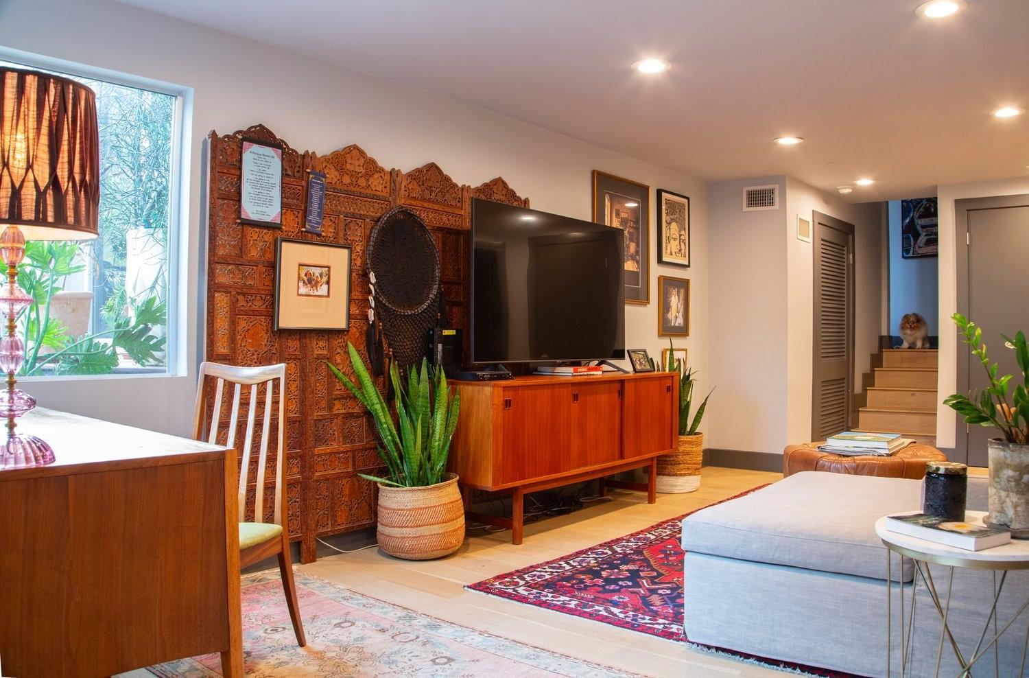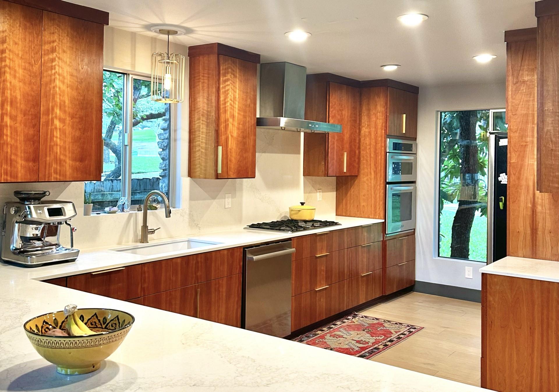 3,271 sq.ft. split-level Mid Century Modern Tarrytown home sits on an amazing .37 acre corner lot with tens of mature Live Oaks, Cedar Elms, Rosebud trees, Bamboo and just down the street from Casis Elementary. 300 sq.ft. of deck sits outside the floor to ceiling living room windows and slider, space for a full outdoor living room set up. There are four bedrooms and four full baths to compliment three different living room/den areas. Two car garage with Tesla Charging Station. The kitchen features custom made grain-matched Cherrywood cabinets that fit the time period of the home perfectly and white oak wood floors run seamlessly throughout the home. The lot has room for an additional ADU. A special, unique feature of the home is the two primary bedrooms located in separate areas of the home. One primary located upstairs with the other two bedrooms features its own ensuite and backyard balcony. This room would be Ideal for a mother-in-law, nanny, or teenager. The other two bedrooms upstairs share a full bath/shower with two sinks. The downstairs primary bedroom cantilevers like a floating treehouse surrounded by windows. The downstairs primary bathroom features three heads in a shower/tub combo and slider that opens from the shower to the deck that runs the length of the primary bedroom. The secondary living/den has a wall of bookshelves and large sliding door that opens onto the Ipe deck overlooking the heated pool and water wall. The lower level of the home features a third living space/den, full bathroom, workout space (indoor infrared sauna and peloton bike), desk area, primary bedroom and bath, laundry/mud room and garage access. Extremely close proximity to Lake Austin, quick access to Mopac to downtown, and approximately 20 minutes to Austin's airport and FBO's. Austin ISD: Casis Elementary, O'Henry Middle, & Austin High School. Cozy and comfortable, and the perfect home for a family and entertaining as you wish. Come See Her! 2709pecos.com