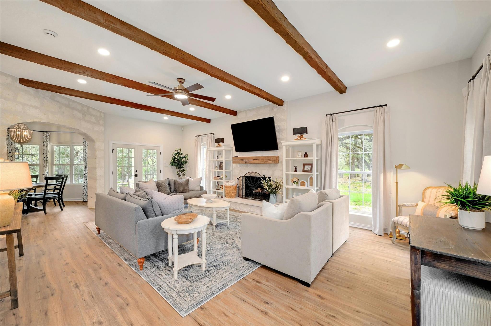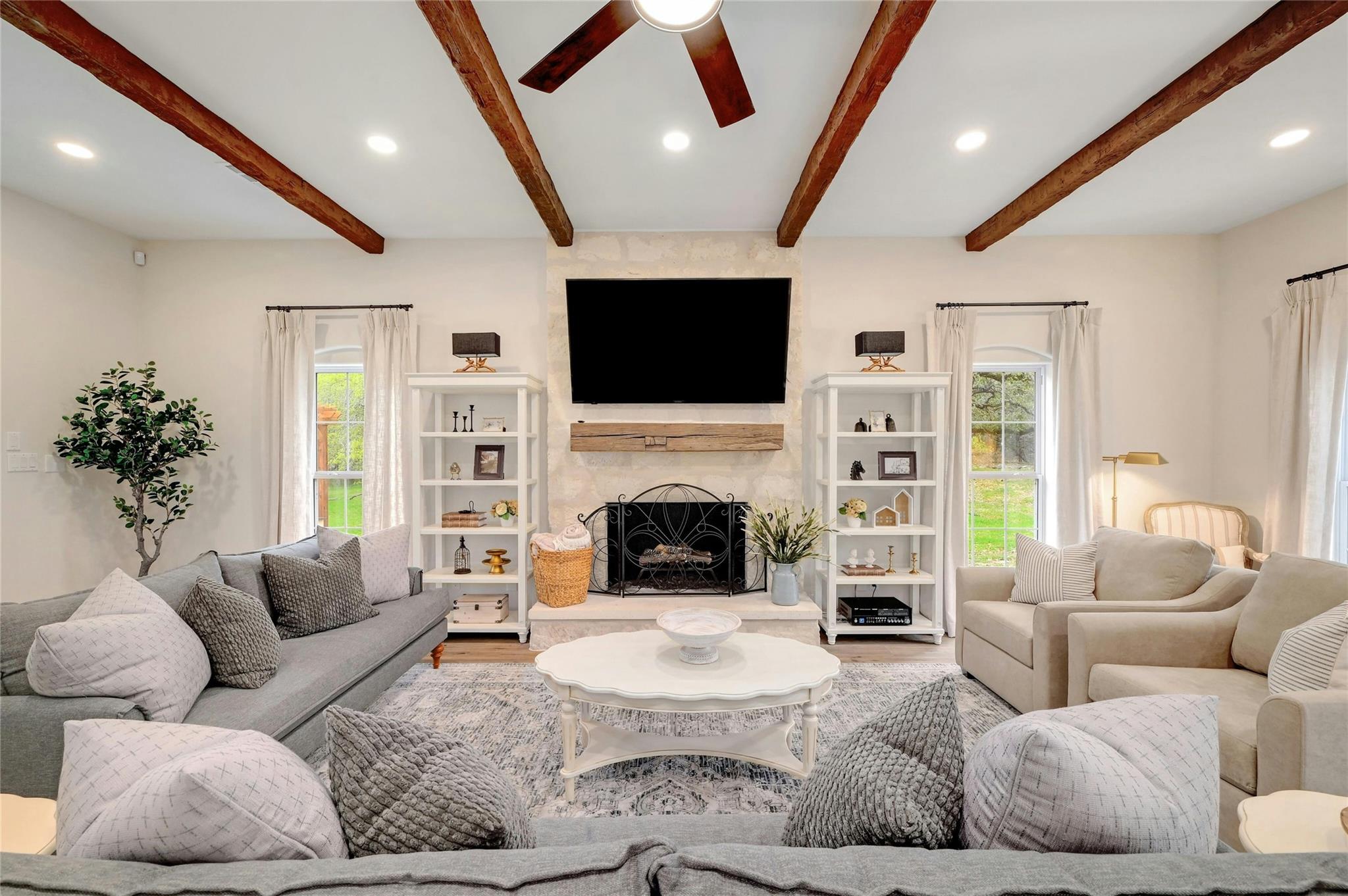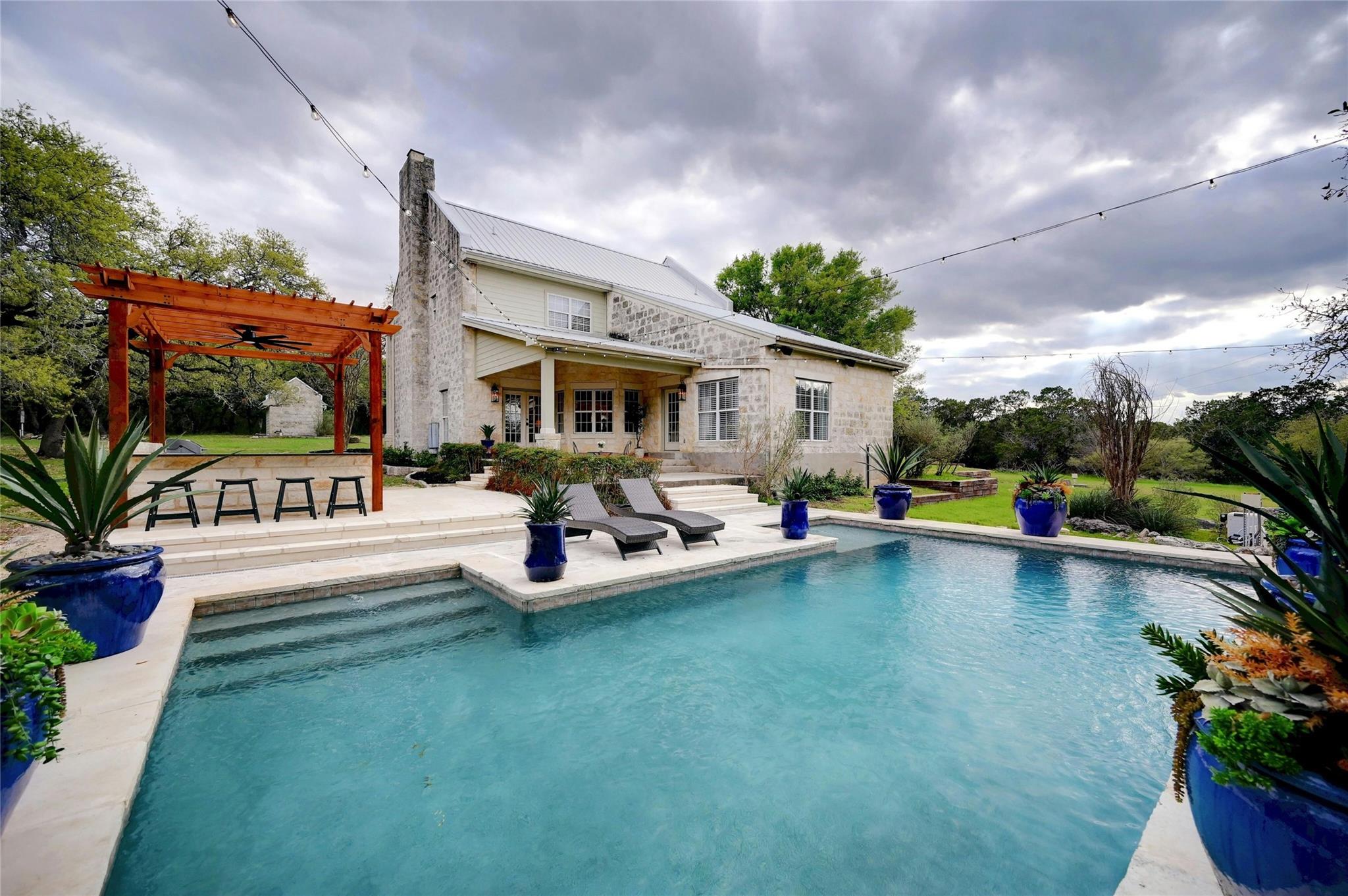 New appraisal just came in at $2,856,000 (attached). Welcome to Hart House! This unique 3,926 sq ft custom-built home has been completely remodeled after being purchased from the original owners, The Hart Family. No corner was left unturned in this romantic, European farmhouse-inspired transformation, which will make for a stunning & secluded family resident ranch. Pull into the private, gated and paved driveway, as you meander through abundant flora and fauna. You’ll find quartz and granite countertops throughout, new fixtures, showers & ceiling fans, new flooring & high-end carpet throughout the home. A chef’s kitchen opens up to a gorgeous dining area in addition to a breakfast nook overlooking the pool. Head up the main staircase where you’ll find a common area that would serve perfectly as a TV room or playroom, as well as a king suite with private bathroom & two additional king bedrooms that share a Jack-&-Jill bathroom. Head back downstairs & through the oversized laundry & mudroom corridor to a 2nd staircase which leads to a unique & spacious "Sky Room" loft with a shower-tub combo bathroom. The outdoor features are equally stunning with a Custom Pool, Outdoor speakers, Outdoor Kitchen & Gazebo with Ample Seating, Fully-Fenced, Automatic Entrance Gates, Ample Parking in Addition to 3 Car Garage & Circular Drive, Abundant wildlife. Low Taxes, No HOA & Recently removed from the ETJ. State-of-the-art security system is owned (not leased) & Nest thermostats throughout. Owner/Agent will consider conveying all furnishings/decor, all of which are new. Located between Austin & San Antonio & mins from Texas State University, Tanger Outlets, Convention Center, Wonder World Cave & soon-to-be Hill Country Studios. Buyer acknowledges that the info contained herein was obtained from sources deemed reliable. Seller strongly encourages Buyer to confirm all information. Can be sold as a turn-key vacation rental/business and/or with adjacent 25 acres & home at MLS #8642310.