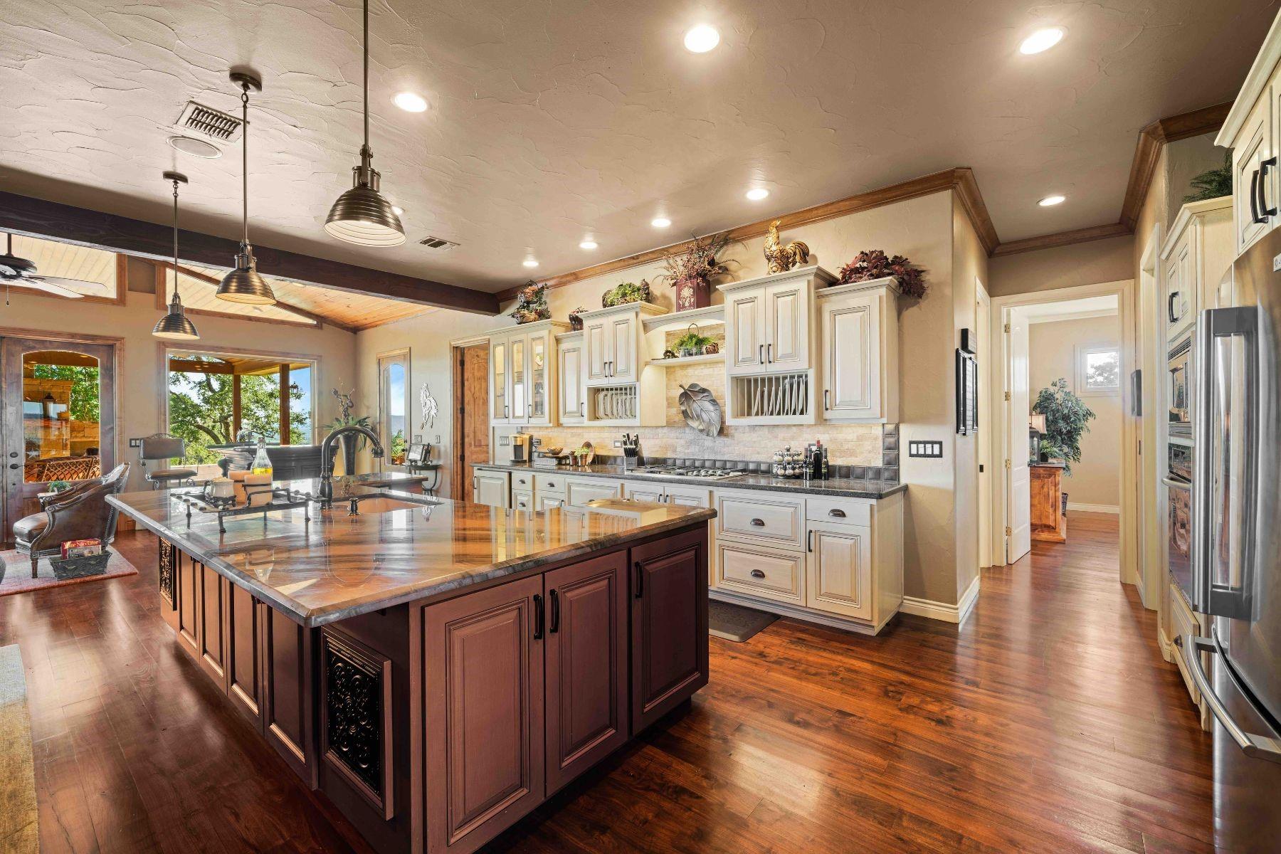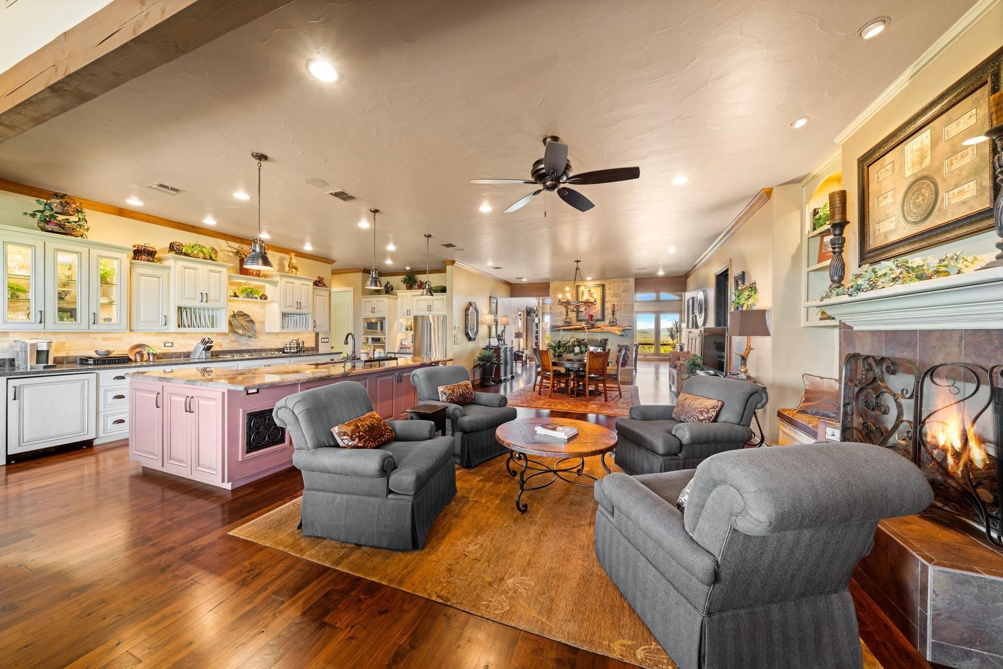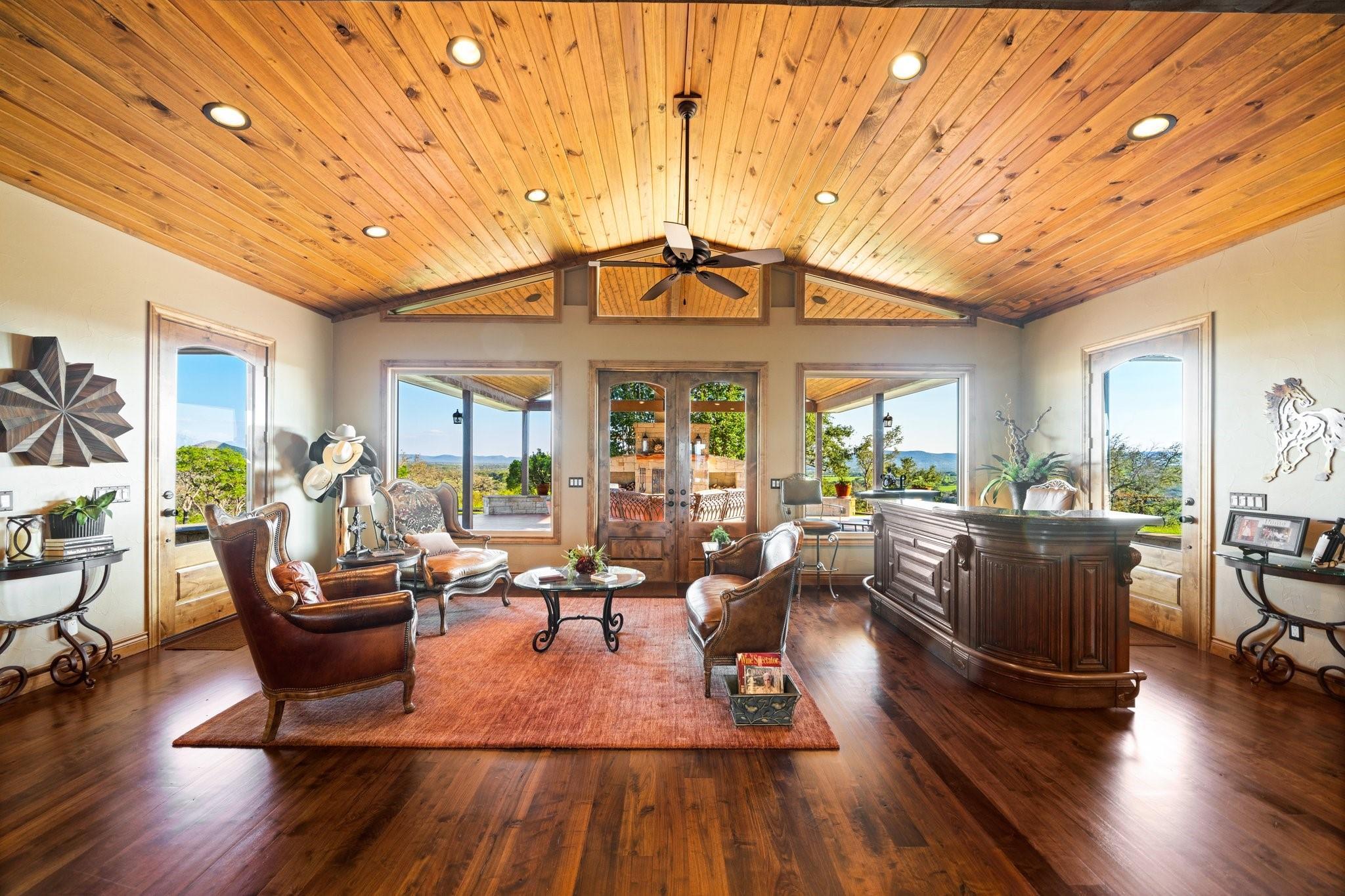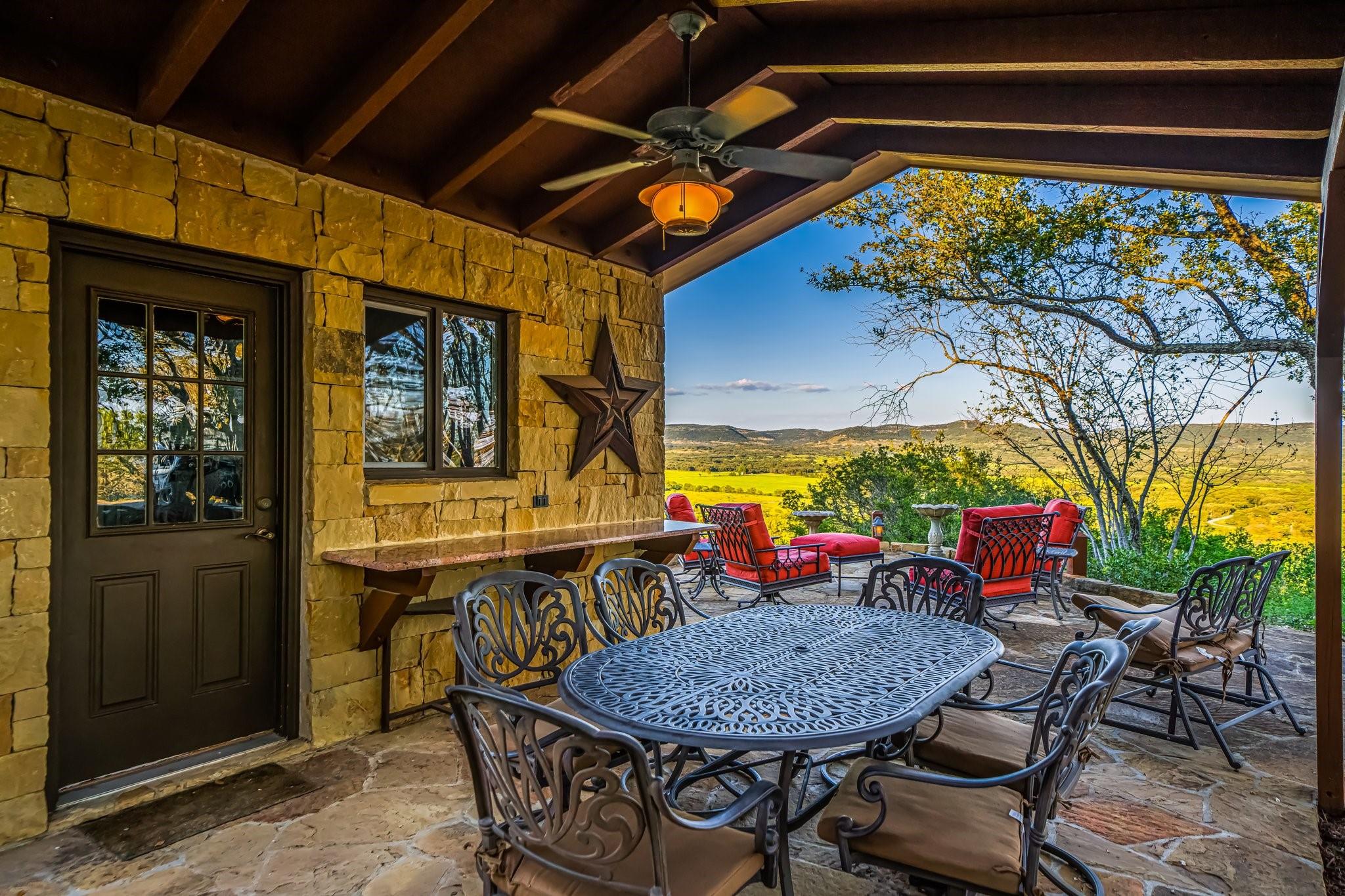 With 940+/- ft of crystal-clear Sabinal River frontage and amazing 360-degree long-range views – The Pantera Colina Ranch is a 60+/- acre peaceful getaway. Set high on Panther Hill, the main house features 3 bedrooms, 3.5 bathrooms, a wine cellar, a back porch cabana, and a large covered outdoor patio great for entertaining guests that showcases the stunning 360-degree views. The main house is also beautifully landscaped with a fenced raised bed garden. The finish-out inside the house is amazing and no details were overlooked! The property also offers a 4- bedroom/3-bathroom guest house, a large metal horse barn with a nice arena and round pen, and a 2,000+/- sf metal equipment building.
