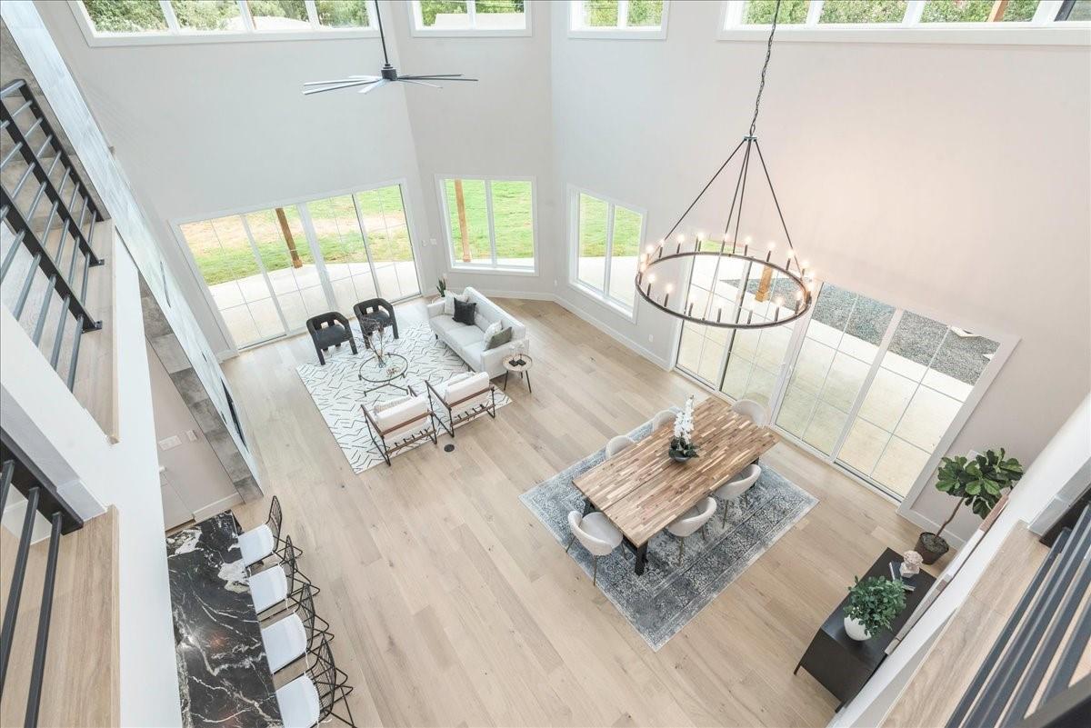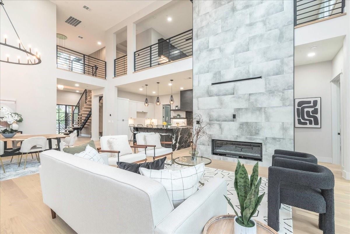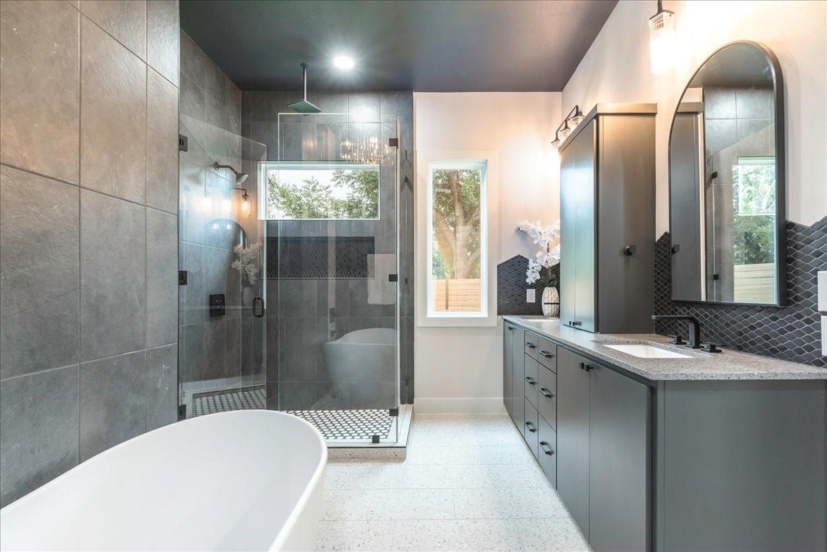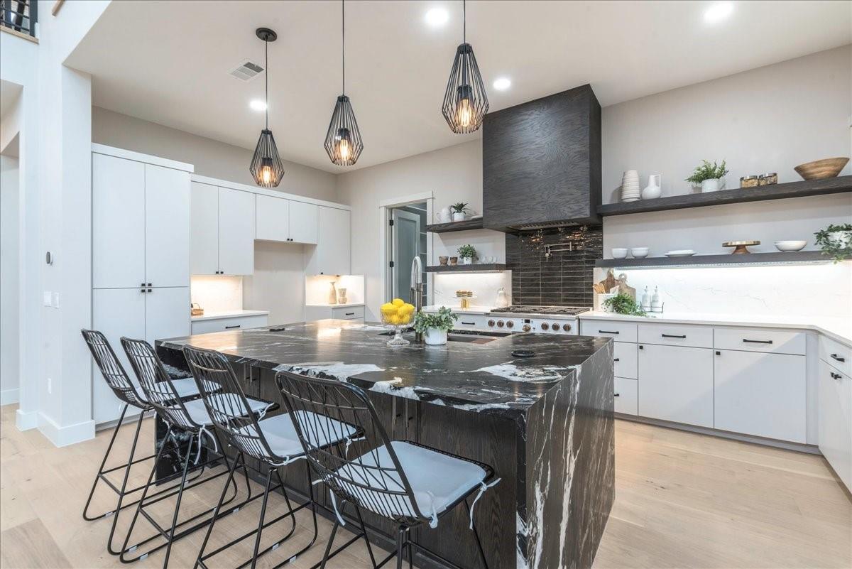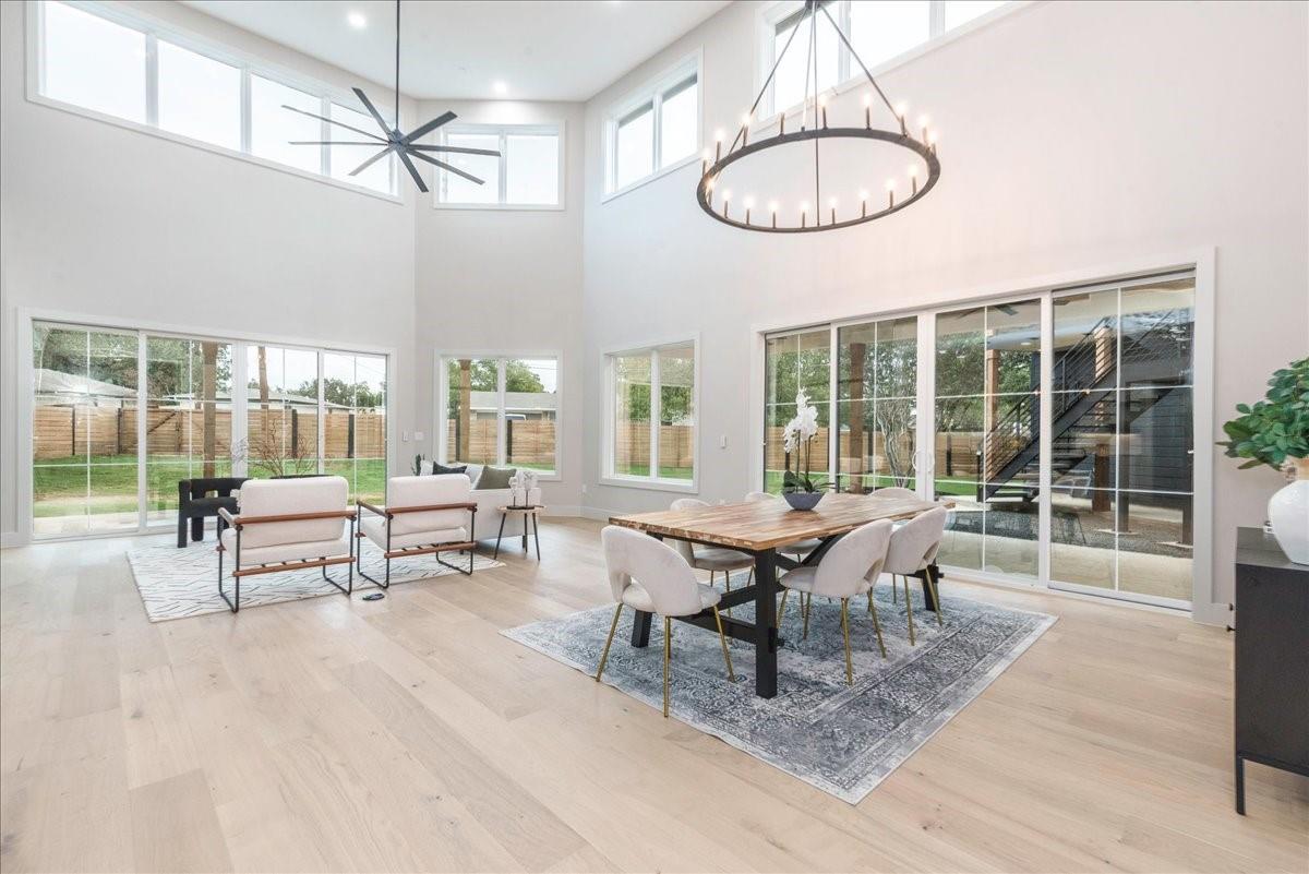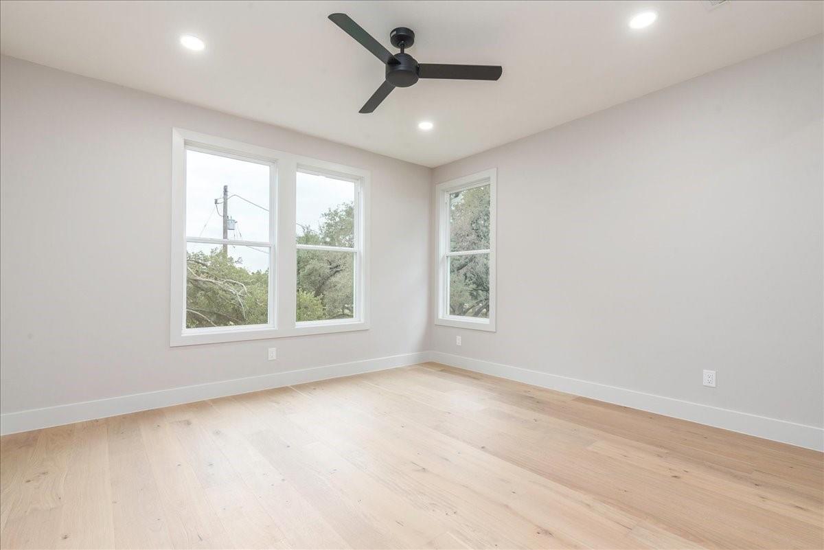 Dubbed "Striving for Balance," this stunning, new construction home is an on-trend architectural masterpiece characterized by striking European white oak flooring and banks of glass. Space and luxury are in abundance, with every modern convenience considered. Expansive windows and doors bathe the interior in natural light, connecting seamlessly to the enclosed, lush surroundings. The flowing 4,200+ sq ft floor plan includes four bedrooms and four baths in the main house and presents the finest finishes. Built for sensational entertaining, the home boasts an incredible open-plan great room with soaring fireplace and overlooking clerestory windows. The state-of-the-art kitchen centers around an exquisite island topped with a waterfall of soapstone. Premium Café appliances and intelligent amenities ensure effortless preparation of mouthwatering repasts. Sleek detailing and clean aesthetics continue to a main-level office/living room, private guest suite and laundry room. A plush owner's bedroom is a calm oasis designed for relaxation. This enticing retreat beckons with a rejuvenating shower, sumptuous tub for 2, and customized closet. A lavish floating staircase delivers residents to the upper level, where a generous game room offers a full-length wet bar. The second floor accommodates with a spacious bedroom and guest suite, each light and airy. Beyond a covered porch ideal for year-round barbecues, a superbly private one-bedroom guest house above an oversized three-car garage boasts its own kitchenette, laundry, bath, and living space, creating an ideal nanny or in-law apartment. Top-rated Davis Elementary, a National Blue Ribbon School, is within walking distance of the sought-after Angus Valley neighborhood, renowned for its tranquil environment and proximity to shops and recreation. Situated in the pocket between N Mopac and Hwy 183 with a short commute to Downtown Austin, this two story home is minutes from The Domain, The Arboretum, Apple, IBM and Q2 Stadium