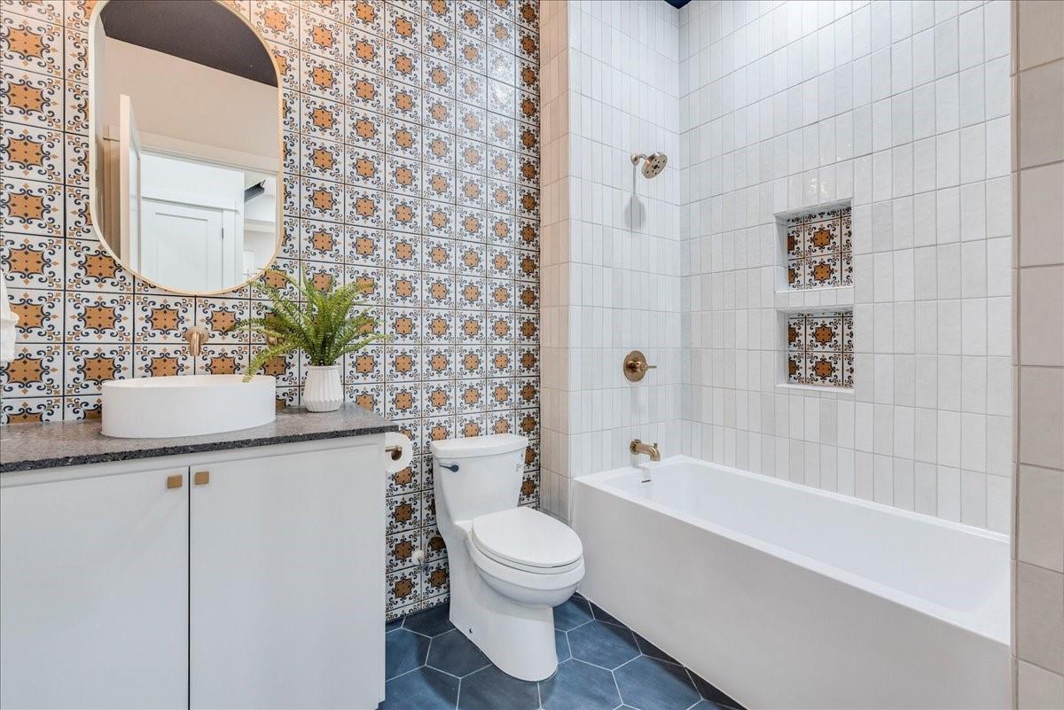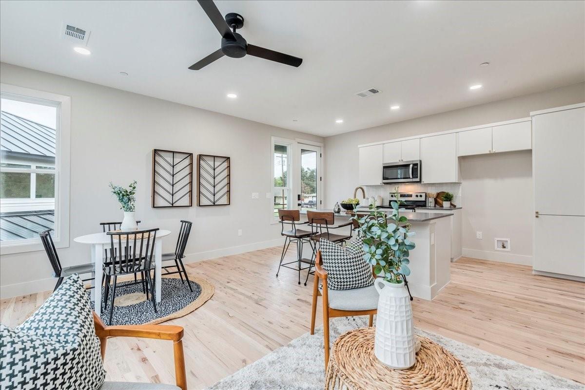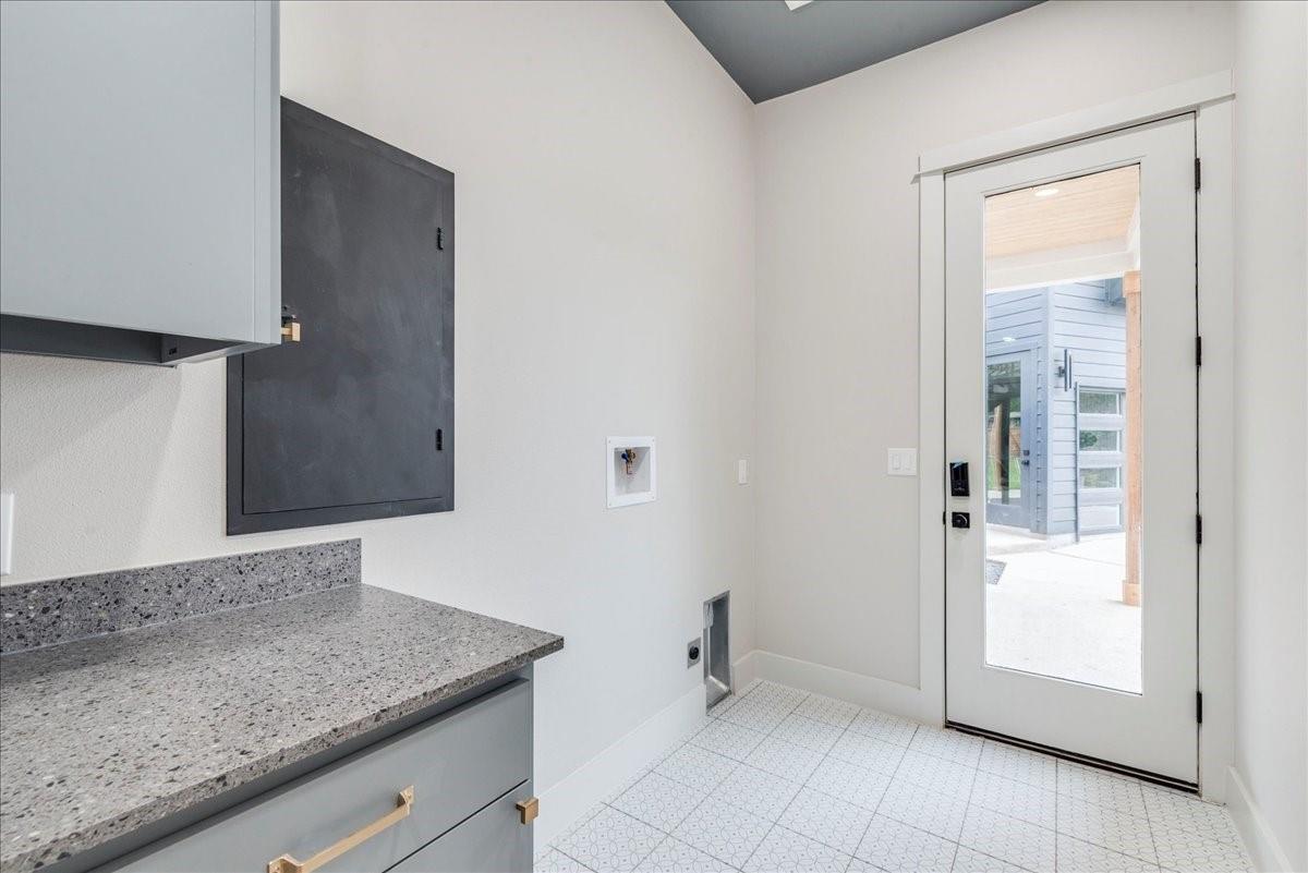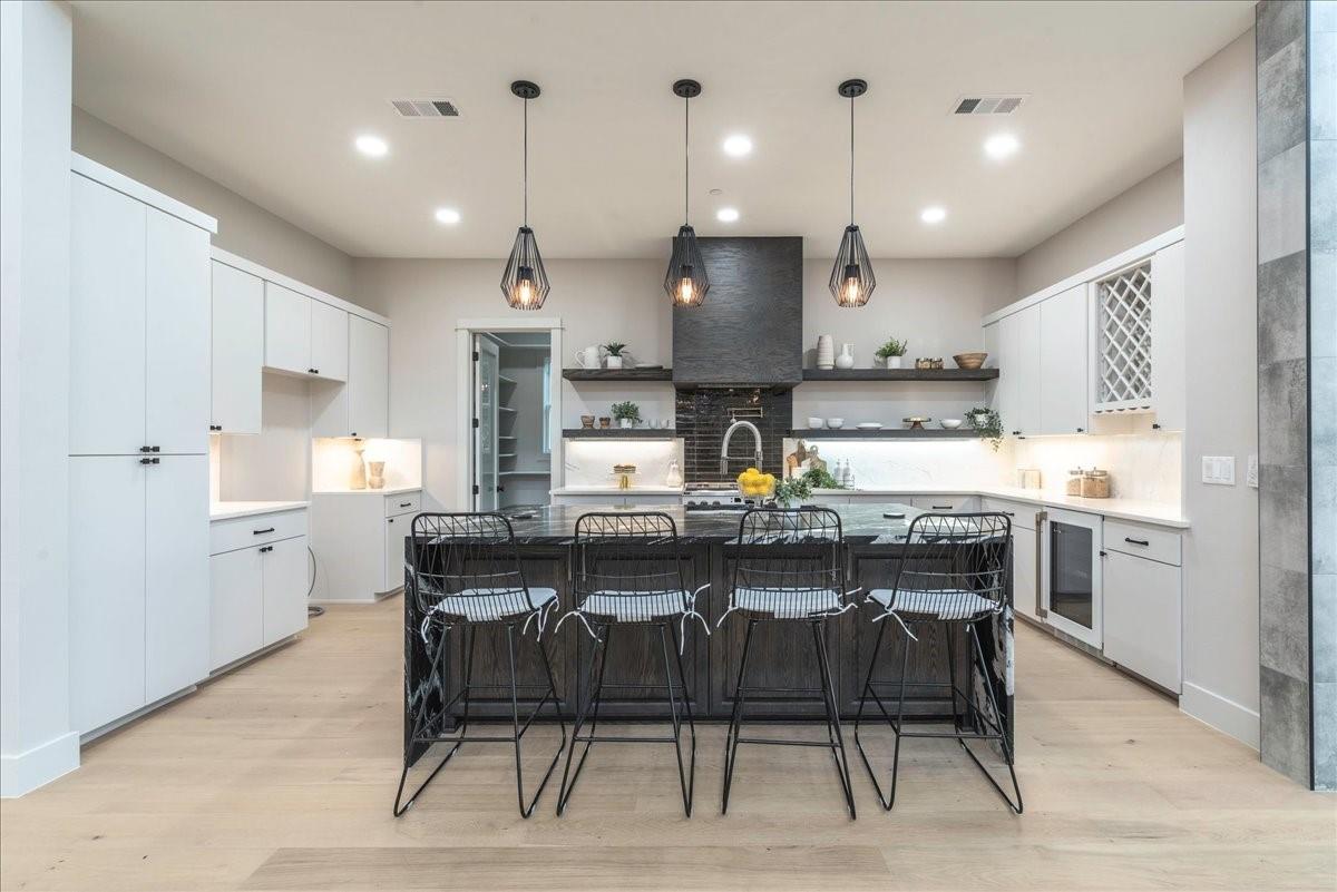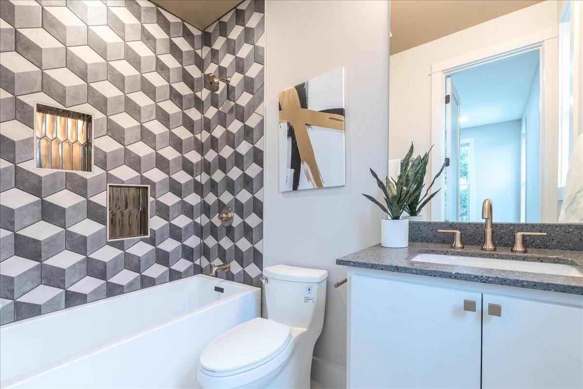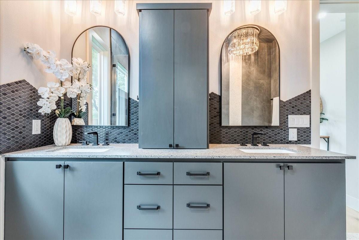 Dubbed "Striving for Balance," this stunning, new construction home is an on-trend architectural masterpiece characterized by striking European white oak flooring and banks of glass. Space and luxury are in abundance, with every modern convenience considered. Expansive windows and doors bathe the interior in natural light, connecting seamlessly to the enclosed, lush surroundings. The flowing 4,200+ sq ft floor plan includes four bedrooms and four baths in the main house and presents the finest finishes. Built for sensational entertaining, the home boasts an incredible open-plan great room with soaring fireplace and overlooking clerestory windows. The state-of-the-art kitchen centers around an exquisite island topped with a waterfall of soapstone. Premium Café appliances and intelligent amenities ensure effortless preparation of mouthwatering repasts. Sleek detailing and clean aesthetics continue to a main-level office/living room, private guest suite and laundry room. A plush owner's bedroom is a calm oasis designed for relaxation. This enticing retreat beckons with a rejuvenating shower, sumptuous tub for 2, and customized closet. A lavish floating staircase delivers residents to the upper level, where a generous game room offers a full-length wet bar. The second floor accommodates with a spacious bedroom and guest suite, each light and airy. Beyond a covered porch ideal for year-round barbecues, a superbly private one-bedroom guest house above an oversized three-car garage boasts its own kitchenette, laundry, bath, and living space, creating an ideal nanny or in-law apartment. Top-rated Davis Elementary, a National Blue Ribbon School, is within walking distance of the sought-after Angus Valley neighborhood, renowned for its tranquil environment and proximity to shops and recreation. Situated in the pocket between N Mopac and Hwy 183 with a short commute to Downtown Austin, this two story home is minutes from The Domain, The Arboretum, Apple, IBM and Q2 Stadium