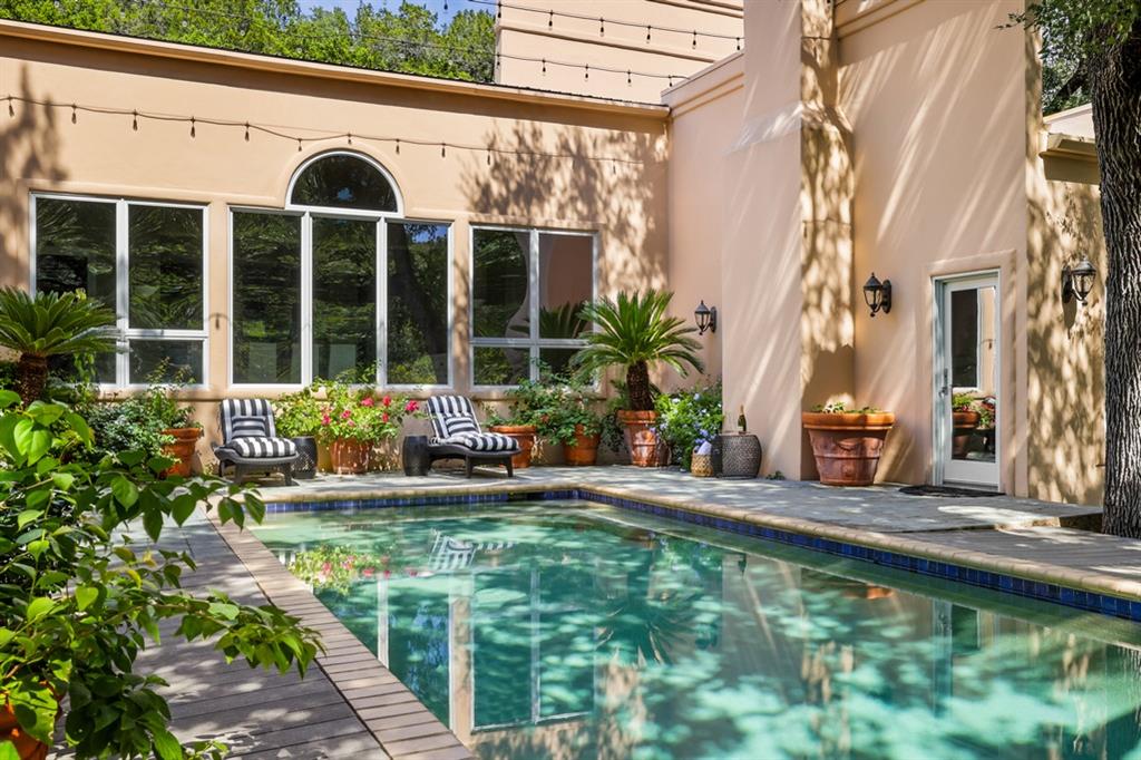 OPEN SUNDAY, APRIL 16 FROM 1-3PM. Experience an architectural gem that offers complete privacy in the heart of Westlake. This serene estate sits on a beautiful 6.48 ACRE lot that is surrounded by Eanes Creek and stunning trees. Enjoy views of nature from every window in the home, and views of the creek from the large entertaining deck and pool. As you enter the property, you are greeted by the outdoor fountain that enhances the tranquil experience. Inside, the floor plan flows naturally from the long gallery hallway. The living room enjoys access to the pool and deck, and a wood-burning fireplace. At the center of the home, enjoy entertaining by cooking in the gourmet kitchen that opens to the formal dining room and overlooks the pool. The main floor also includes the primary suite and an additional en-suite guest room. The primary bathroom was recently renovated and includes a gorgeous soaking tub, dual vanities, a walk-in shower, and a large walk-in closet. Upstairs includes an additional flex space that can be converted into a bedroom, or used as an office. Just past the pool is the 996 SF guest house, which has been rented out as a short-term rental in the past and brings in income of over $50,000 a year. This property also includes 2/3 interest in the .41 AC of the land located along the entrance of River Hills Road. There are three homes that share this easement, this listing designated as home #A. Additionally on the land are 2 easements that give access Lake Austin. Blue Ribbon schools in Eanes ISD.