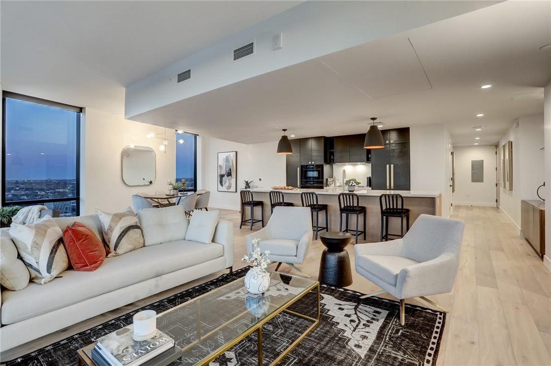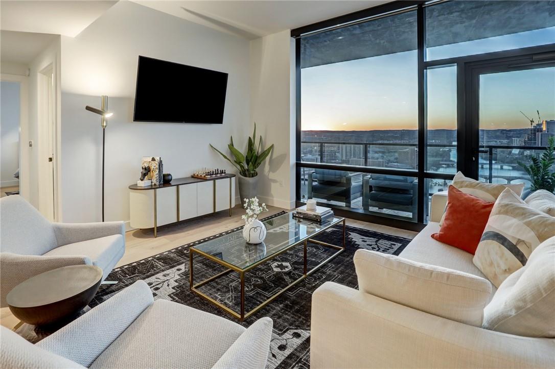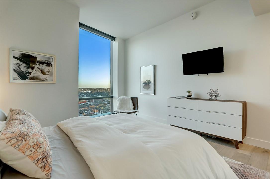 Located in the Rainey Street Historic District, 70 Rainey is the definition of luxury. With dedicated 24/7 Concierge, the building offers over 31,000 sq ft of total amenity space. On the 10th floor, there's a 2,200 sq ft fitness center that rivals premier fitness establishments, boasting a steam shower and dry-heat sauna. In addition to the fitness center, is a 72 ft long infinity pool directly overlooking Lady bird lake and downtown Austin. Imagine bbq social hours at the deck's outdoor lounge that has fire pits, grill-equipped kitchen and pool side cabanas. Situated on the 26th floor with panoramic views of lady bird lake and downtown Austin, the 3 bedroom, 3 bath 2179 sq feet residence with a private balcony, features contemporary high end finishes with clean lines, classic elegance, and organic elements. The condo has great natural light coming through the 'floor to ceiling' windows which are equipped with remote controlled motorized solar shades.